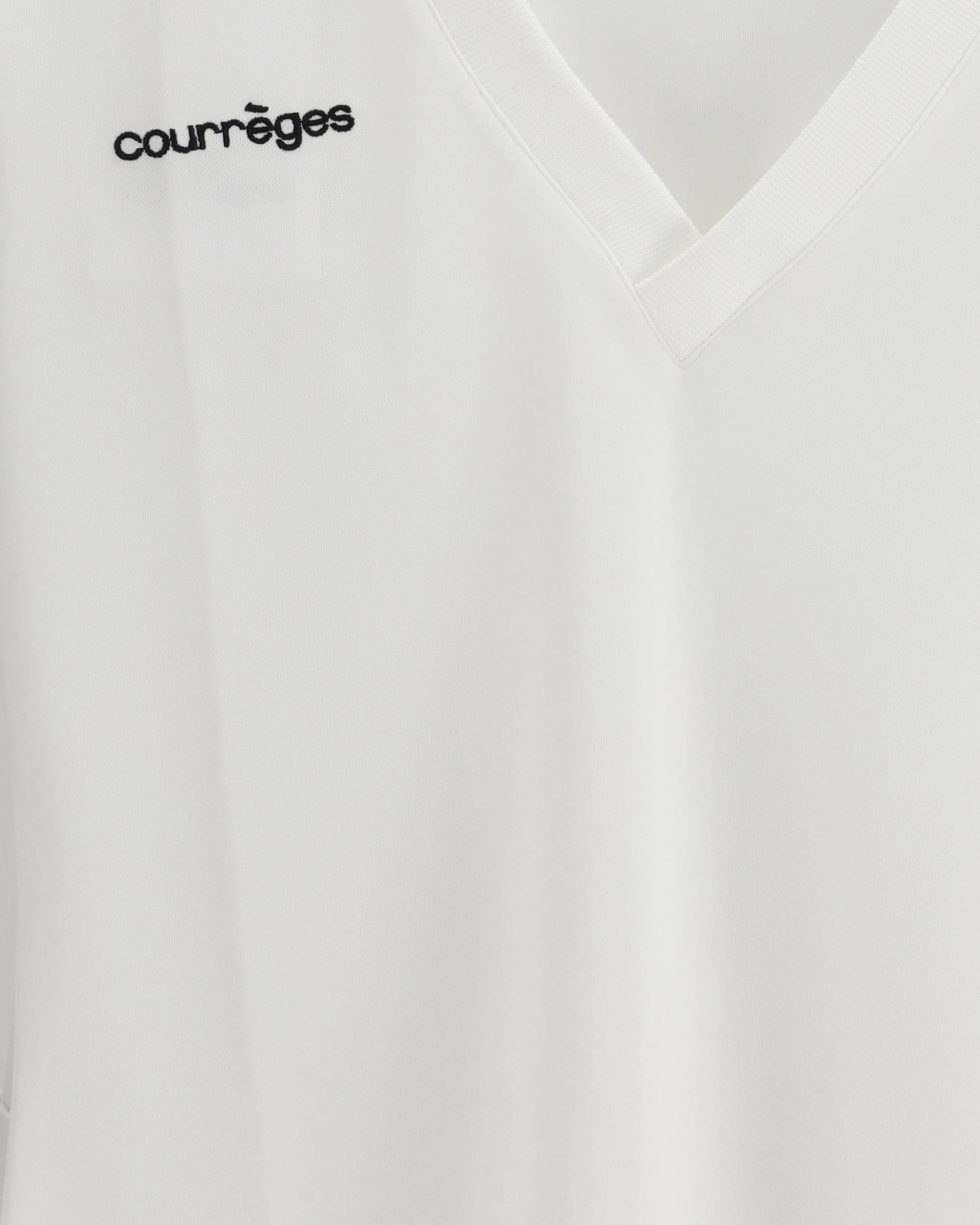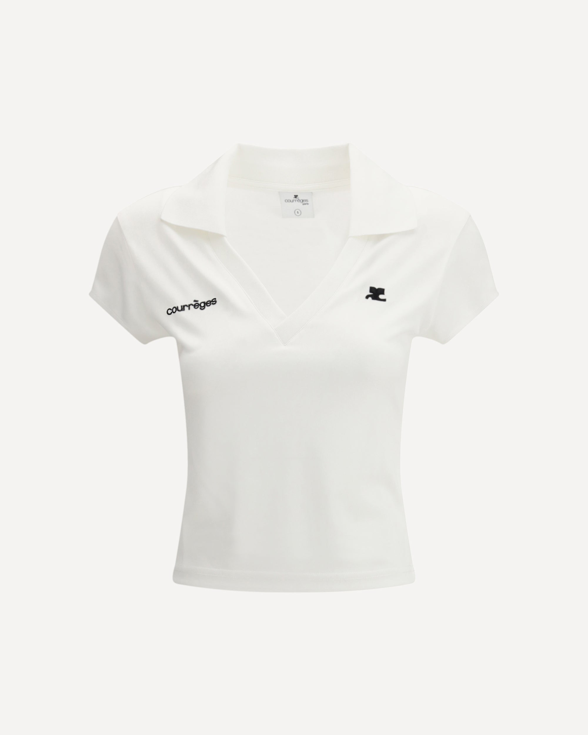 The Sports Cropped Polo by Courrèges is a short, slim-fit silhouette crafted from soft cotton. It features a V-neckline, classic collar, and short sleeves, blending sporty ease with the brand’s signature minimalist aesthetic.
