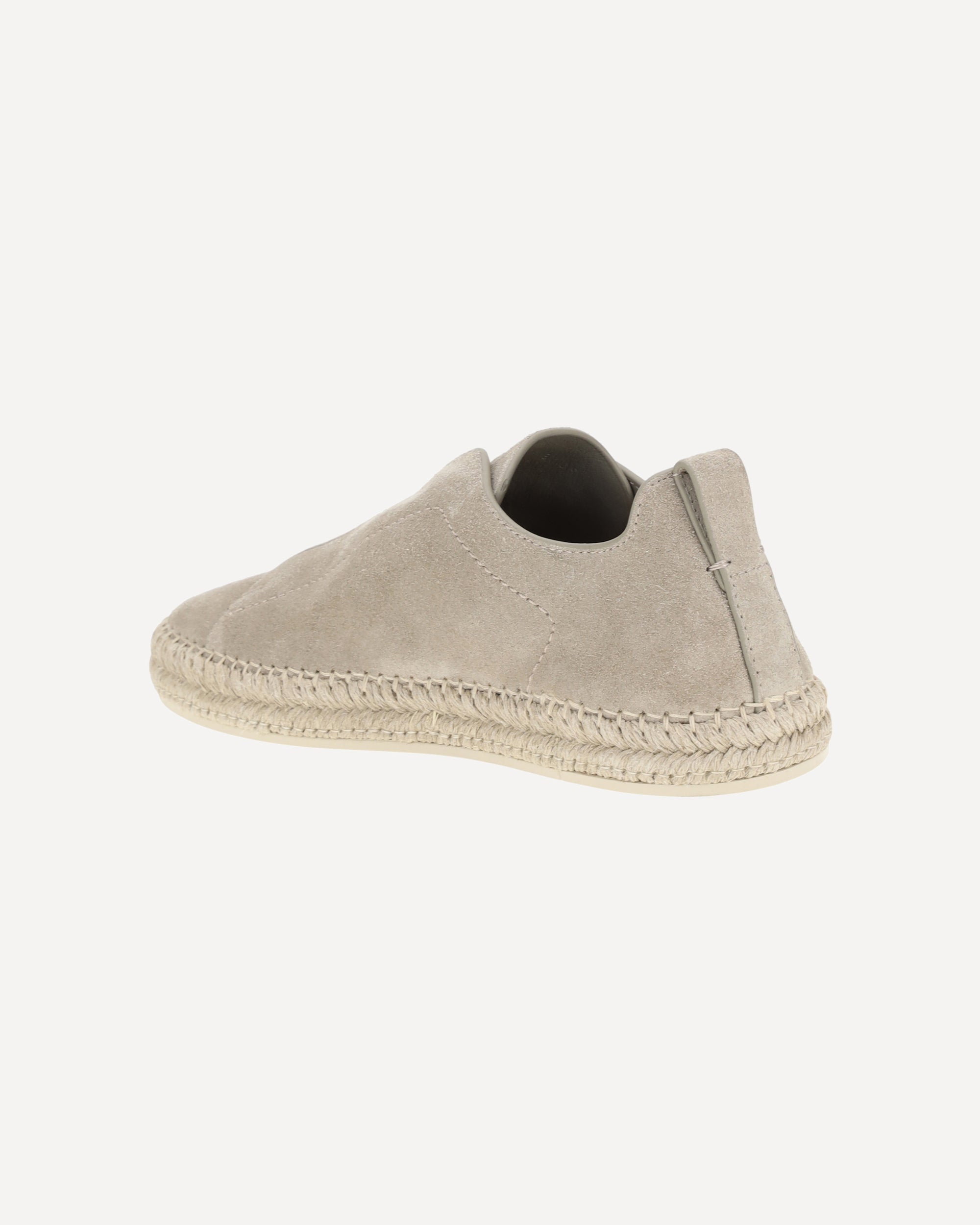 Zegna's leather Sneakers feature a sleek suede design with a flat sole made of rope that adds a natural, contemporary touch. The elongated toe and slip-on style offer practical and refined comfort, ideal for a casual yet sophisticated look.