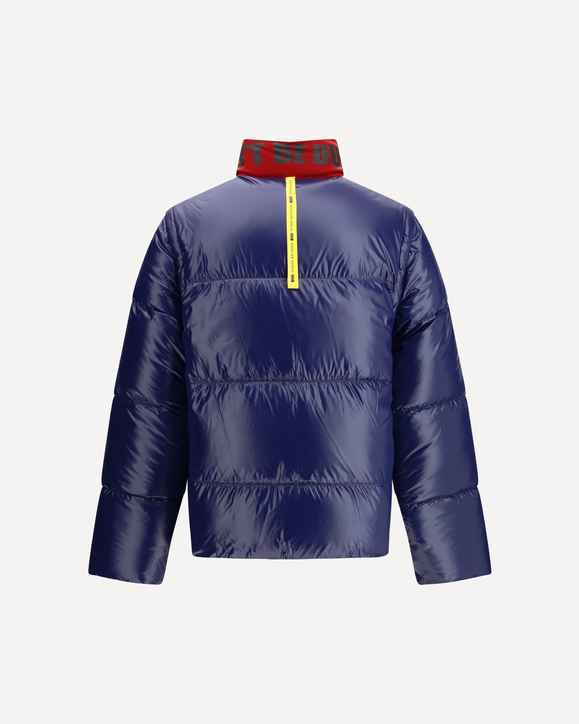 The Reversible Throttle Jacket Moncler x A$AP Rocky is a modular piece that merges transformable design with urban spirit. Featuring detachable sleeves with zips, it can be worn as a jacket or as a vest, offering versatile styling options. The padded construction ensures warmth and comfort, while the contrasting high collar with lettering adds bold character. On the reversible side, a statement back print enhances the design with a striking graphic element. Two front pockets and a zip closure complete a piece that blends functionality, contemporary aesthetics, and street DNA.