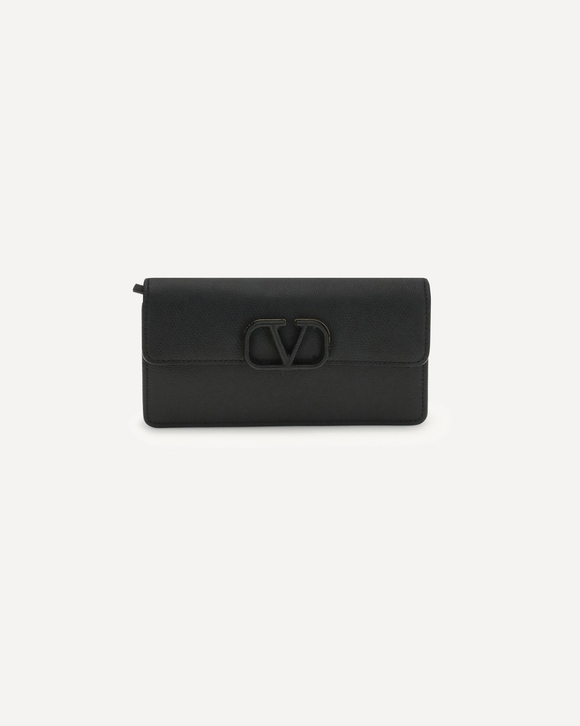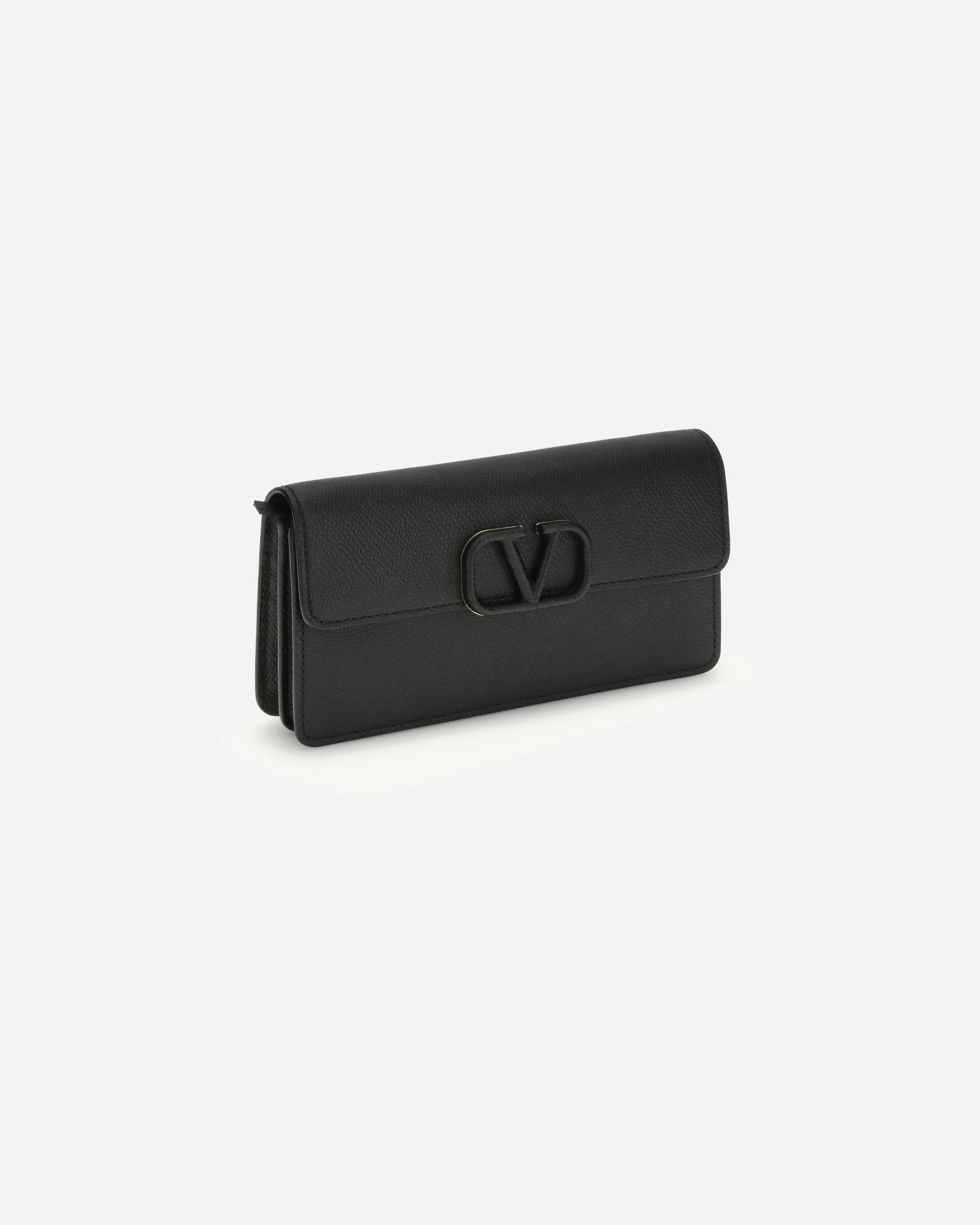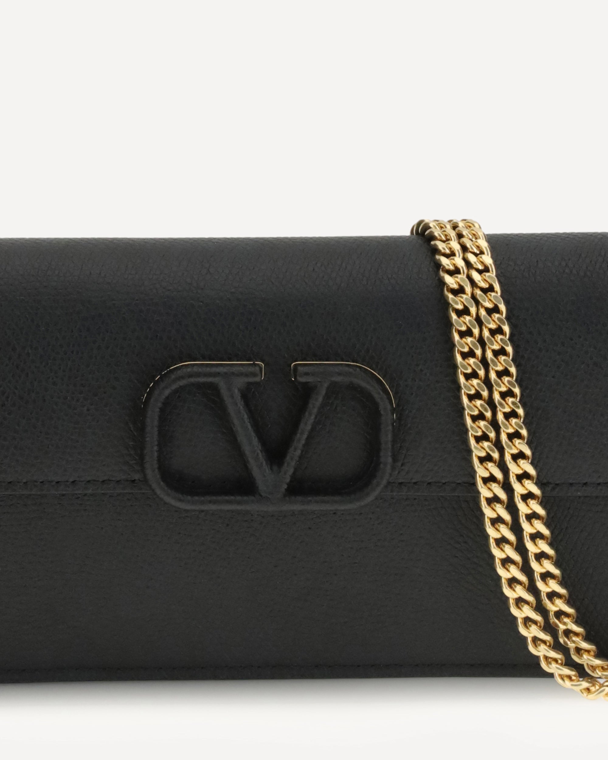 The Valentino Garavani Leather VLogo Shoulder Bag is a stylish and practical accessory. It features a flap closure and an applied VLogo detail, the brand's distinctive symbol. The removable chain shoulder strap offers versatility, allowing it to be carried comfortably as a clutch as well. Inside, the bag features two compartments and a zippered welt pocket, as well as eight card slots for organized item management.