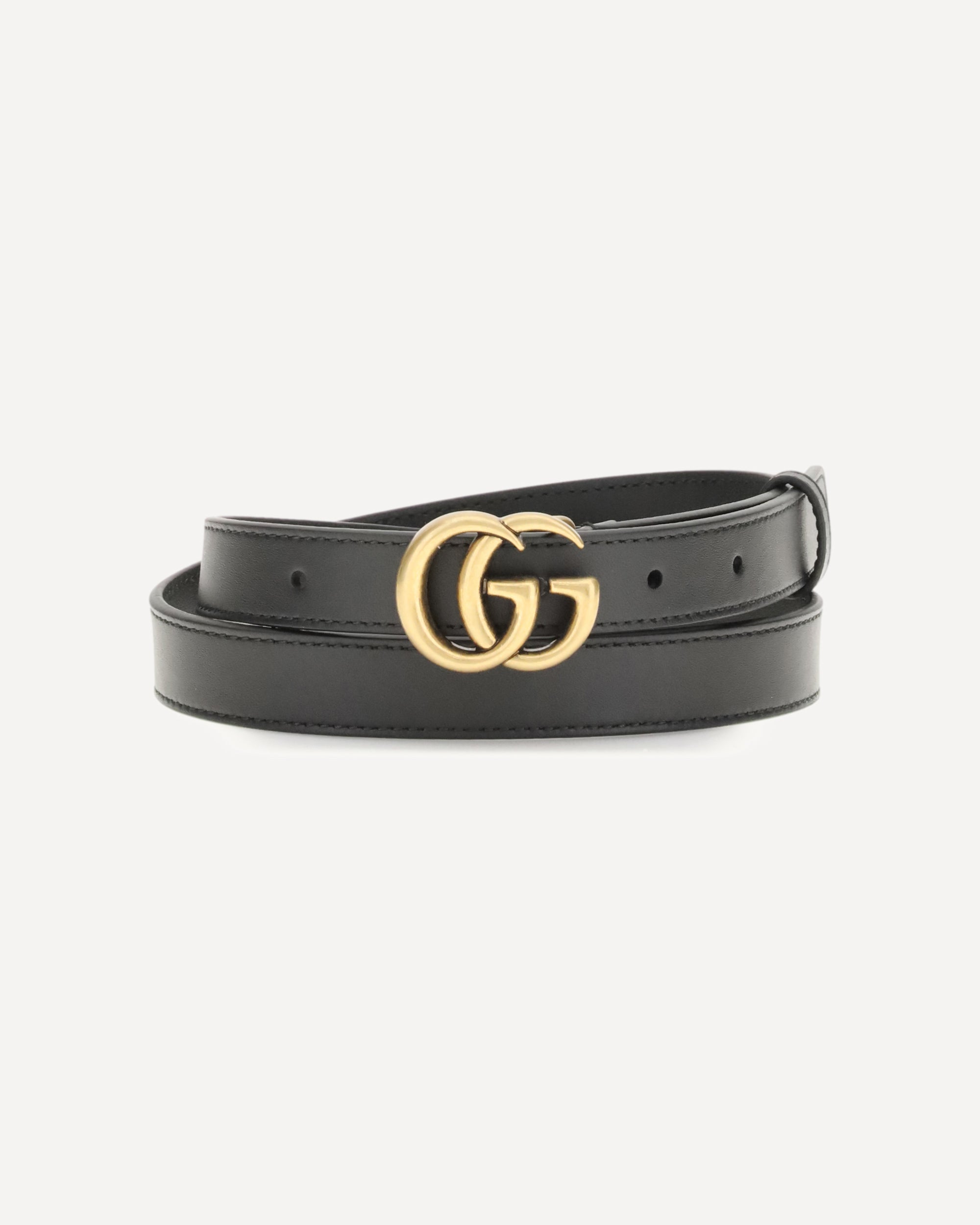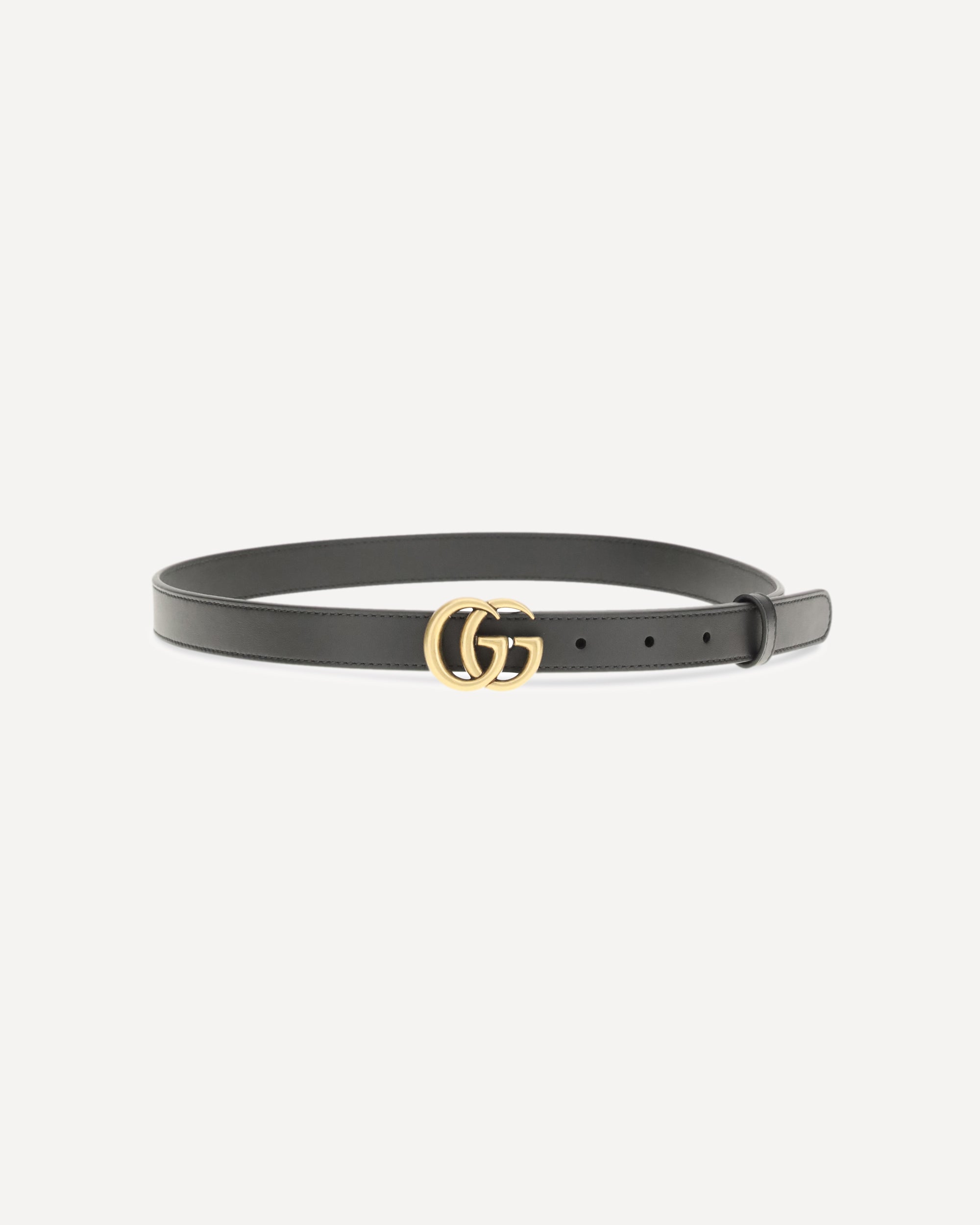 The Slim GG Marmont Belt crafted from leather by Gucci, featuring the signature leather Double-G buckle with antique-brass finishes. An essential and refined accessory, perfect for enhancing both casual and elegant looks thanks to its slim profile and Gucci’s iconic design.