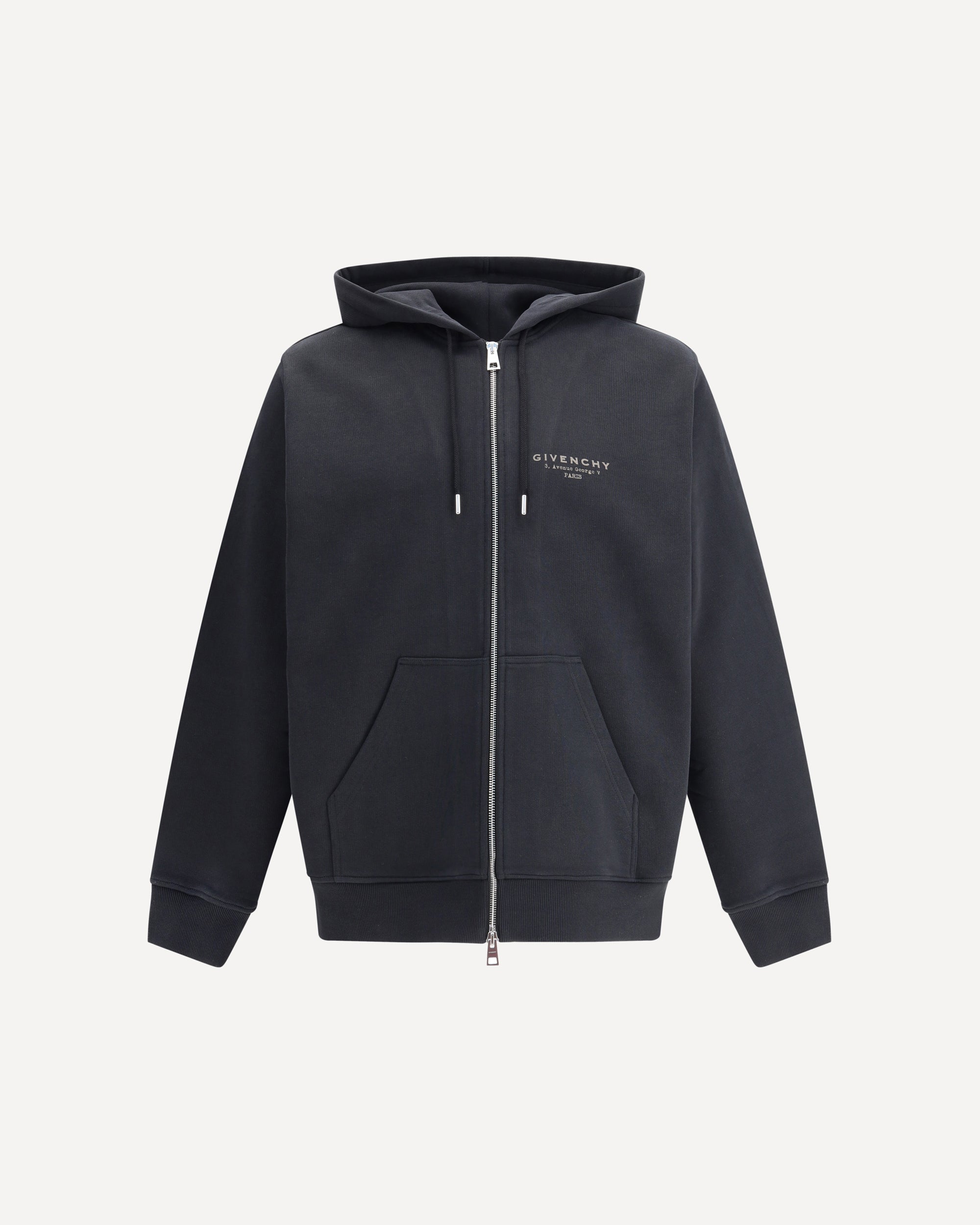 Givenchy's Hoodie features a double-slider front zipper closure and two patch pockets on the front. A ribbed hem and cuffs complete the design, while the iconic printed logo on the front adds a distinctive touch to the garment.