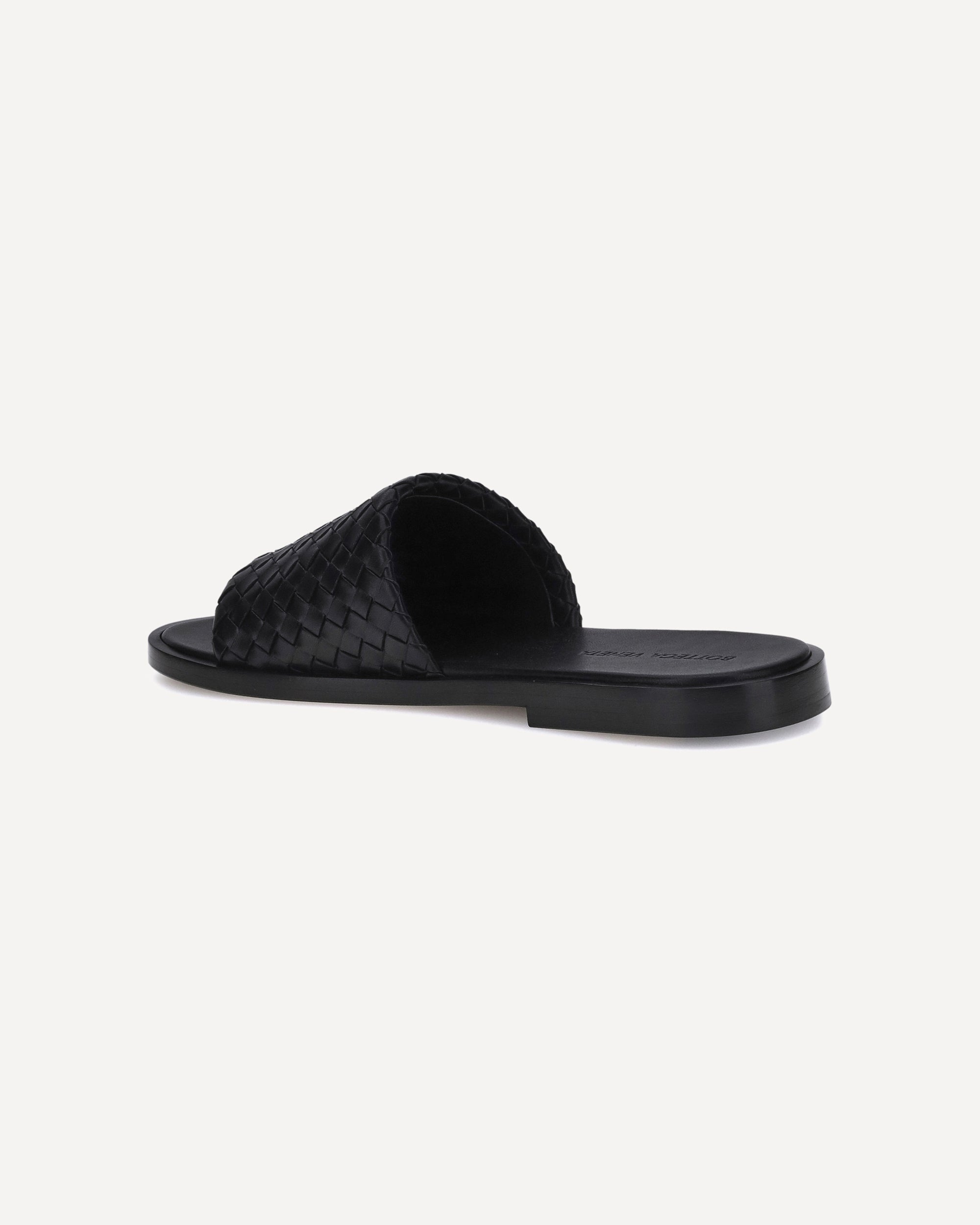 Leather Sandals with an essential and sophisticated style by Bottega Veneta. Featuring an elongated toe, a band with the brand's iconic weave, a flat sole and a branded insole, they combine comfort and recognition in a single accessory. Ideal to complete any summer look with elegance.