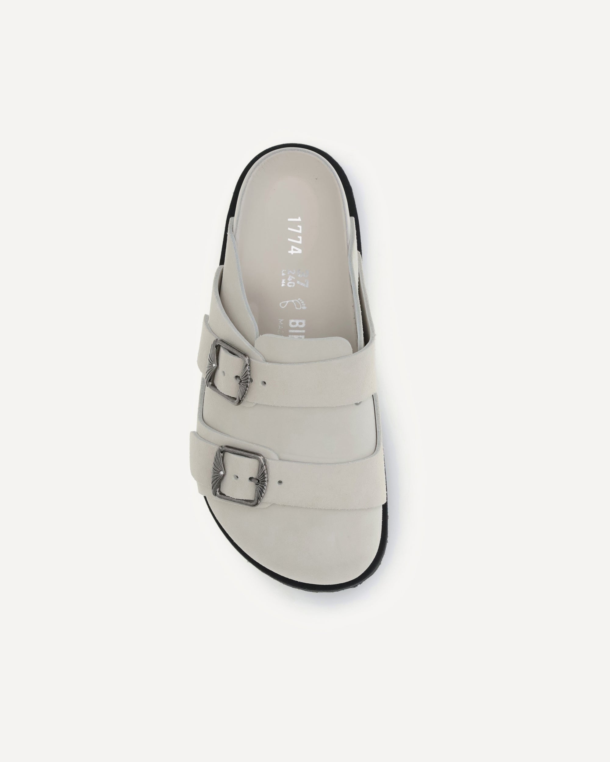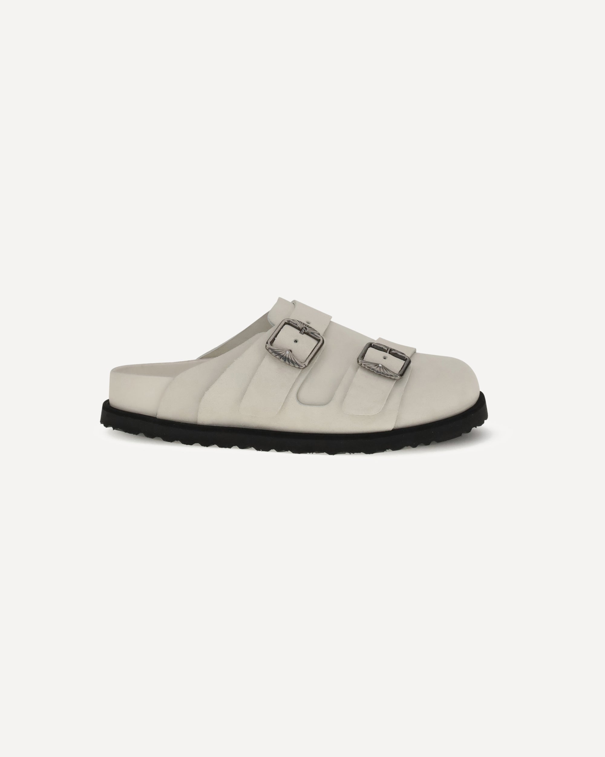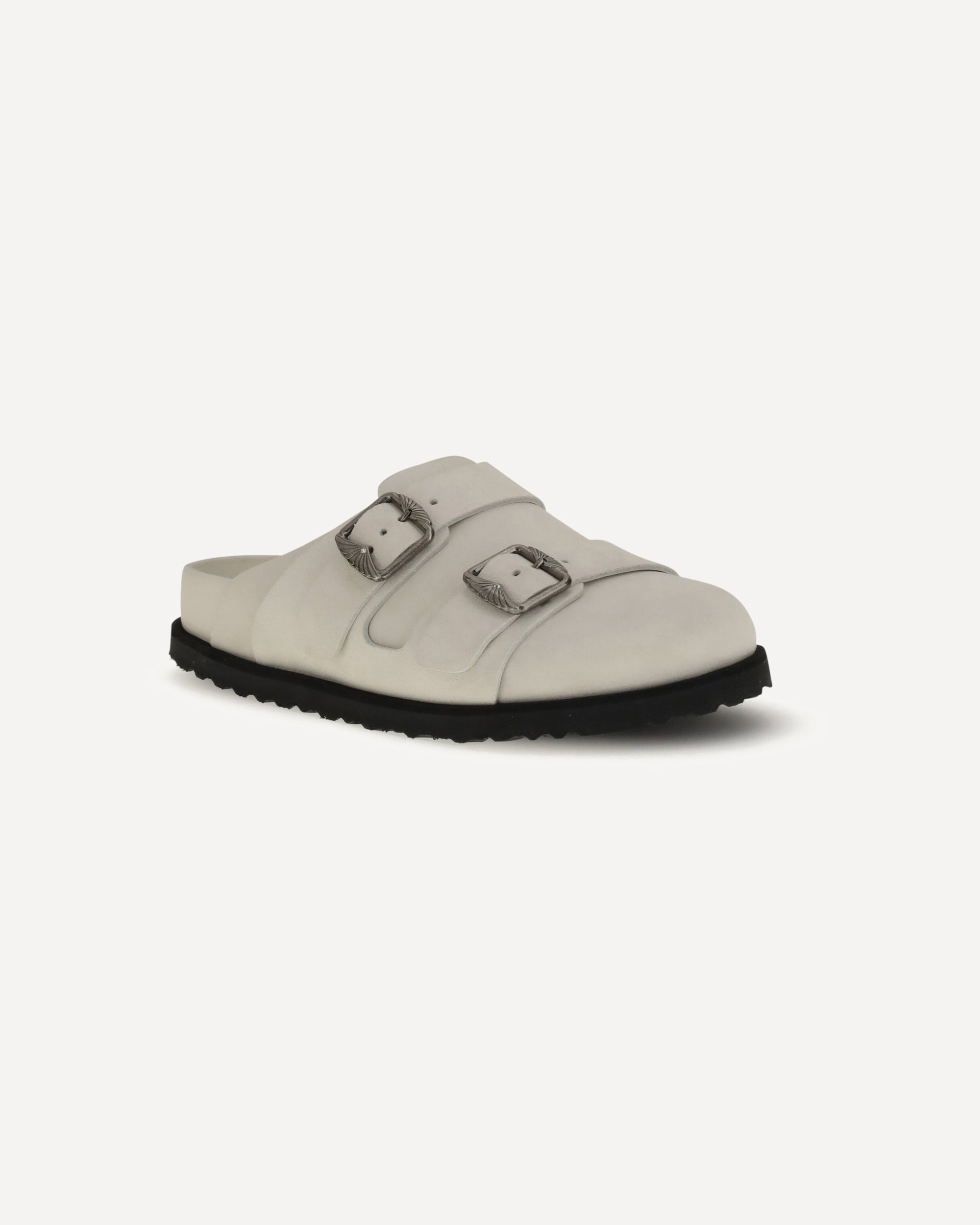 West suede Mules by Birckestock 1774 reinterpret a great brand classic in a refined way. Made of soft suede, they feature an essential silhouette with a round toe and two adjustable upper buckles that ensure a customizable fit. A versatile and comfortable model, perfect for a casual yet polished style.