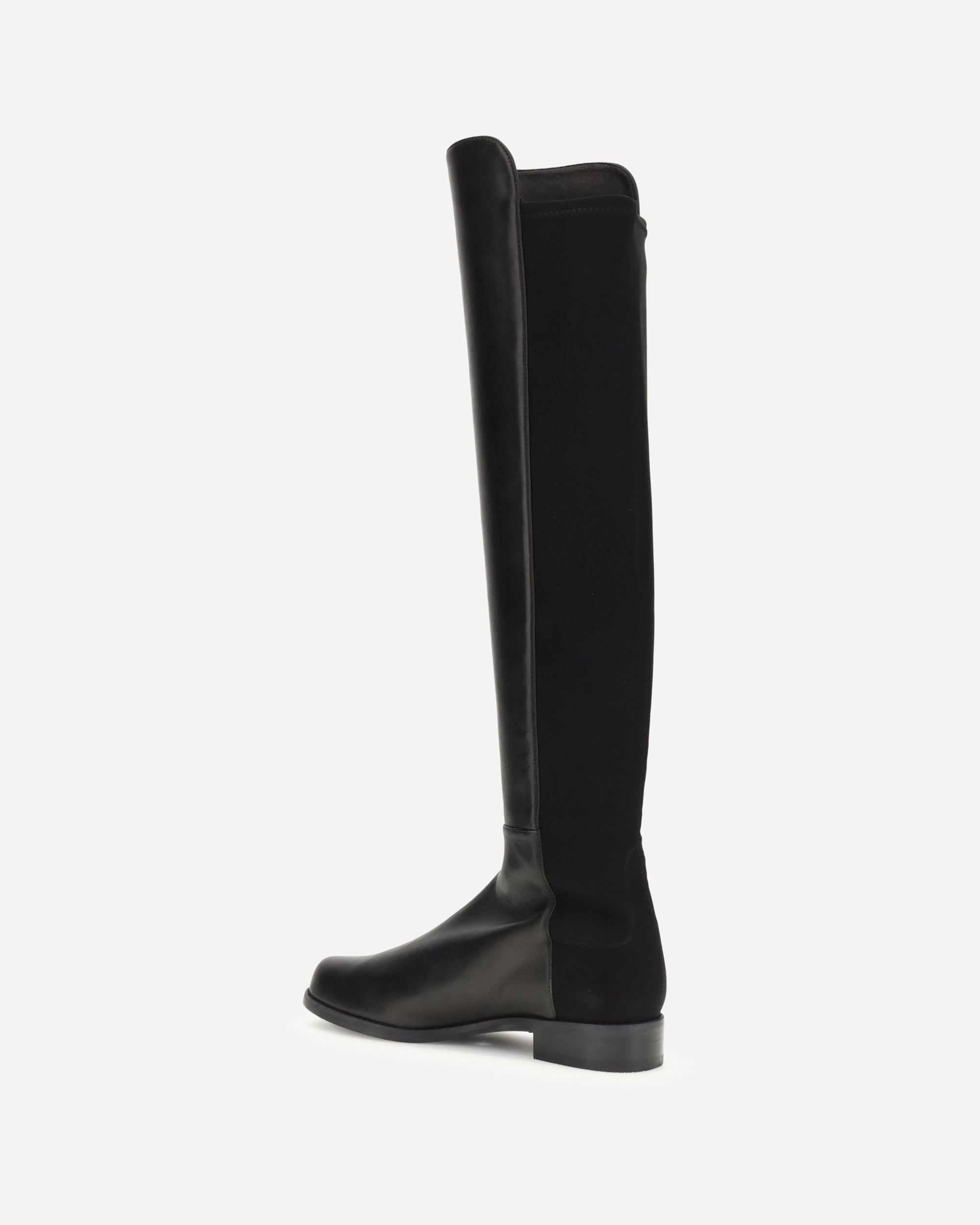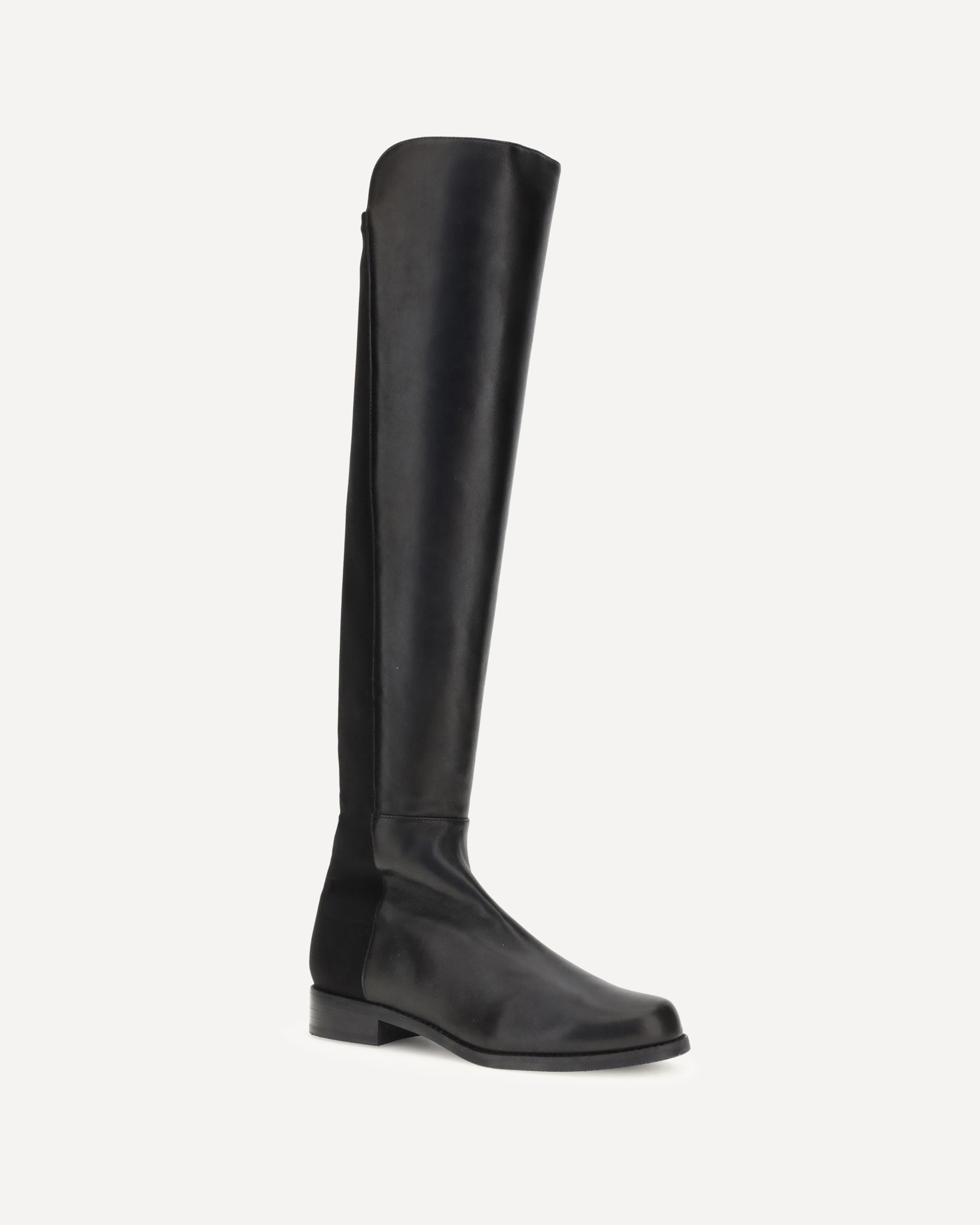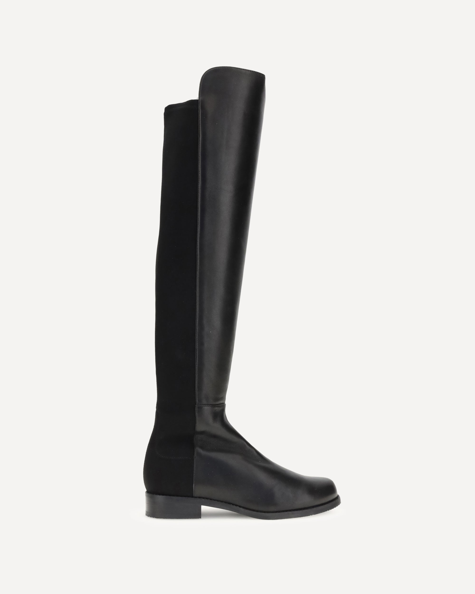 Leather 5050 Boots by Stuart Weitzman feature a round toe and an over-the-knee design that combines style and function. The typical elastic detail at the back ensures a snug and comfortable fit, while the slight leather block heel lends stability and a touch of elegance. An iconic and versatile model, perfect for completing sophisticated and contemporary looks.