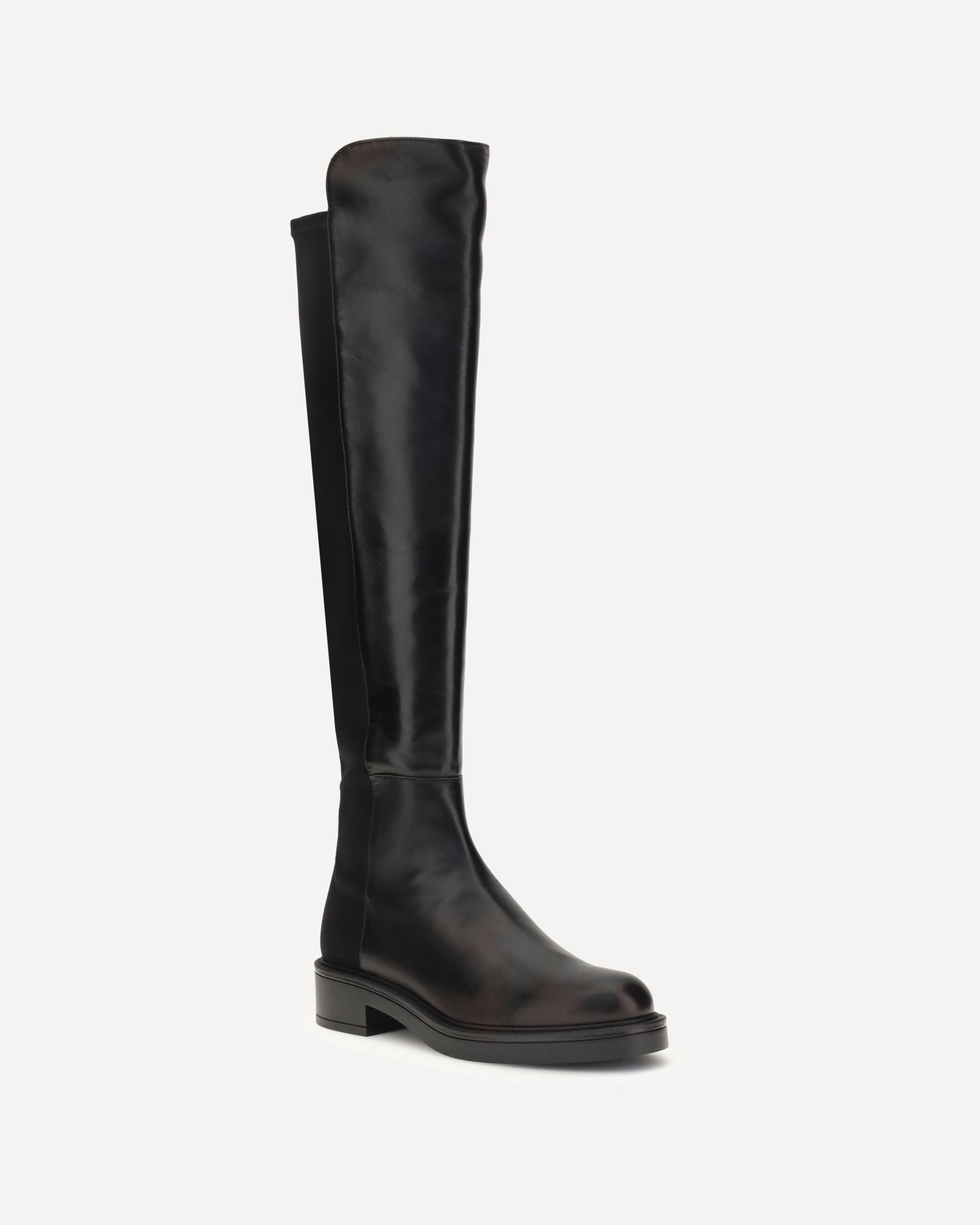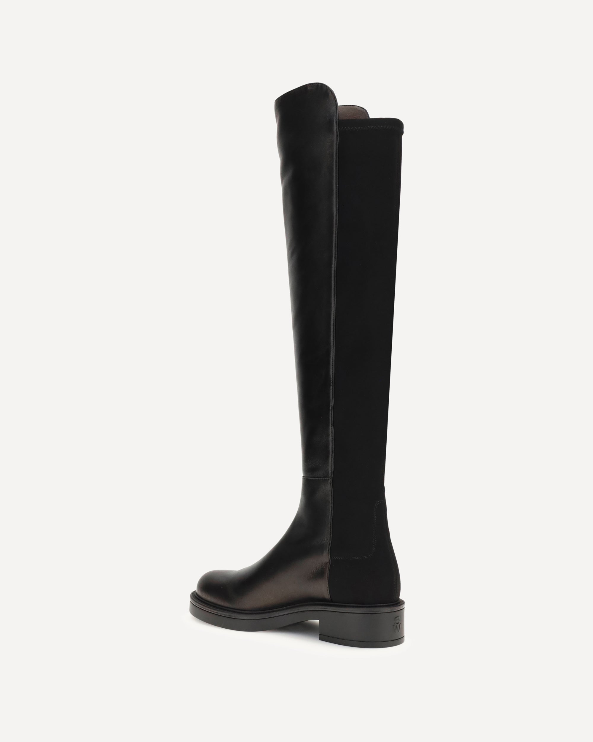 Stuart Weitzman's Celia high Boots combine elegance and comfort in a contemporary design. Featuring a hybrid construction with smooth leather on the front and elastic on the back, they ensure a snug and flexible fit. The block heel gives stability and momentum, making them perfect for a sophisticated and versatile look, ideal from day to evening.