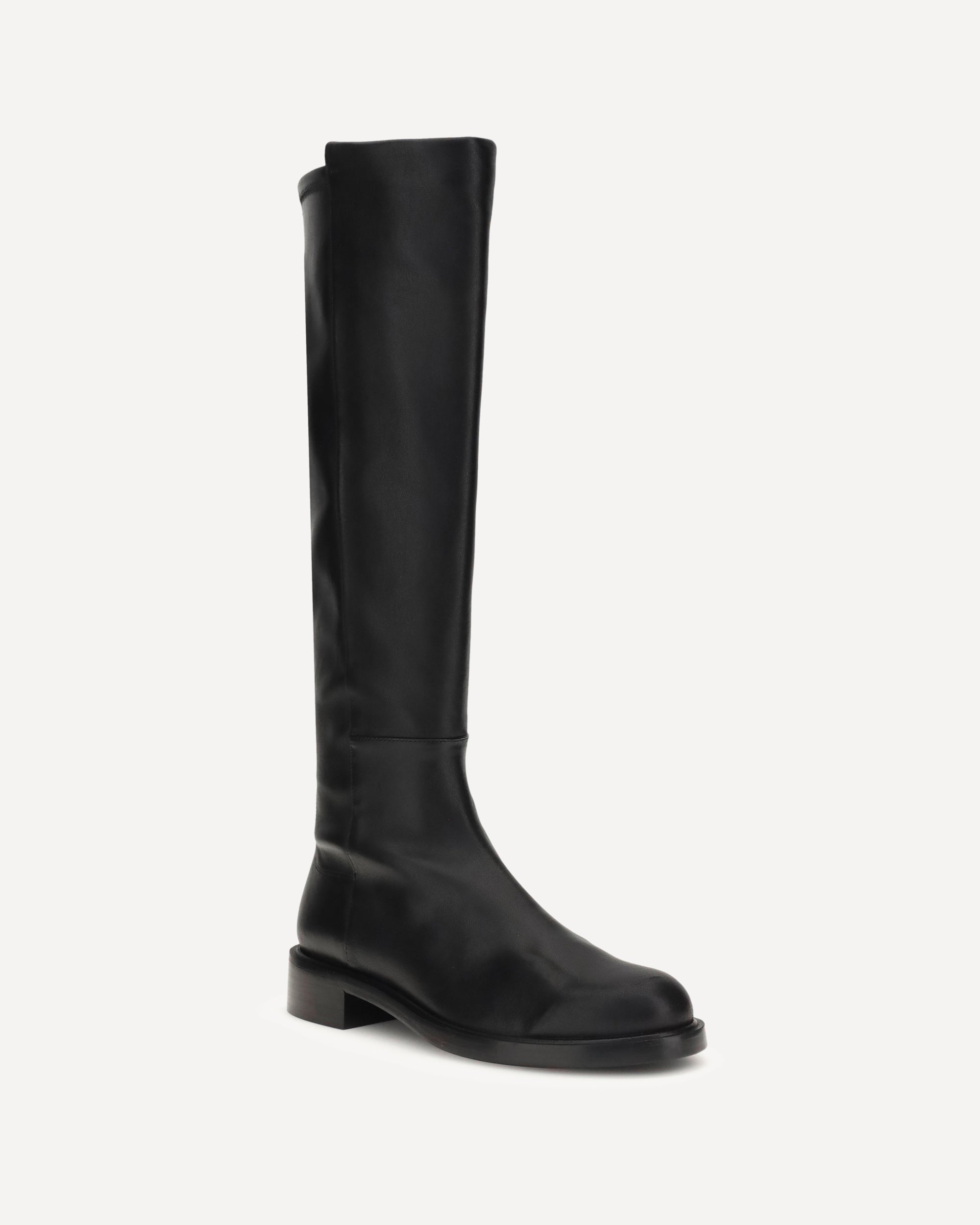 Stuart Weitzman's Gisele high Boots are made of soft leather and feature a sleek silhouette that reaches to the knee. The clean design with smooth leather front is complemented by a block heel that offers comfort and stability, making them ideal for a sophisticated and timeless look.