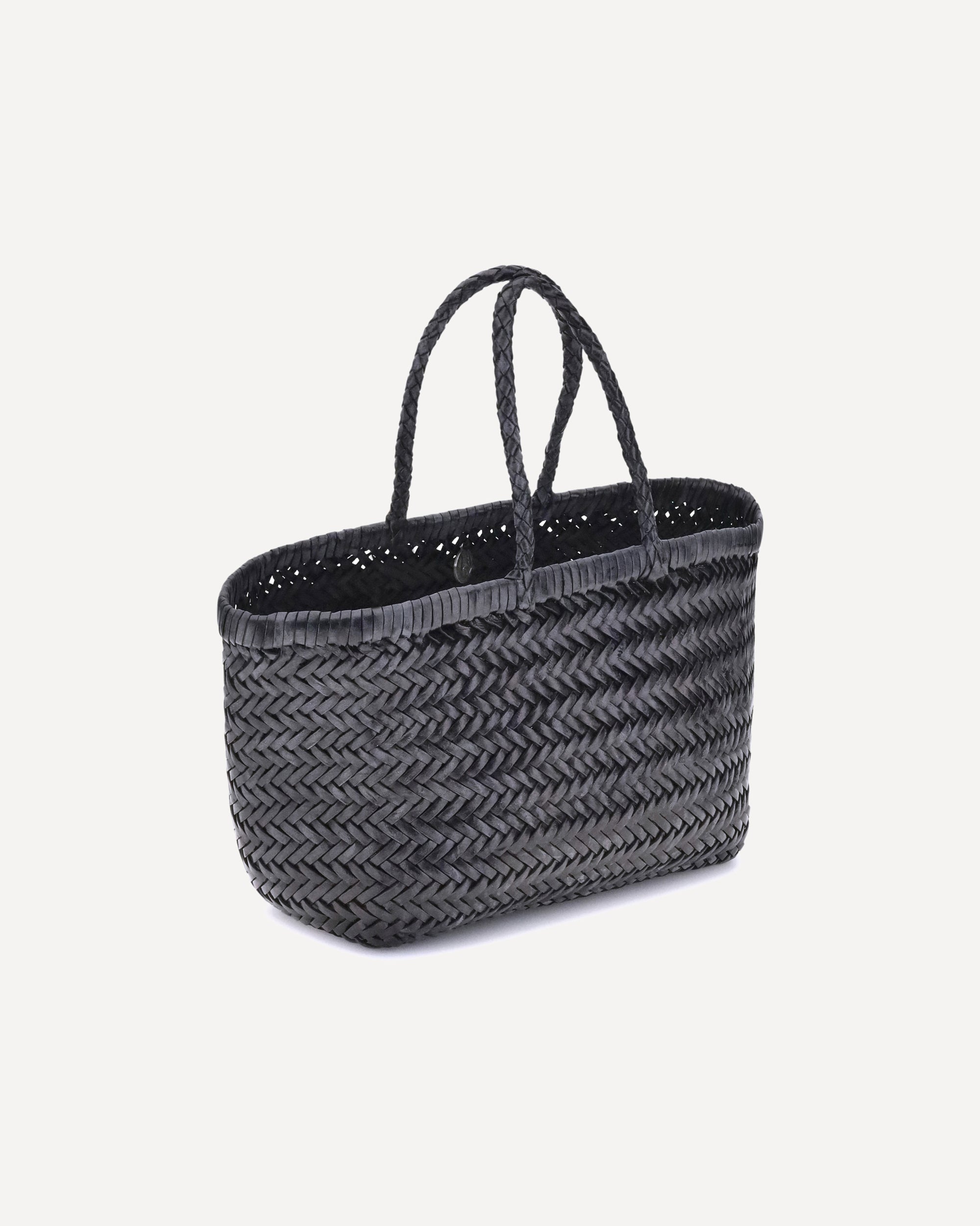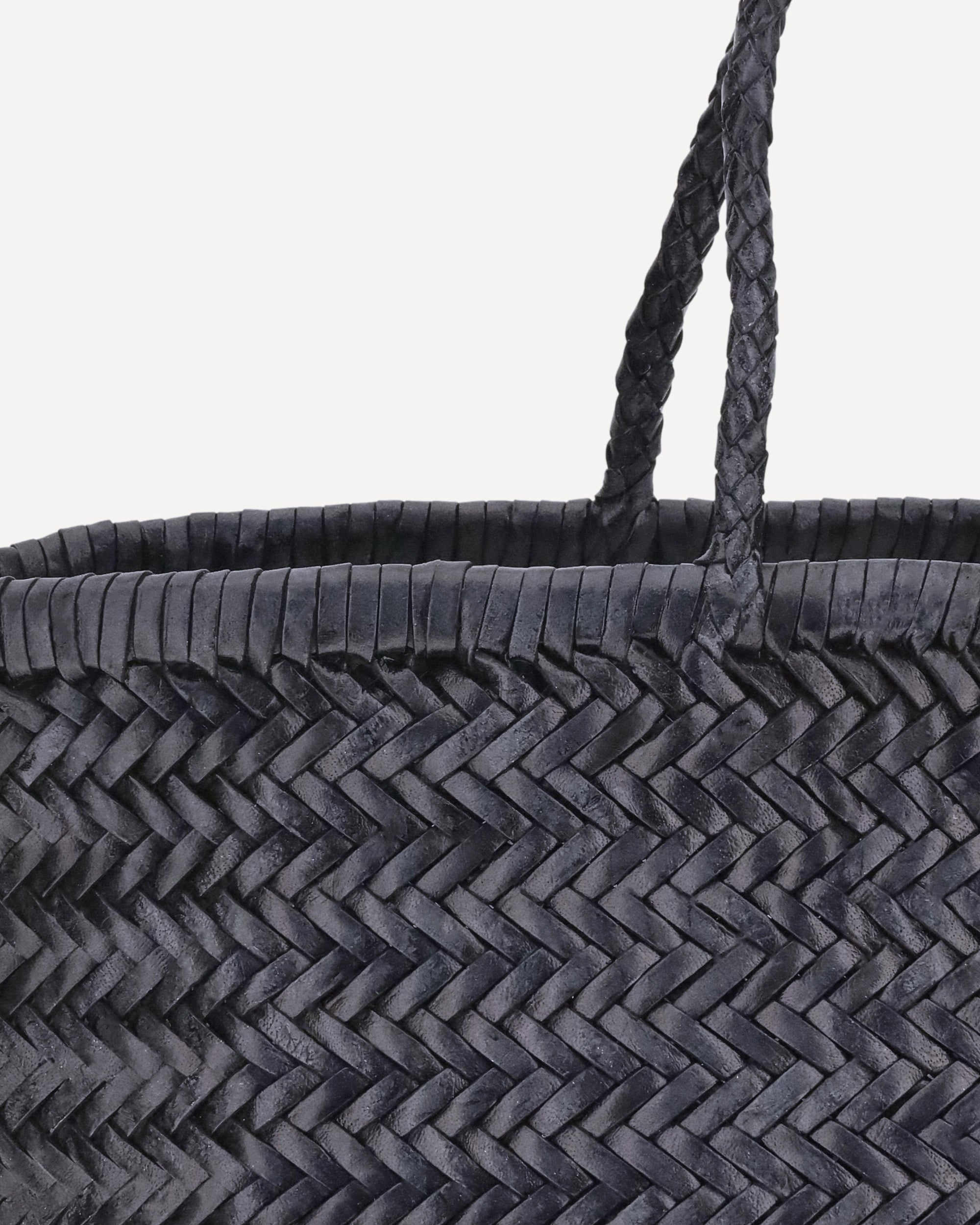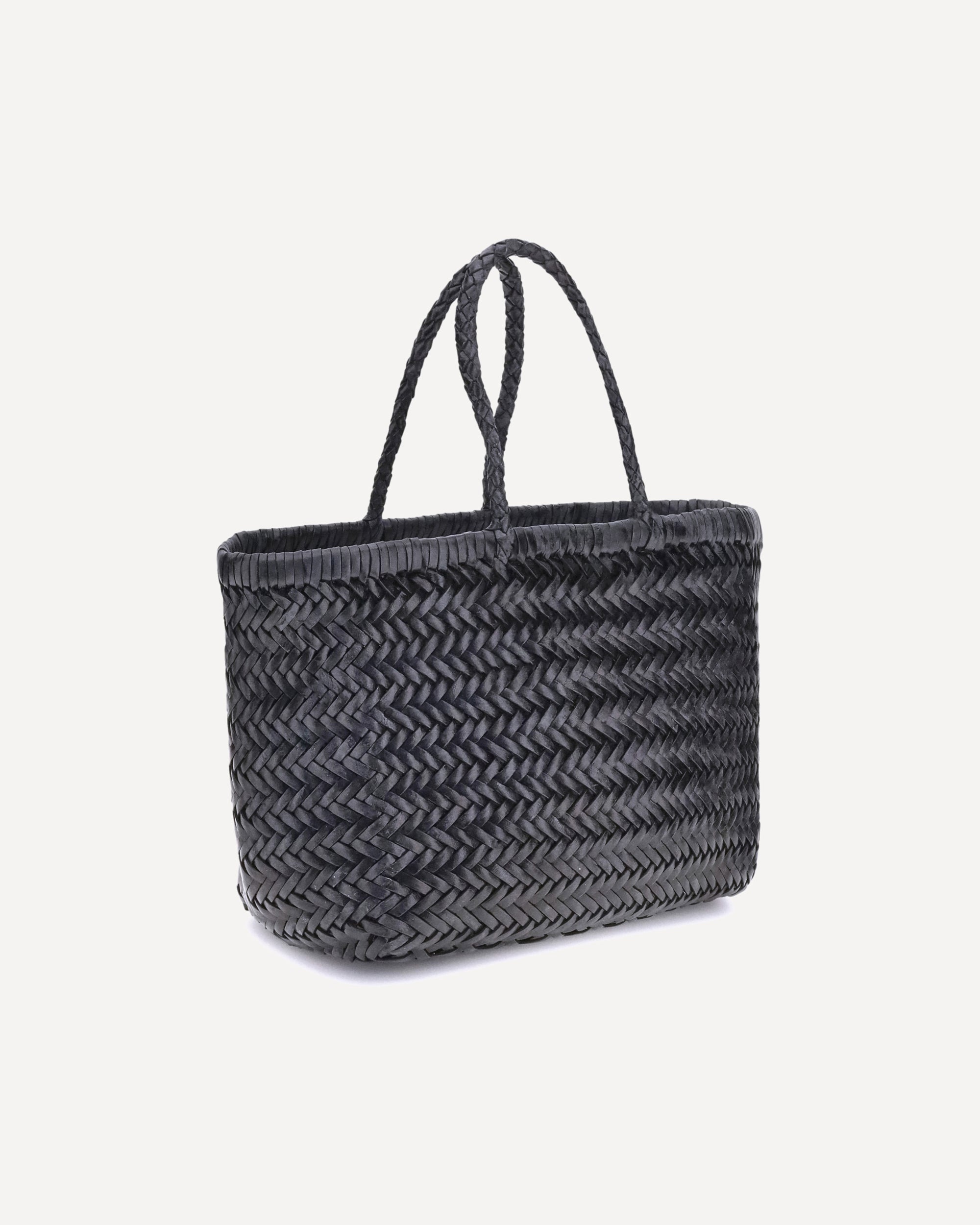 Dragon Diffusion's Triple Jump Small leather Handbag is a tribute to craftsmanship and natural style. Made of hand-woven leather, it recalls the aesthetic of a raffia bag but with the quality and durability of leather. Equipped with two tubular handles, it features a single internal compartment, ideal for everyday essentials. A versatile accessory perfect for adding a handcrafted touch to your look.