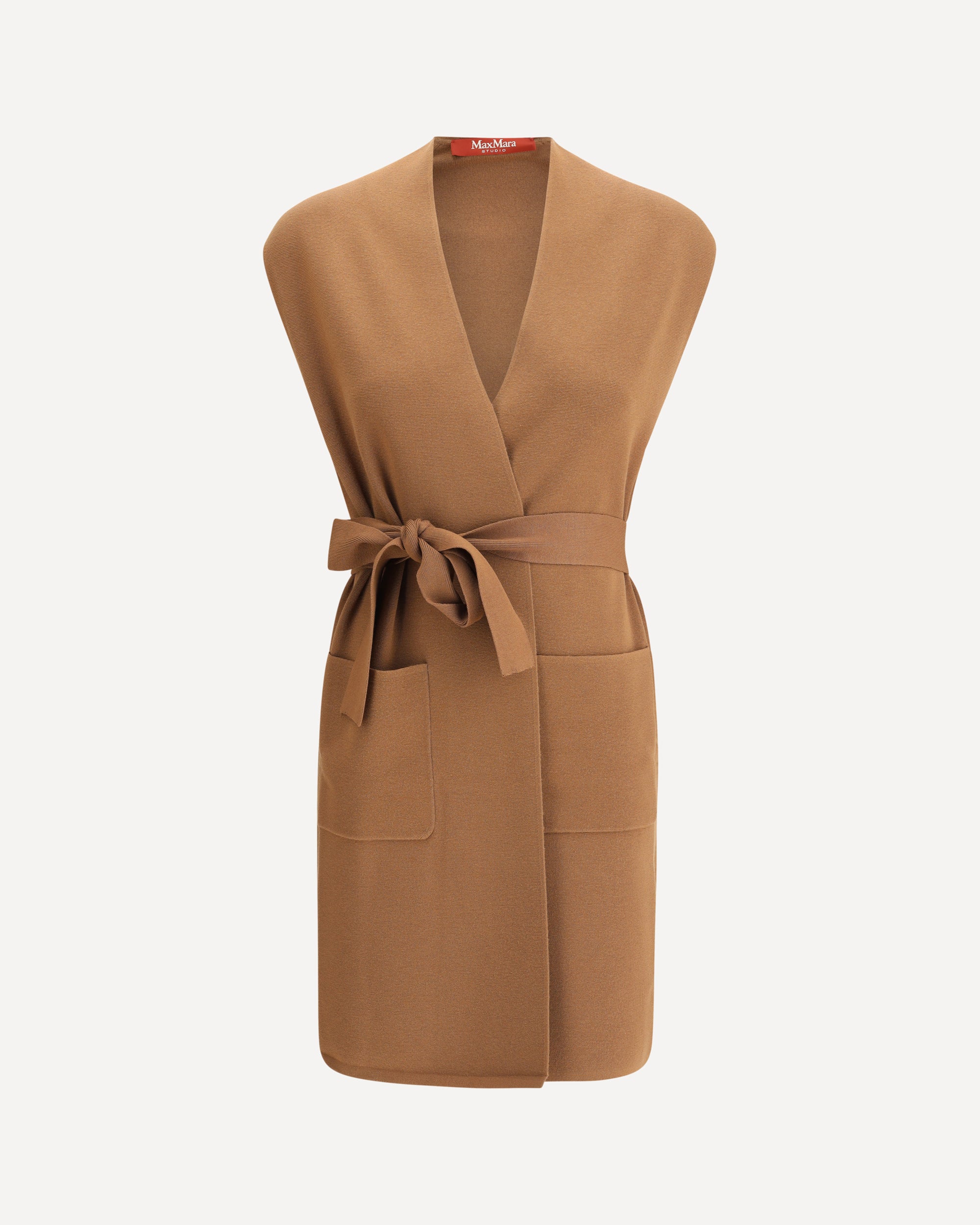 Spruce long Vest by Max Mara Studio features two welt patch pockets on the front for a functional and refined touch. Complete with a knotted and removable sash on the front, which allows you to define the silhouette and customize the look. A versatile and modern garment, ideal for adding elegance to any outfit.