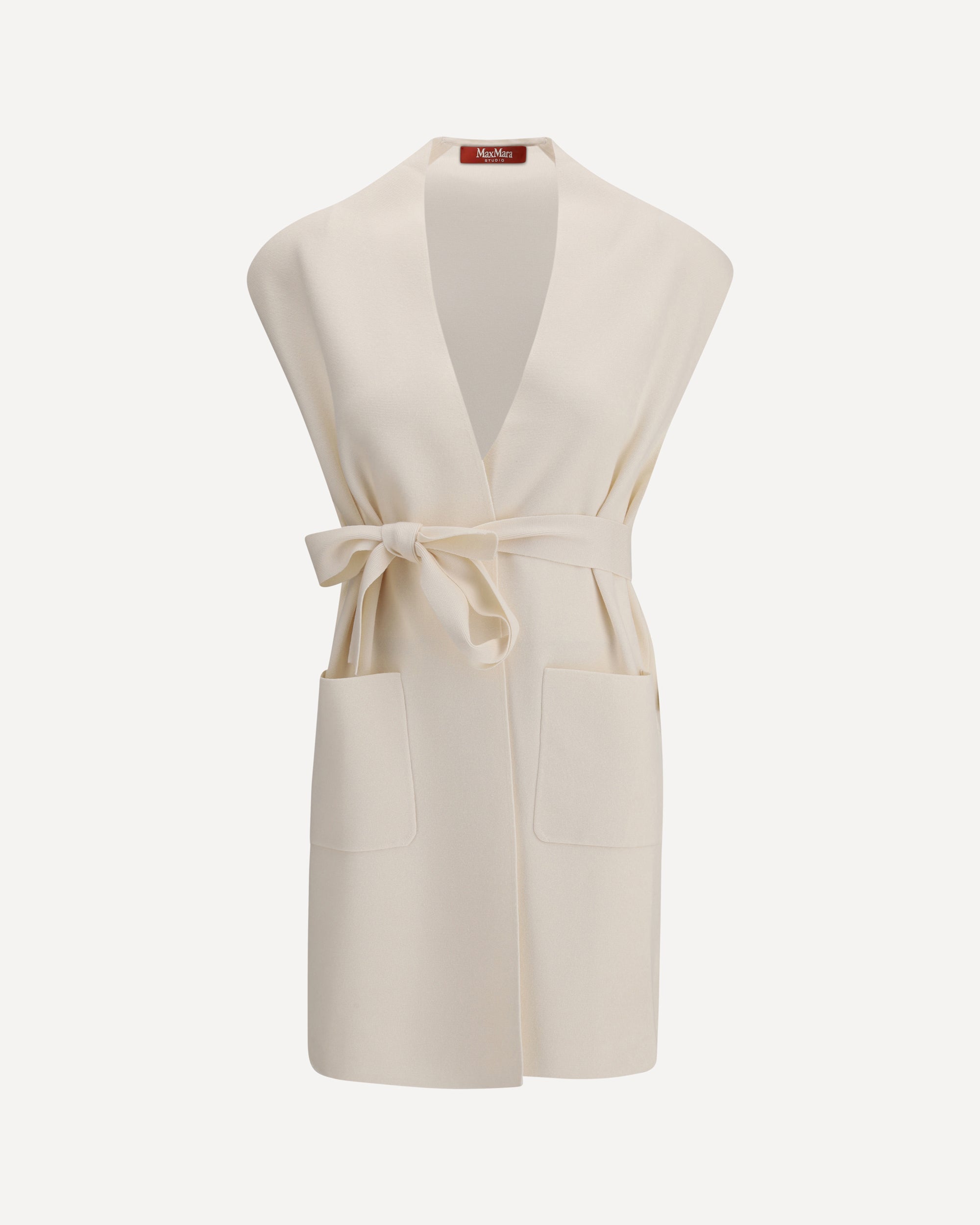 Spruce long Vest by Max Mara Studio features two welt patch pockets on the front for a functional and refined touch. Complete with a knotted and removable sash on the front, which allows you to define the silhouette and customize the look. A versatile and modern garment, ideal for adding elegance to any outfit.
