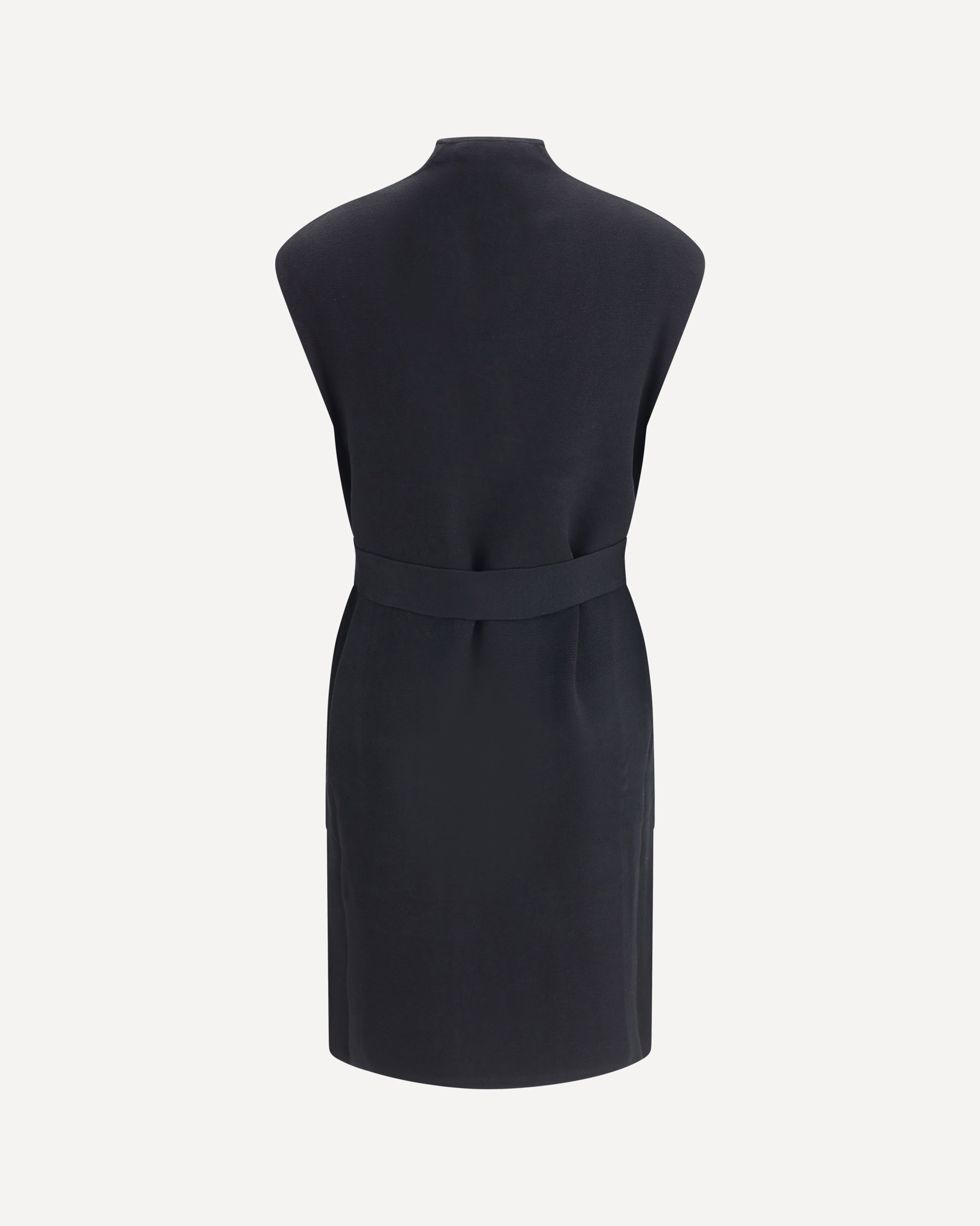 Spruce long Vest by Max Mara Studio features two welt patch pockets on the front for a functional and refined touch. Complete with a knotted and removable sash on the front, which allows you to define the silhouette and customize the look. A versatile and modern garment, ideal for adding elegance to any outfit.