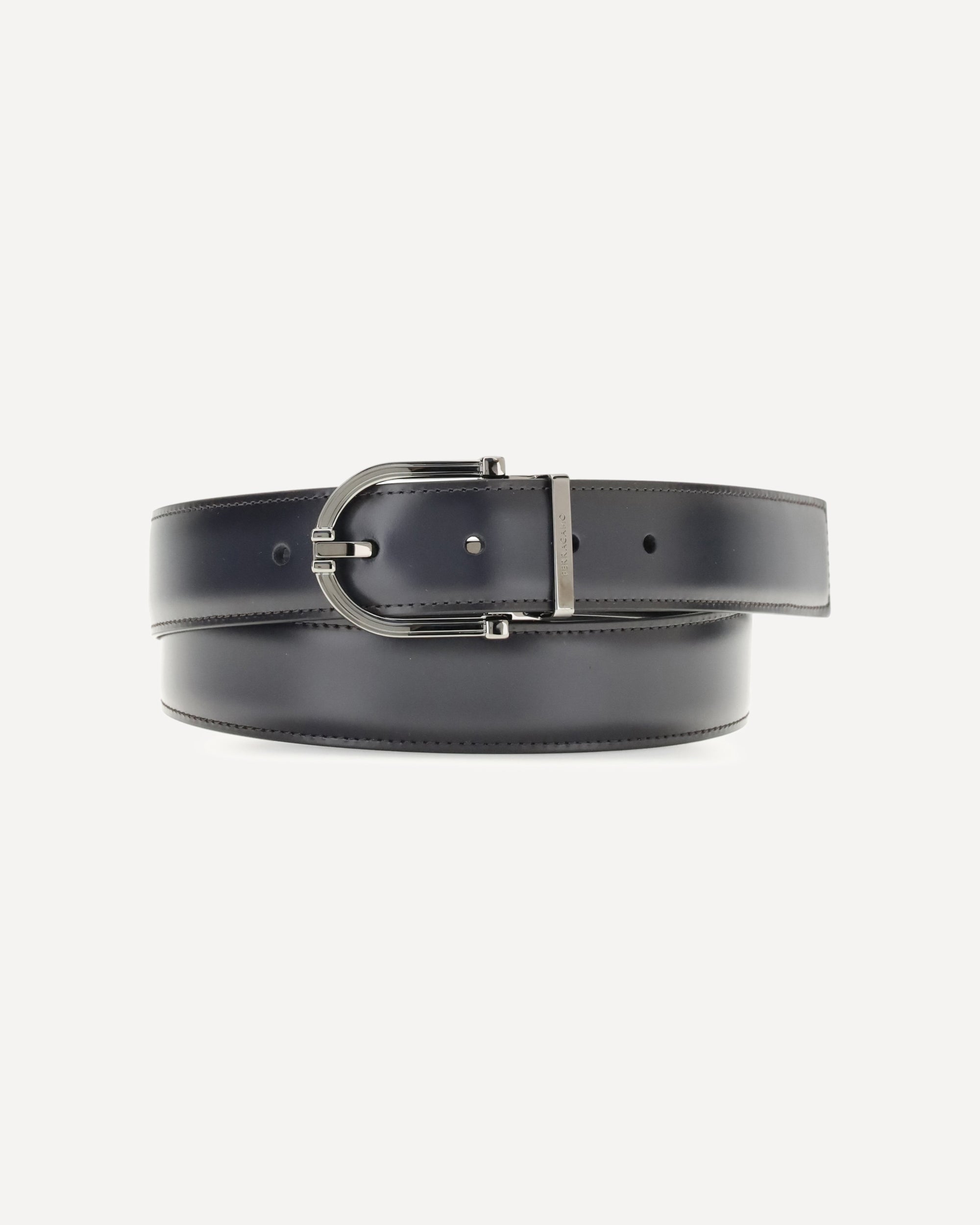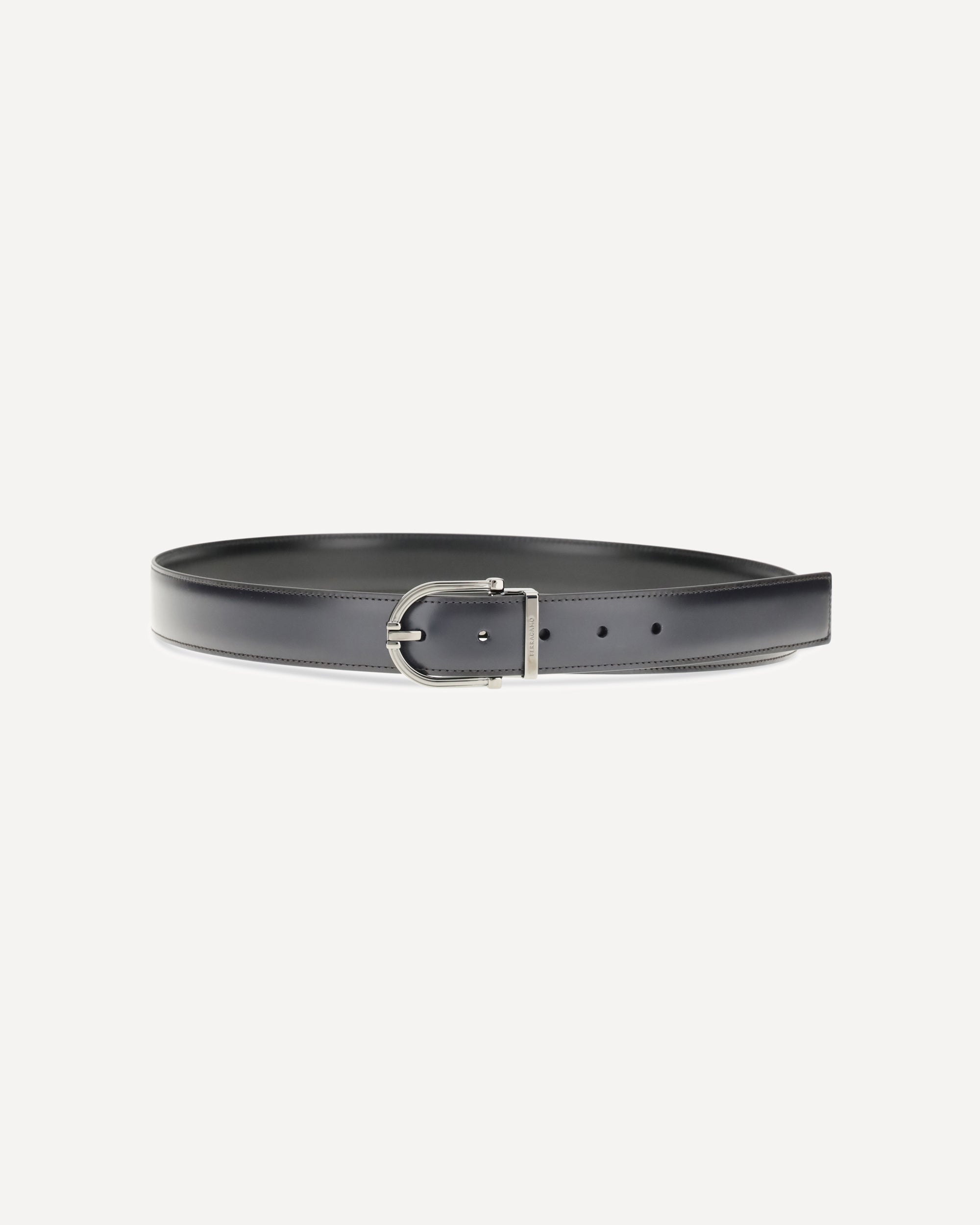 Reversible leather Belt by Ferragamo is made of soft calfskin and features a two-tone construction designed to offer maximum versatility. The geometric buckle with ruthenium finish is embellished with the signature engraved on the small loop, a discreet but distinctive detail. The model is adjustable in length to ensure a tailored fit. For more details, the size guide is available.
