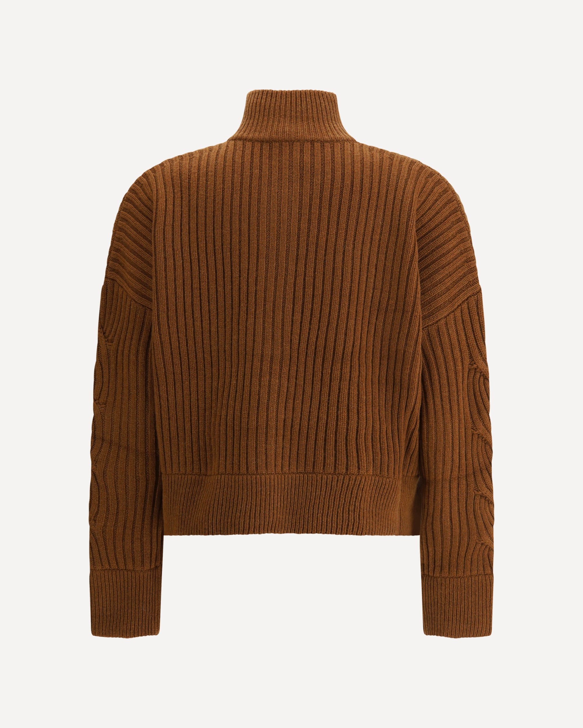 The Afelio Cardigan by Max Mara is crafted from a refined blend of Wool and Cashmere, combining softness and warmth. Featuring a high collar and button closure, it is designed with ribbed knit and cable knit details that add texture and character. A versatile and sophisticated piece, ideal for layering with elegance on cooler days.