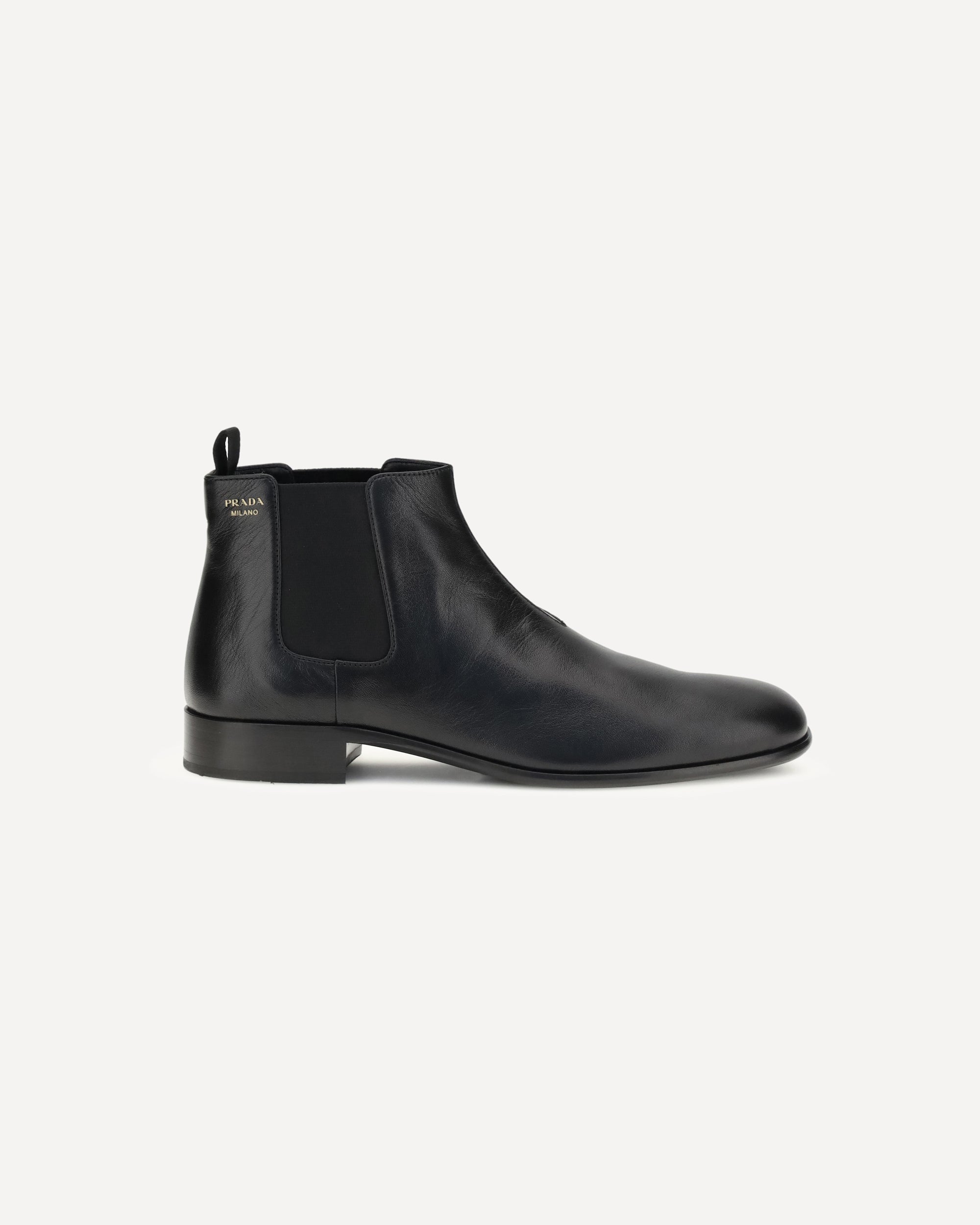 The leather Ankle Boots by Prada reinterpret a wardrobe classic with essential lines and distinctive details. The upper is enriched with elastic side inserts and a rear pull-on for a quick and practical fit. The leather lining ensures comfort, while the screen-printed logo adds an iconic touch. The above-ankle design is complemented by a one-piece leather-and-rubber sole with a branded logo that combines elegance and functionality.