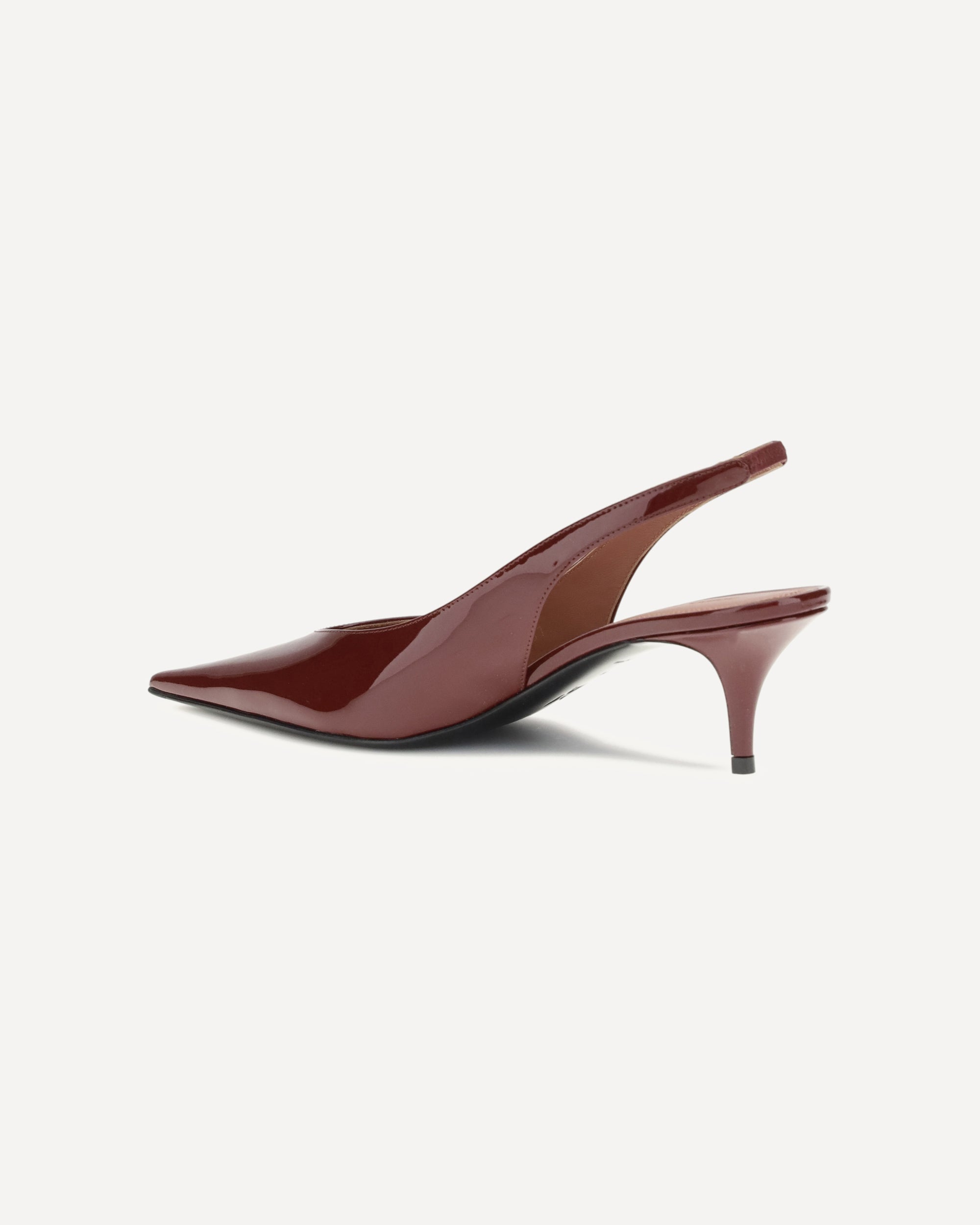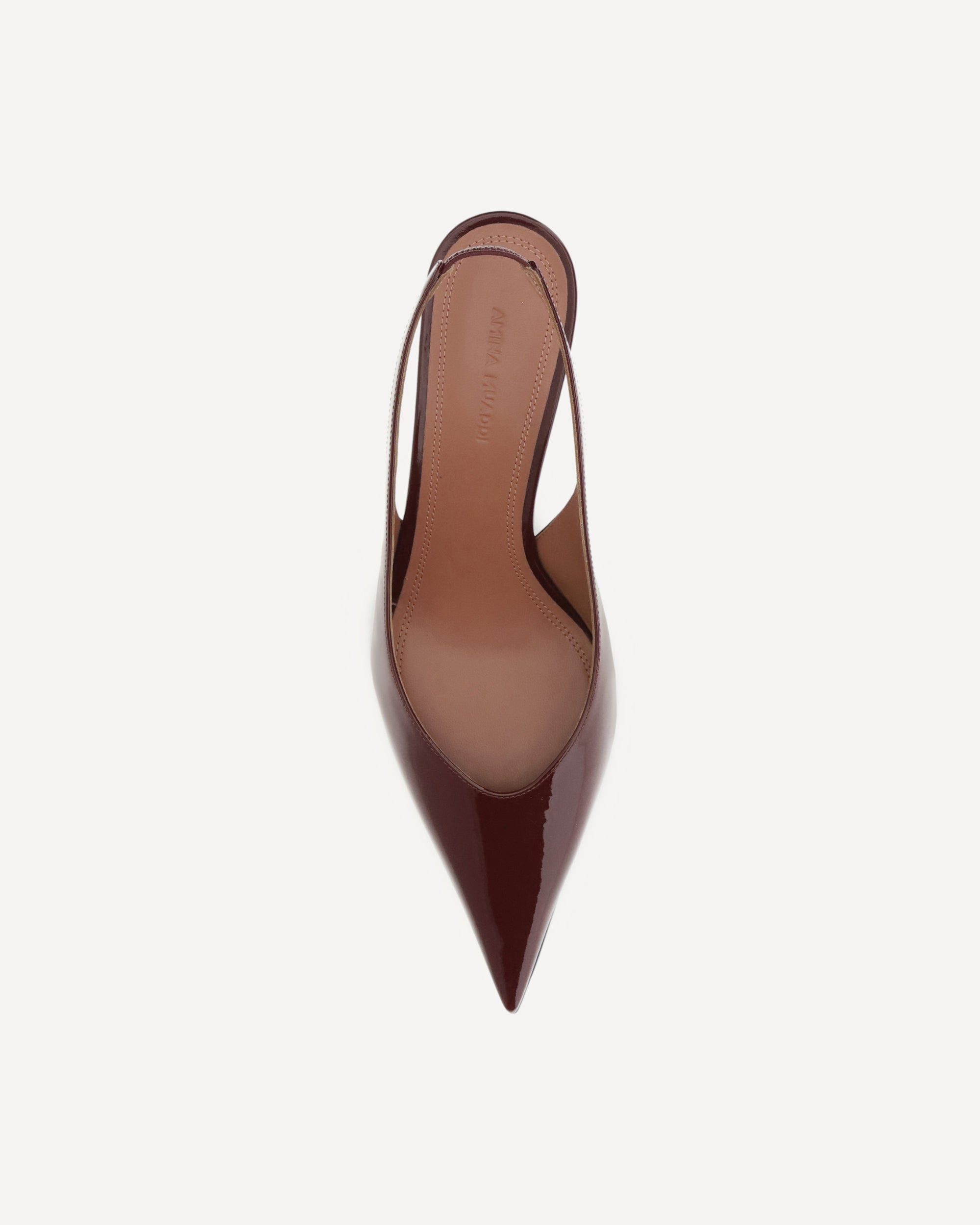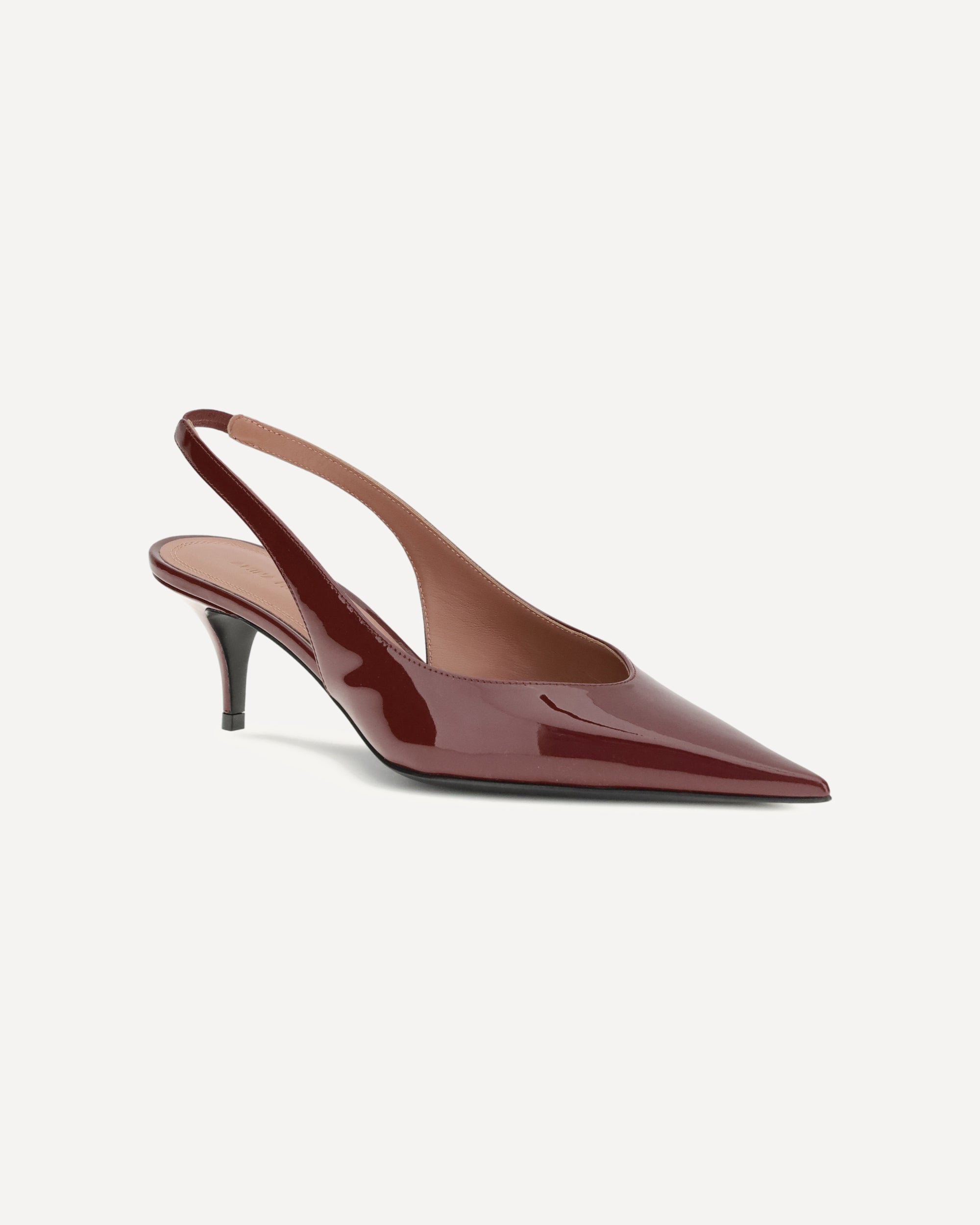 The Anok Pumps by Amina Muaddi reinterpret elegance with a contemporary twist. Featuring a slingback design and a refined patent leather finish, they stand out for their kitten heel that combines femininity and comfort. Perfect for completing day or evening looks with a sophisticated and modern touch.