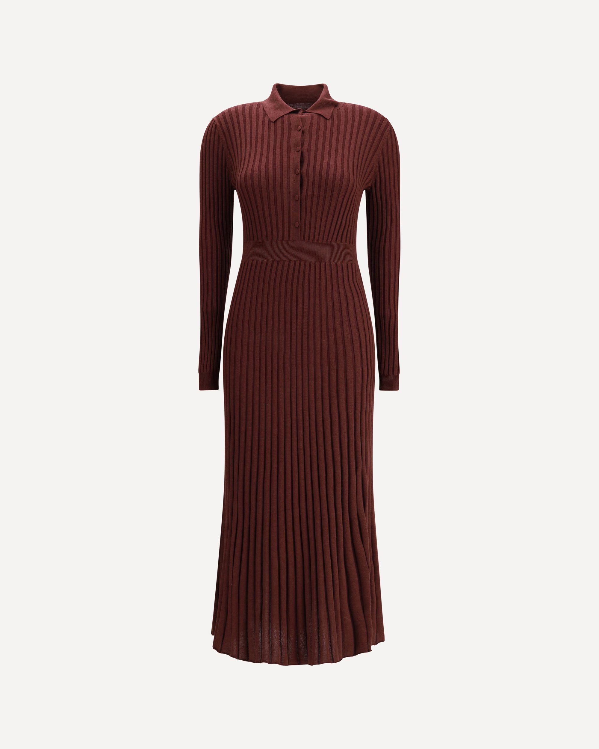 Gabriela Hearst's Ardor Maxi Dress, crafted from a luxurious silk and cashmere blend, combines sophistication and comfort. The ribbed design flatters the silhouette, while the front button closure adds a functional and delicately sophisticated detail.