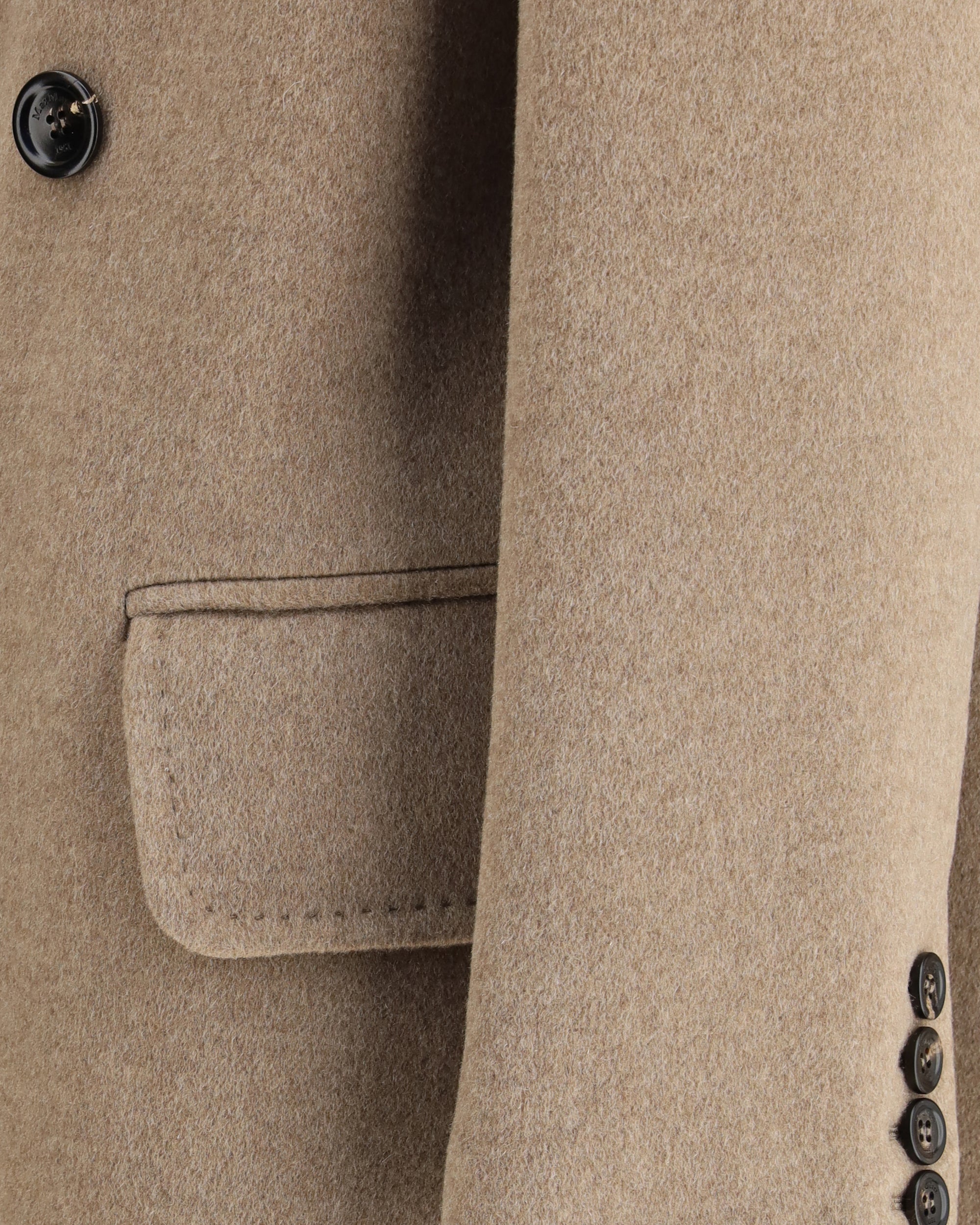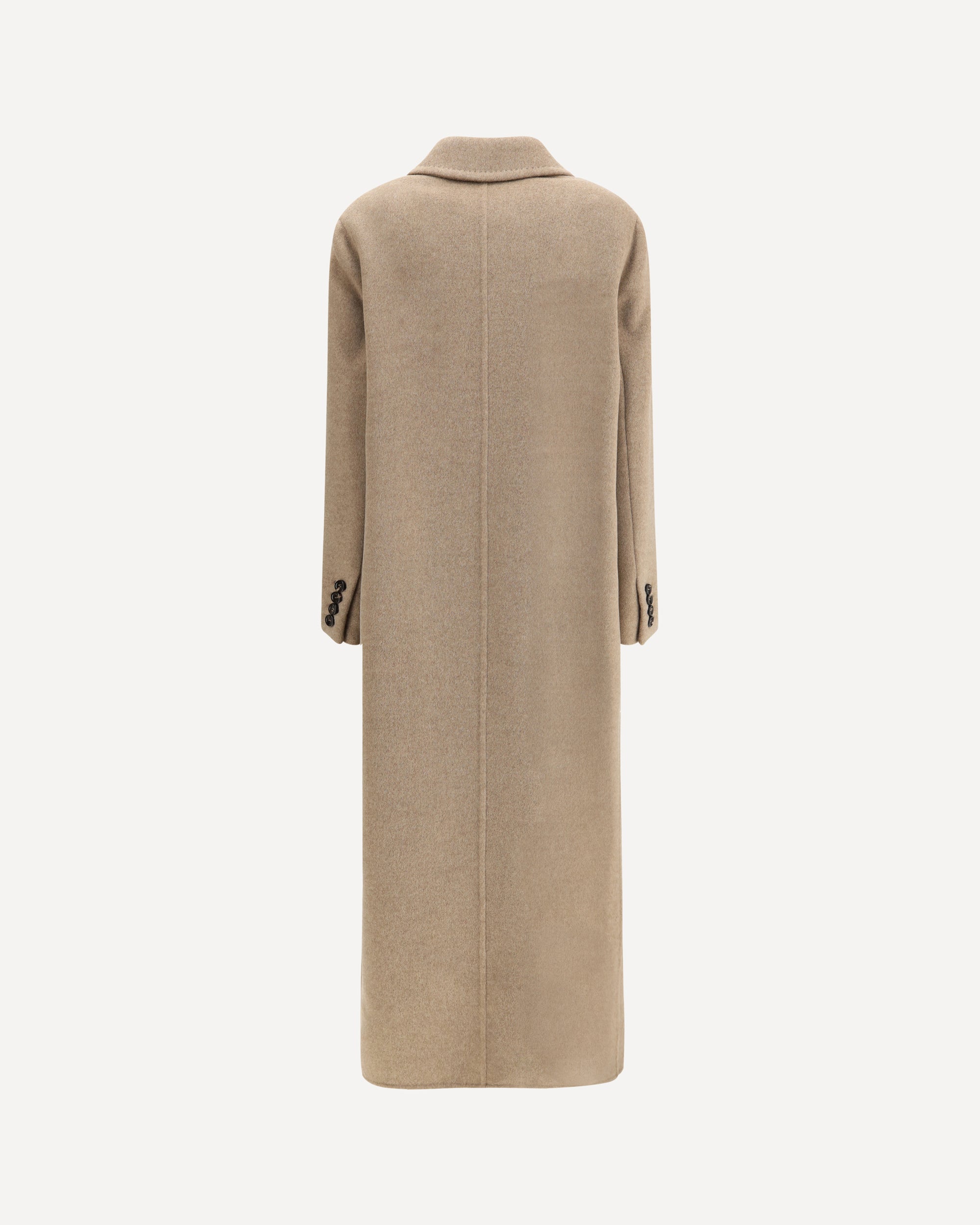 The Cashmere Drap Coat by Max Mara is a long double-breasted design that draws inspiration from masculine tailoring while embracing an oversized silhouette. Crafted from pure cashmere double drap with a soft, luxurious texture, it features a wide peak lapel and dropped shoulders with buttoned cuffs. The front closes with buttons and is finished with welt pockets and applied flaps, blending function and refinement. Semi-lined, it embodies effortless elegance and the timeless spirit of Max Mara’s outerwear.