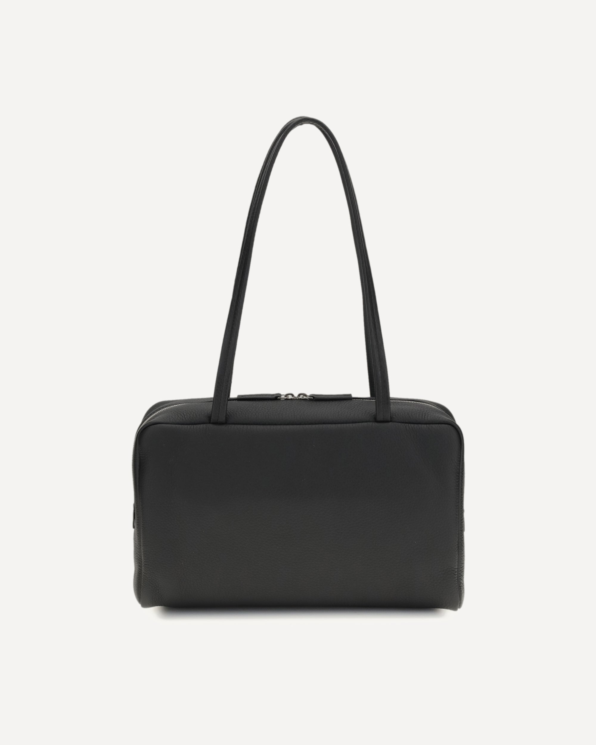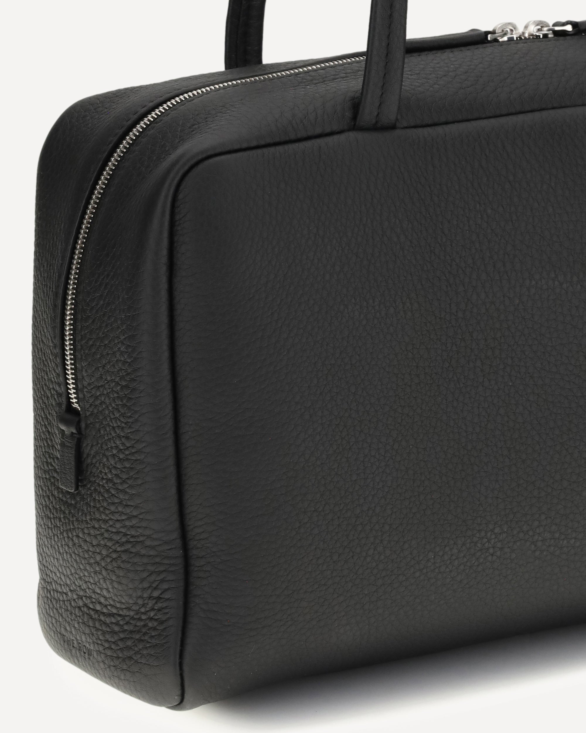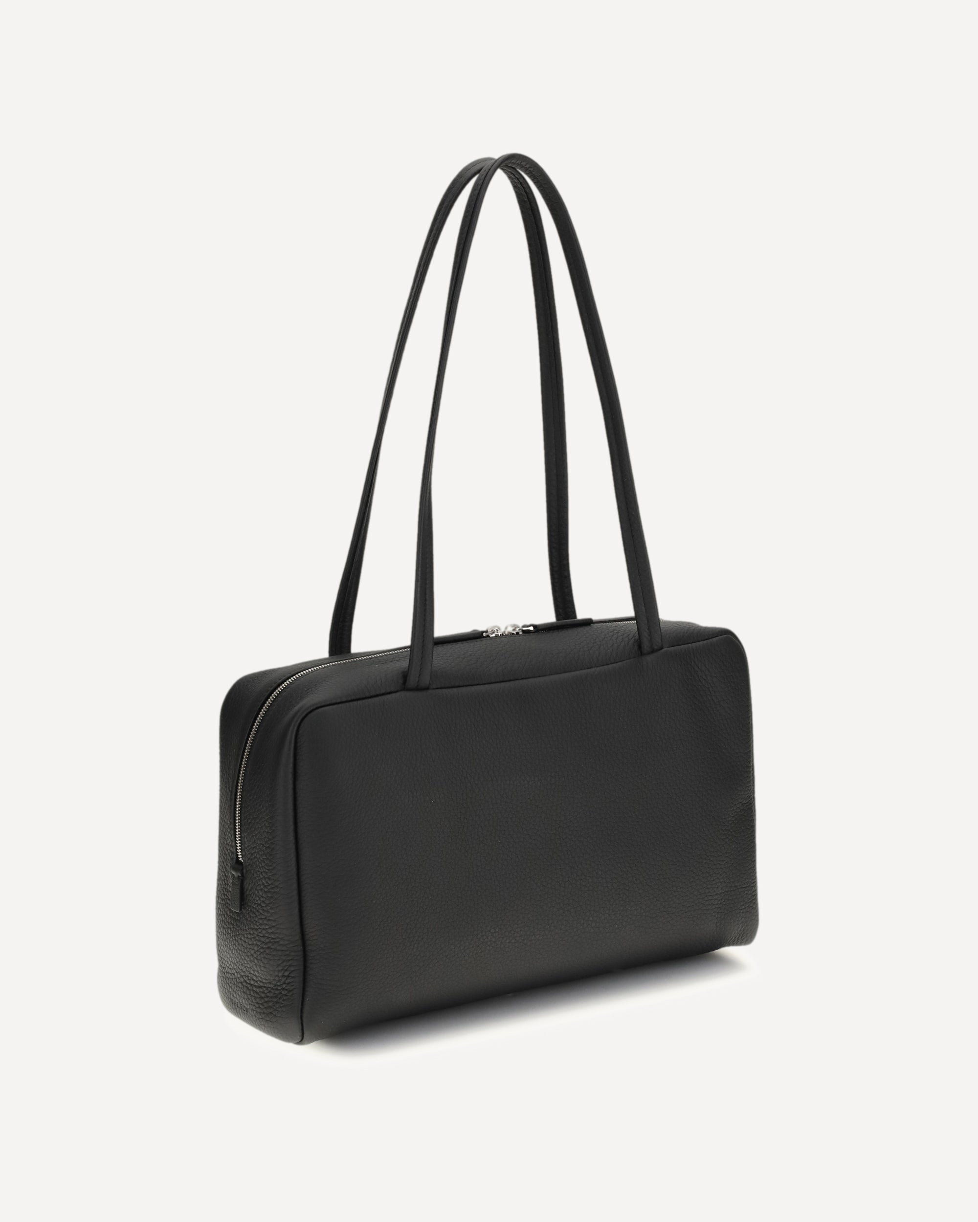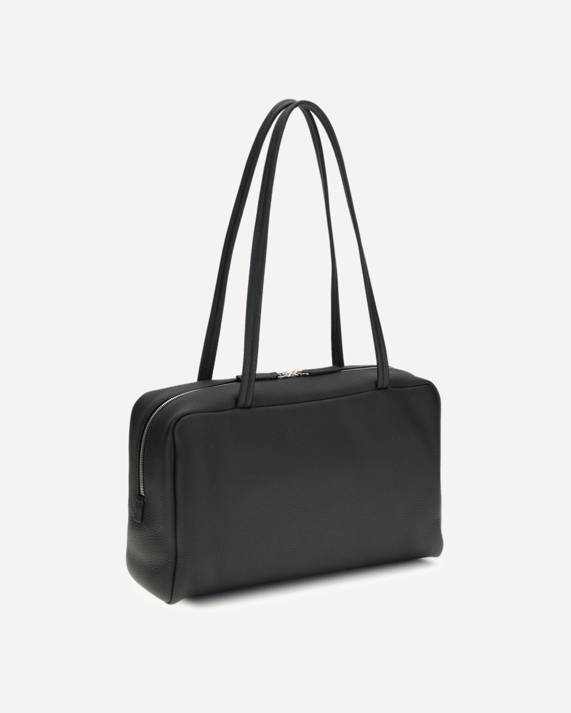 Crafted from textured calfskin, Astra Tote Bag by The Row combines elegance and functionality. Trim edges, elongated flat handles, and a double zipper closure define its understated, refined silhouette, while the natural grain of the leather, left intact, lends softness and a texture that gains character with use.