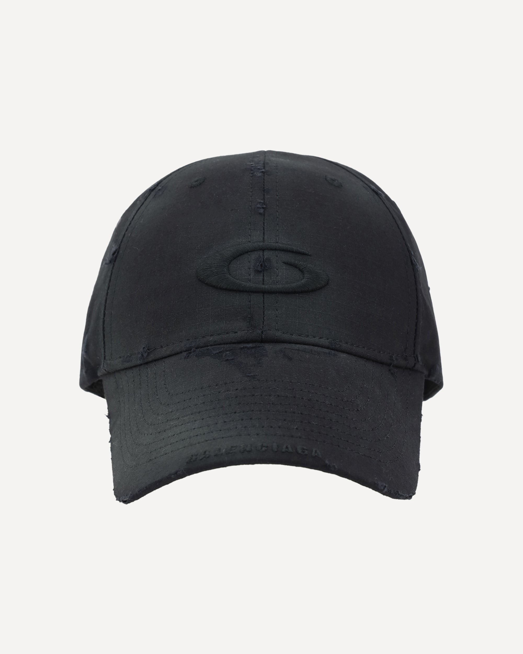 Balenciaga's Baseball Hat features a worn-in design and an adjustable back via felt for a comfortable fit. The brand's iconic signature is visible on the visor, while the brand's distinctive logo appears on the front, adding a touch of urban, sophisticated style.