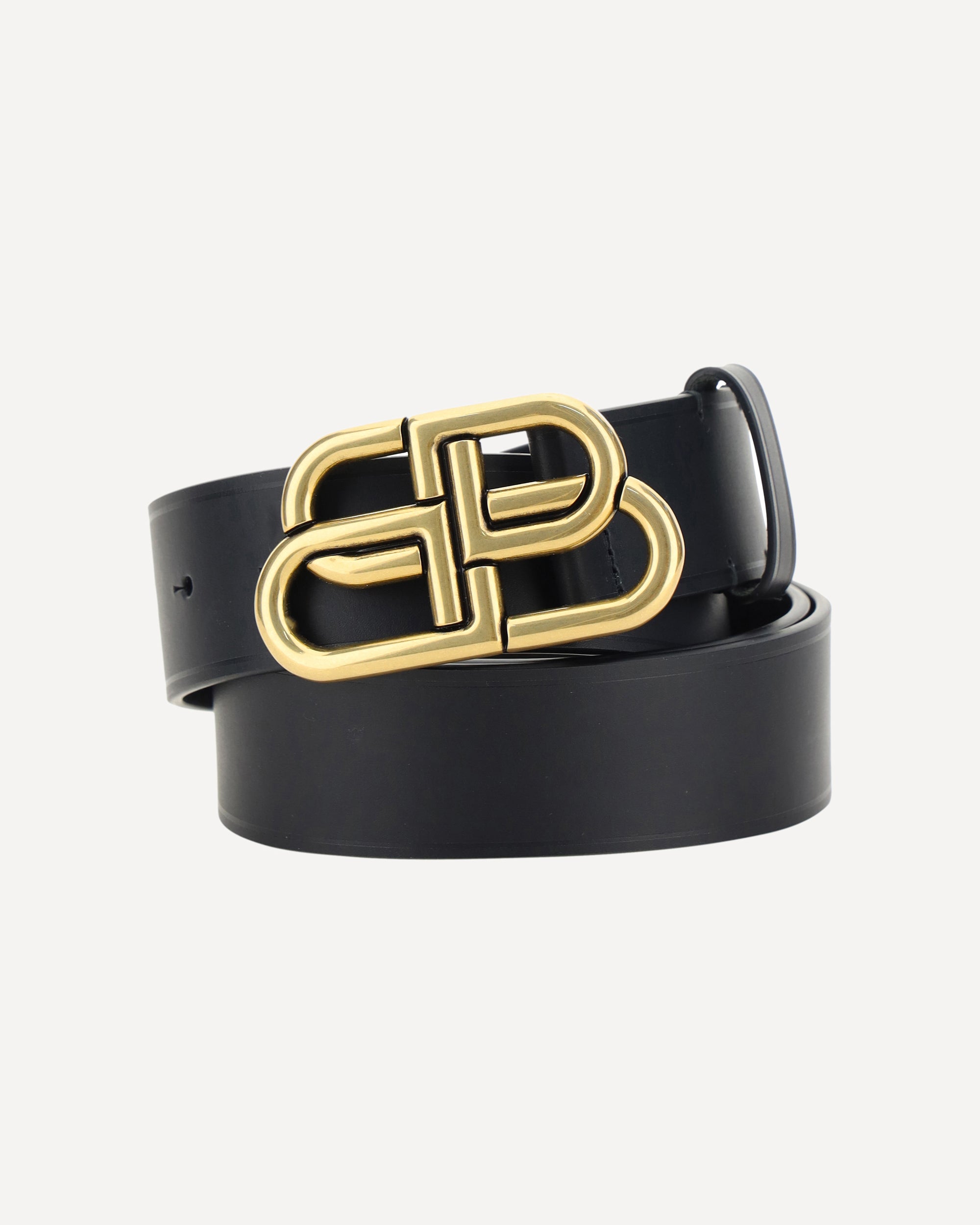 Balenciaga's leather Belt is a refined and modern accessory, featuring a smooth leather design and a gold-plated buckle with the brand's iconic logo on the front. Perfect for adding a touch of discreet and distinctive luxury to any outfit.