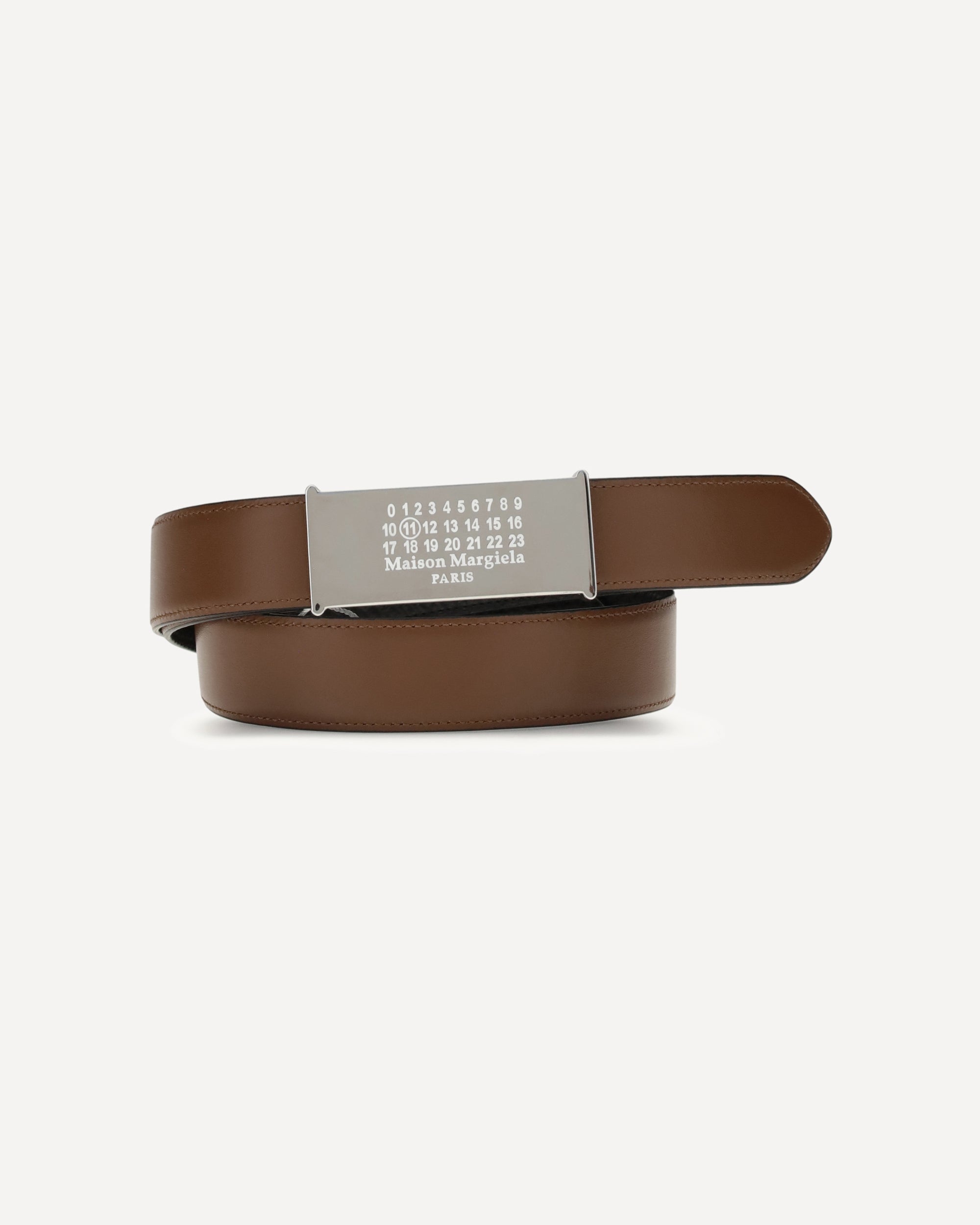 The Buckle Belt by MM6 Maison Margiela features an essential and contemporary design, enriched with a logo buckle, adjustable holes and a diamond point. Complemented by the Maison's iconic numerical logo, it represents a versatile accessory with distinctive character, perfect for enhancing any outfit.