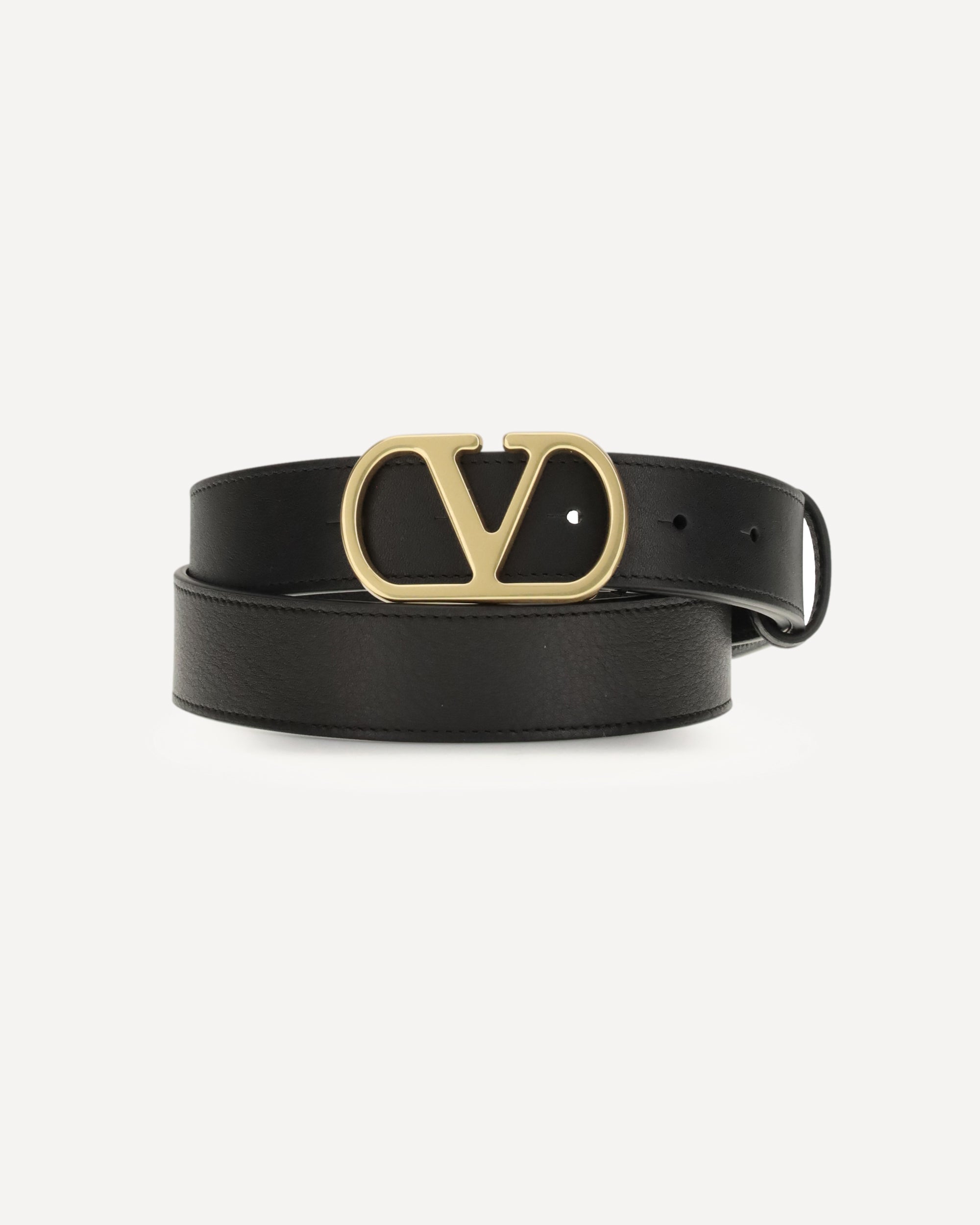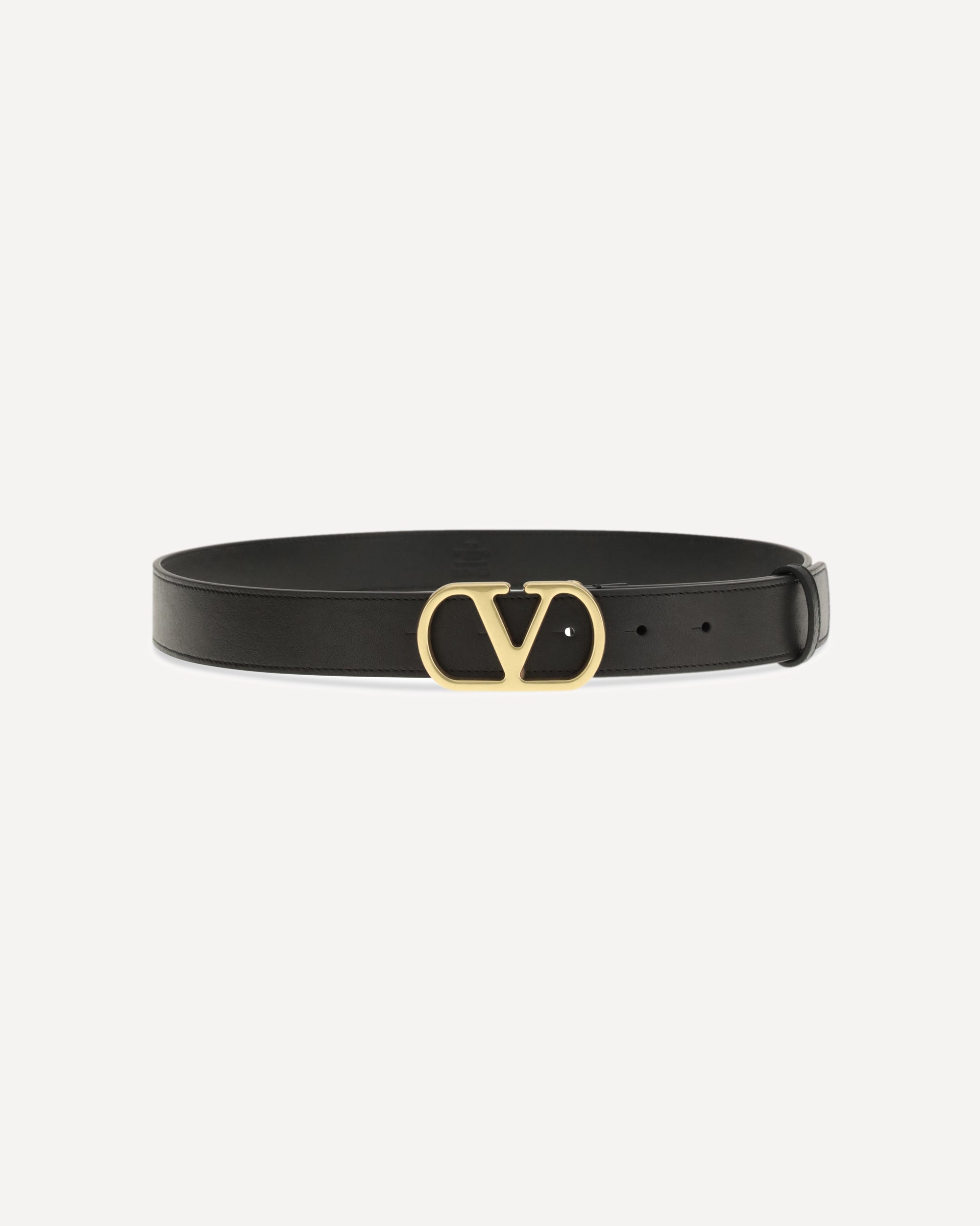 The VLogo Signature Belt by Valentino Garavani is crafted from glossy calfskin with a smooth leather interior and features the house’s iconic antiqued-brass VLogo buckle. Elegant and versatile, it brings refined character to both tailored outfits and everyday looks.