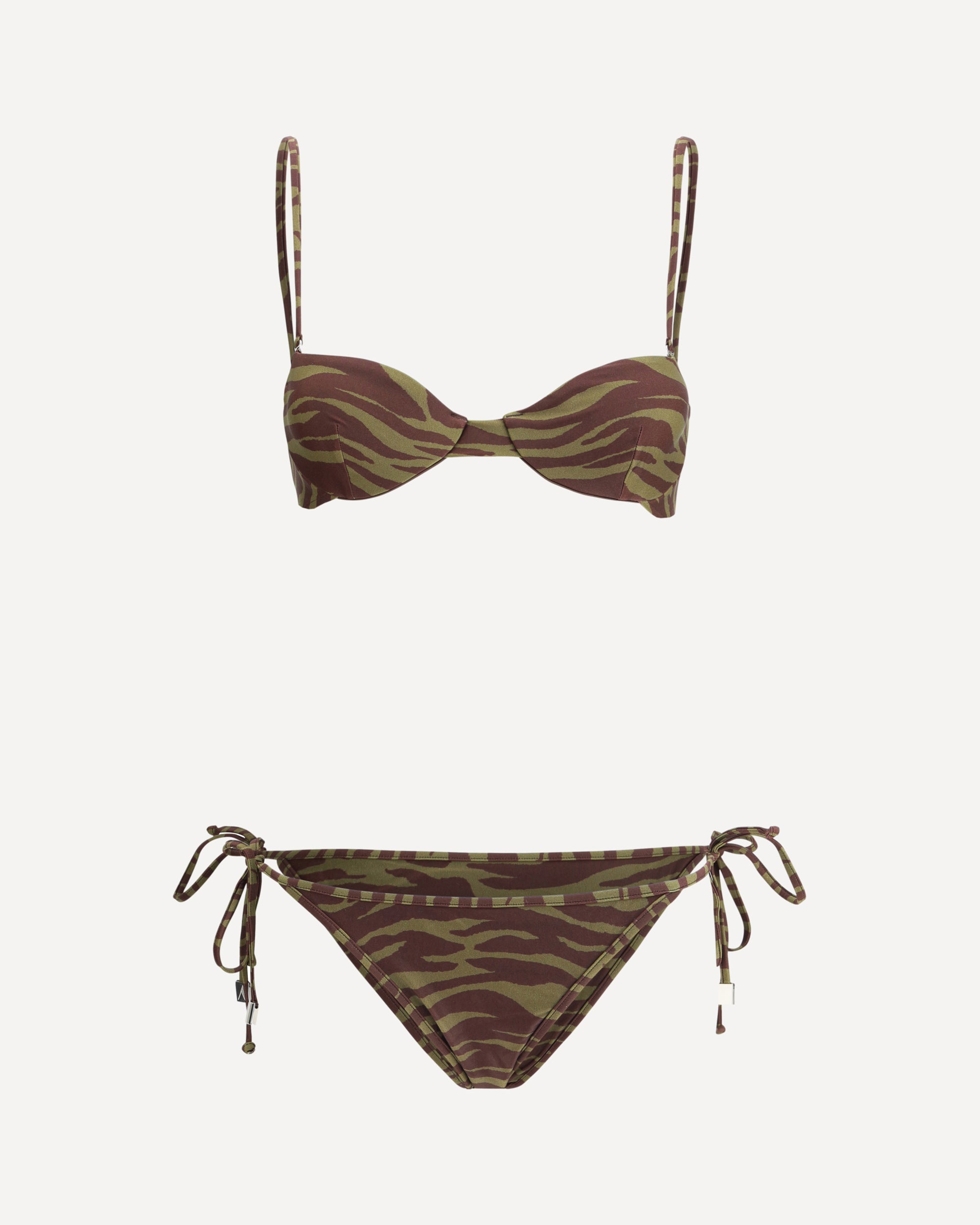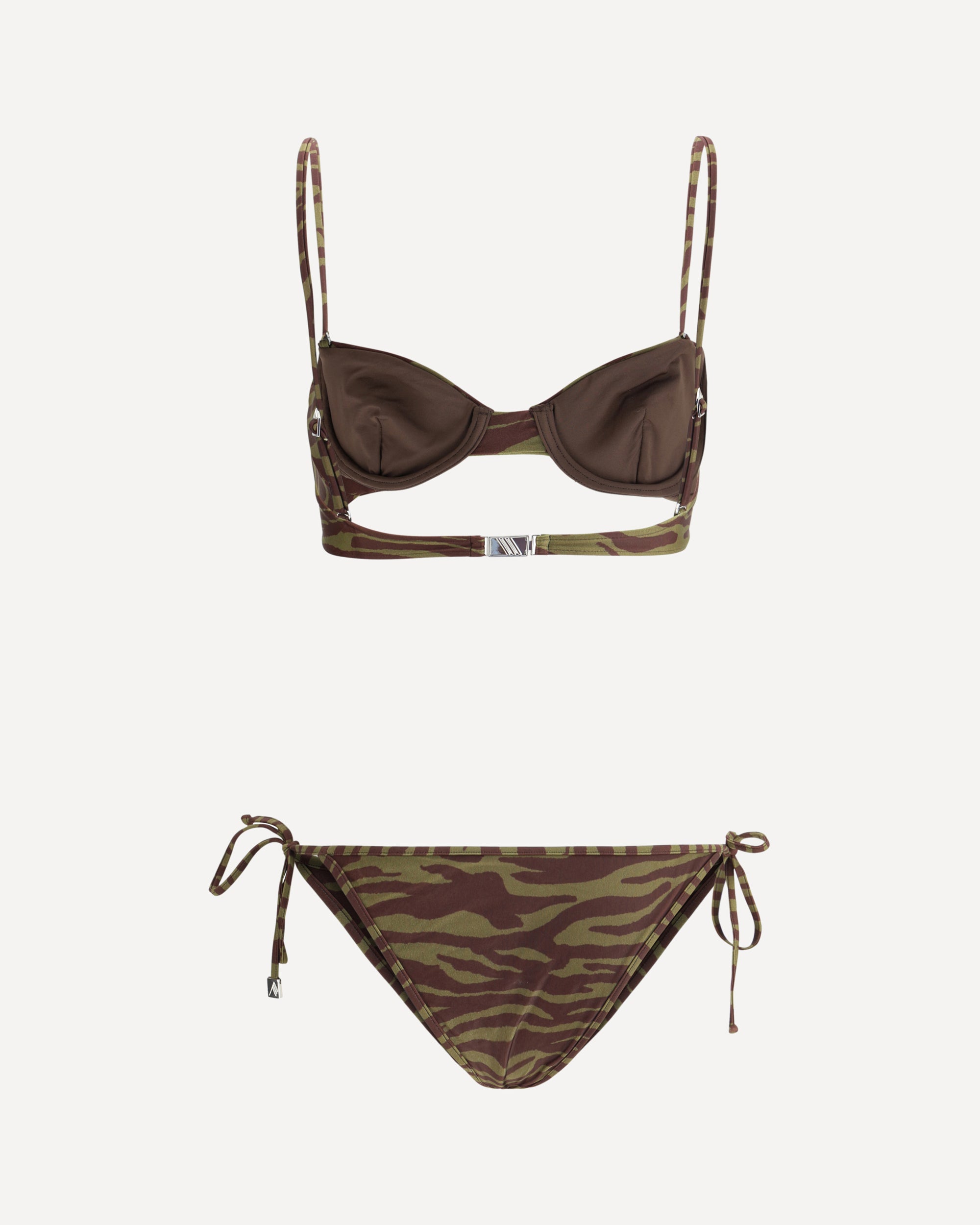 The bikini Swimsuit by The Attico is ideal for a bold and sophisticated look. The top top features adjustable and removable straps, with a logoed hook-and-eye closure at the back for a customizable fit. The briefs are adjustable thanks to side ties for optimal comfort and a perfect silhouette. The animal pattern completes the design with a touch of sensuality and originality