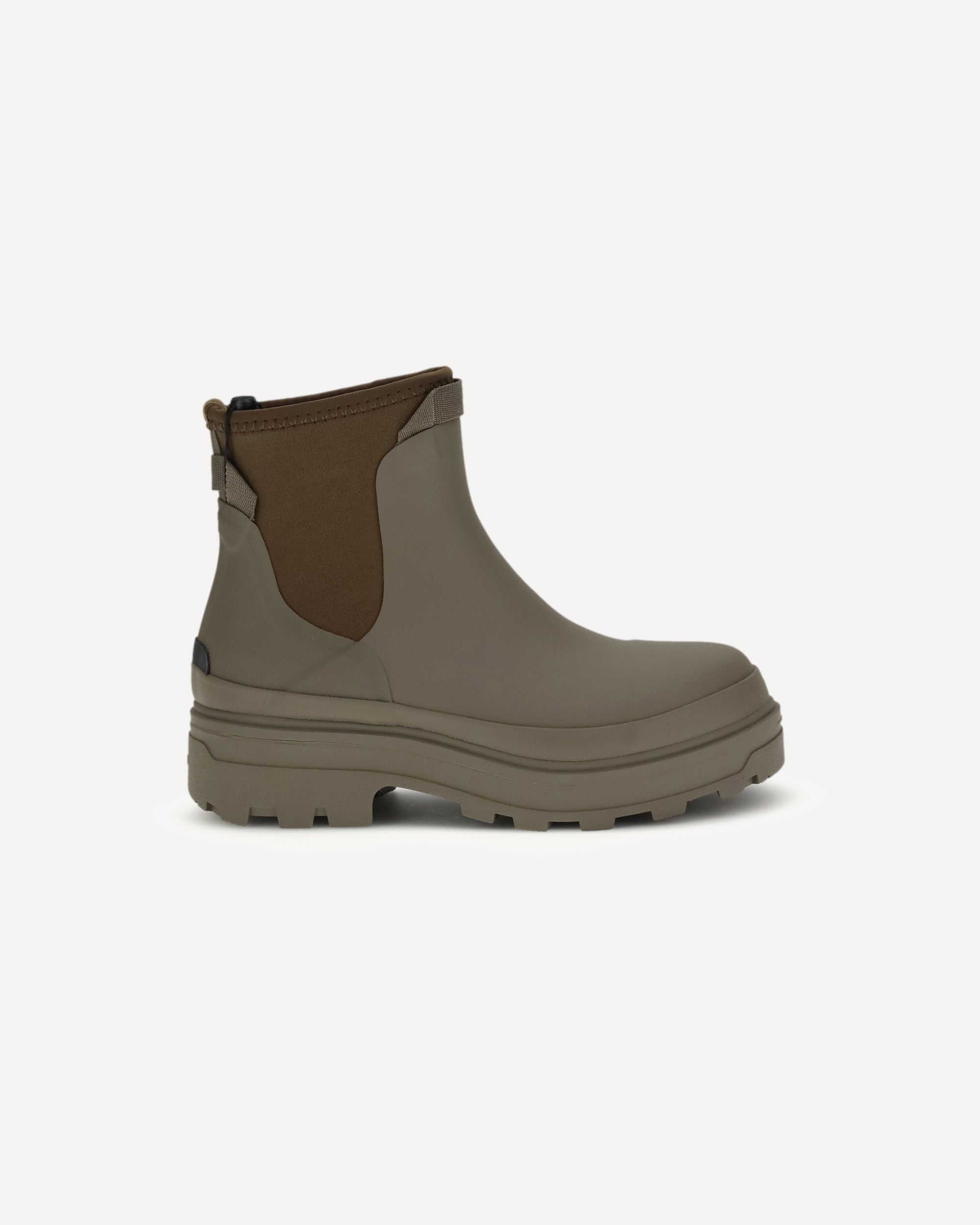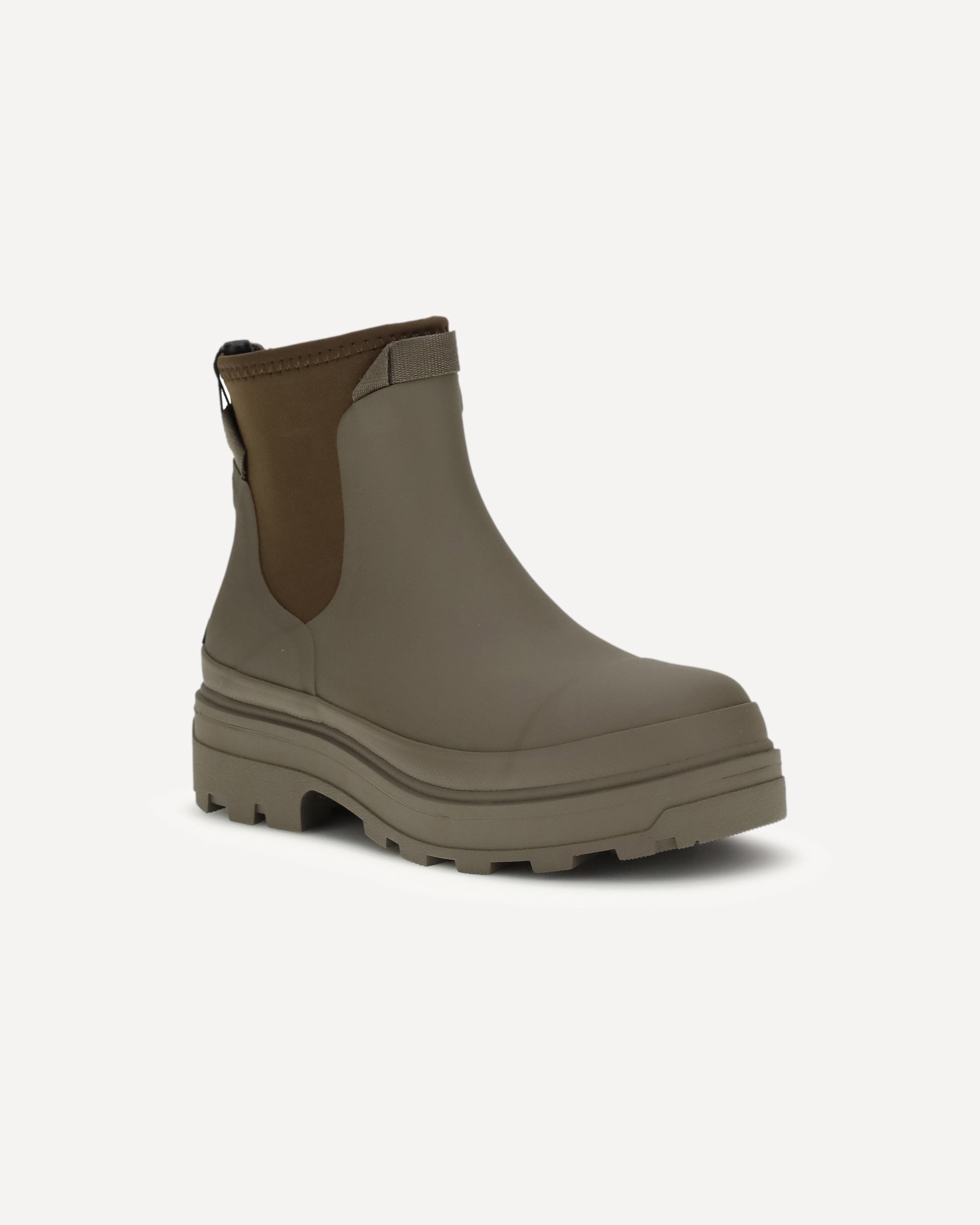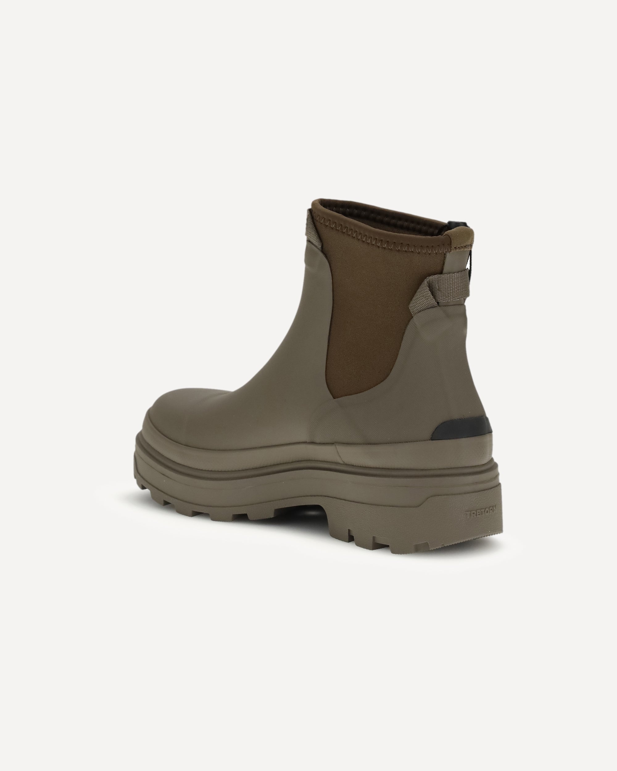 Blasia rubber Boots by Tretorn are rugged and durable Chelsea boots designed to tackle challenging terrain in the wild, but with a sleek and stylish design that is also ideal for the city. Equipped with numerous reinforcements, they feature a quick-drying waterproof neoprene lining and soft edging on the upper edge to prevent chafing, combining functionality and comfort in every situation.