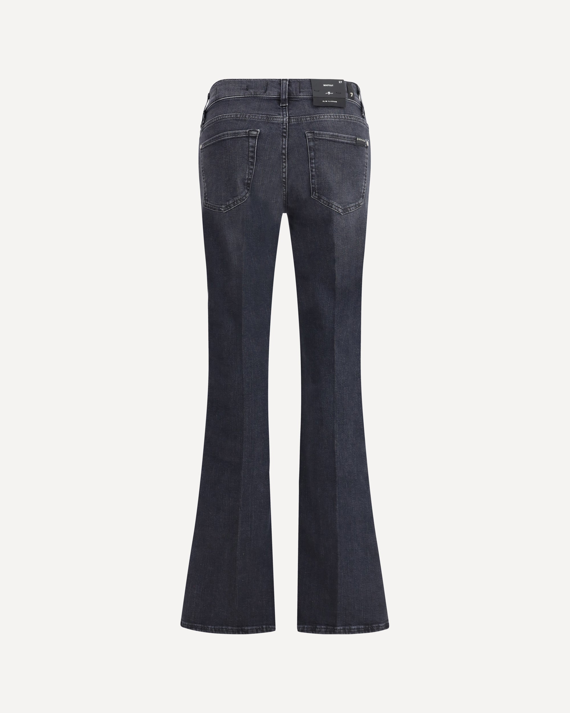 The Slim Illusion bootcut Jeans feature a mid-rise waist that gently hugs the hips and thighs before subtly flaring at the knee, elongating the leg. The zip and button closure ensures practicality, while the clean pocket and tailored details along the sides enhance the refined silhouette. This pair combines comfort with contemporary femininity, ideal for versatile everyday looks.