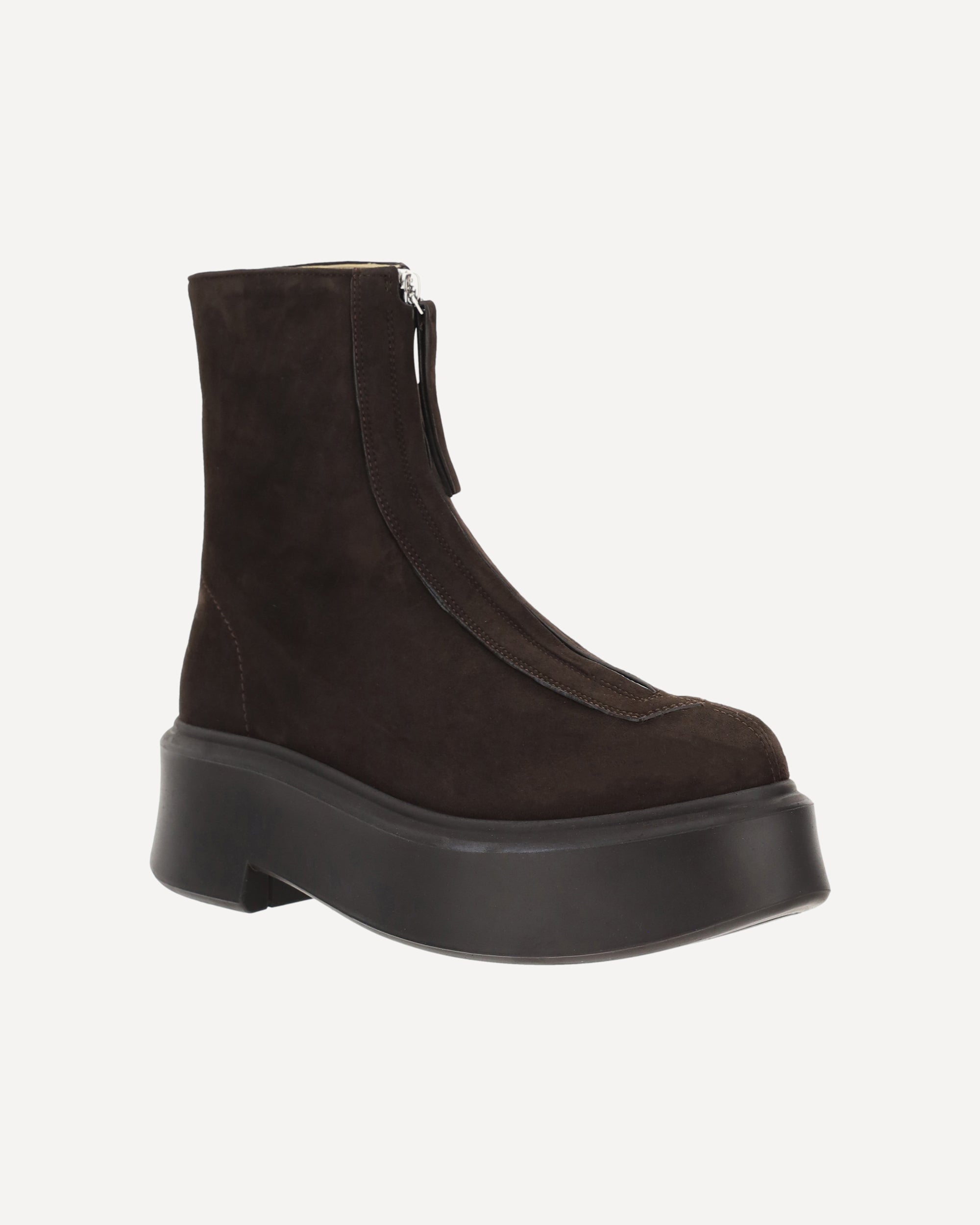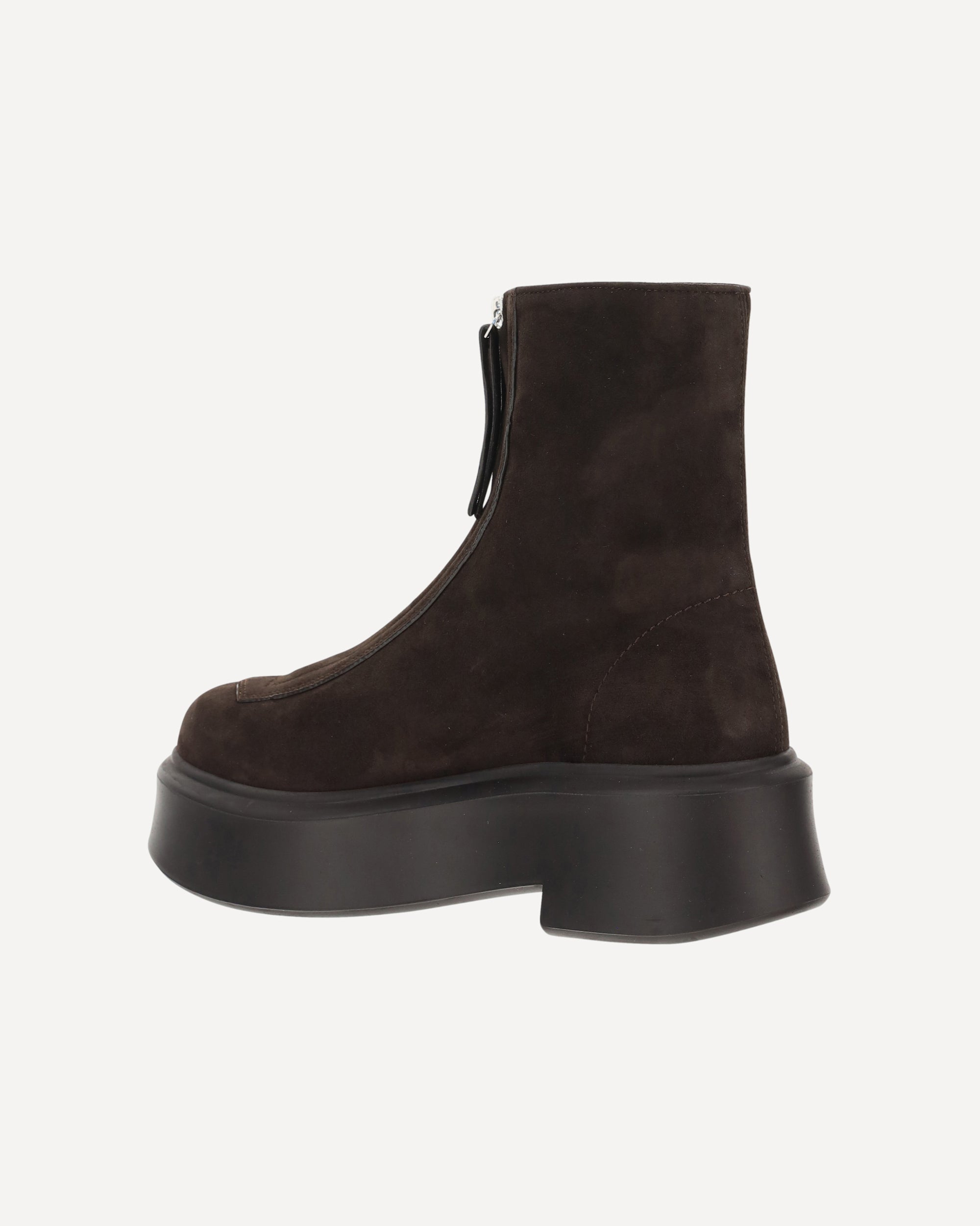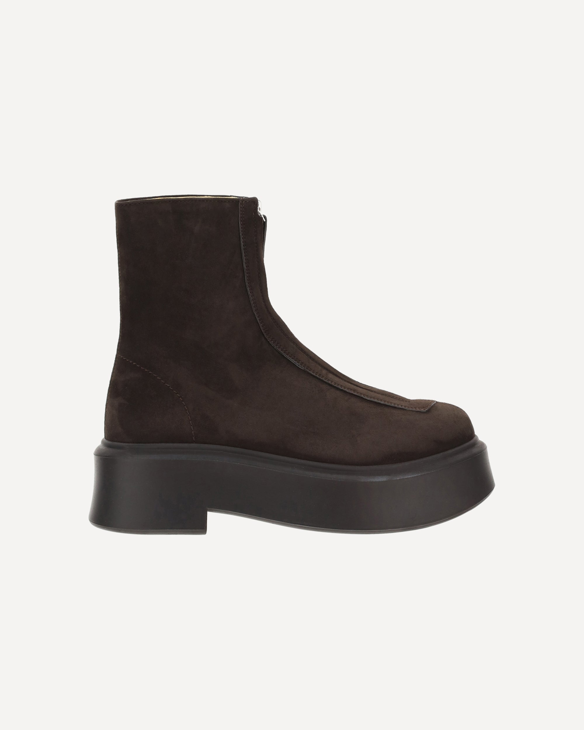 The leather Boots by The Row combine essential lines and fine materials. The front zipper adds a modern touch, the round toe balances the design, and the platform sole offers comfort and character. Suede completes the look with soft, sophisticated elegance.