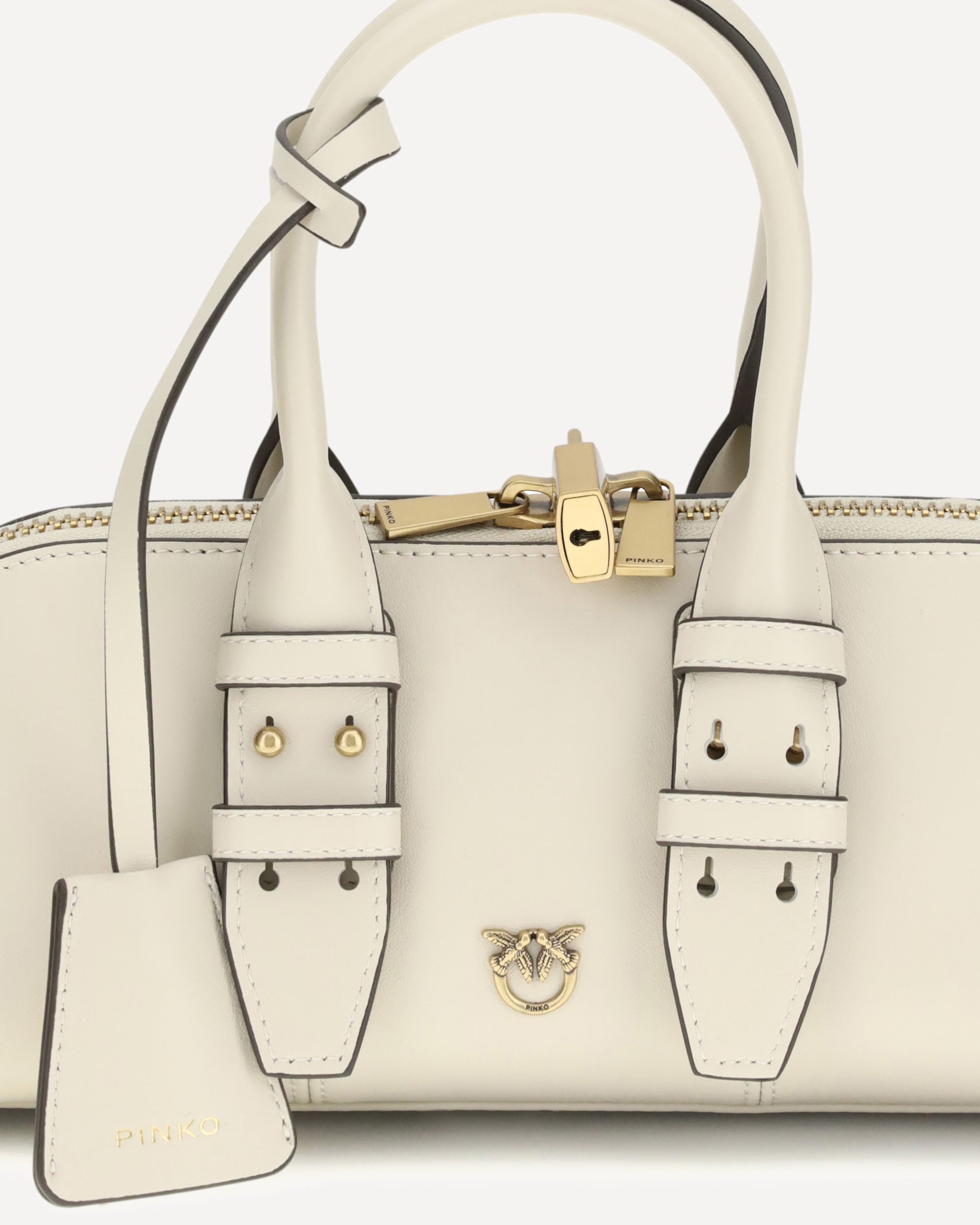 The Escape Baguette Handbag by Pinko is an elegant and functional model, perfect to accompany every moment of the day. Equipped with a top handle and adjustable and removable leather shoulder strap, it can be carried by hand, shoulder or crossbody, offering great versatility. The double-slider zipper closure is embellished with a distinctive detail: a padlock decorated with the iconic Love Birds logo, which can be opened thanks to the key kept in the matching leather charm. A practical and sophisticated accessory with the unmistakable character of Pinko.