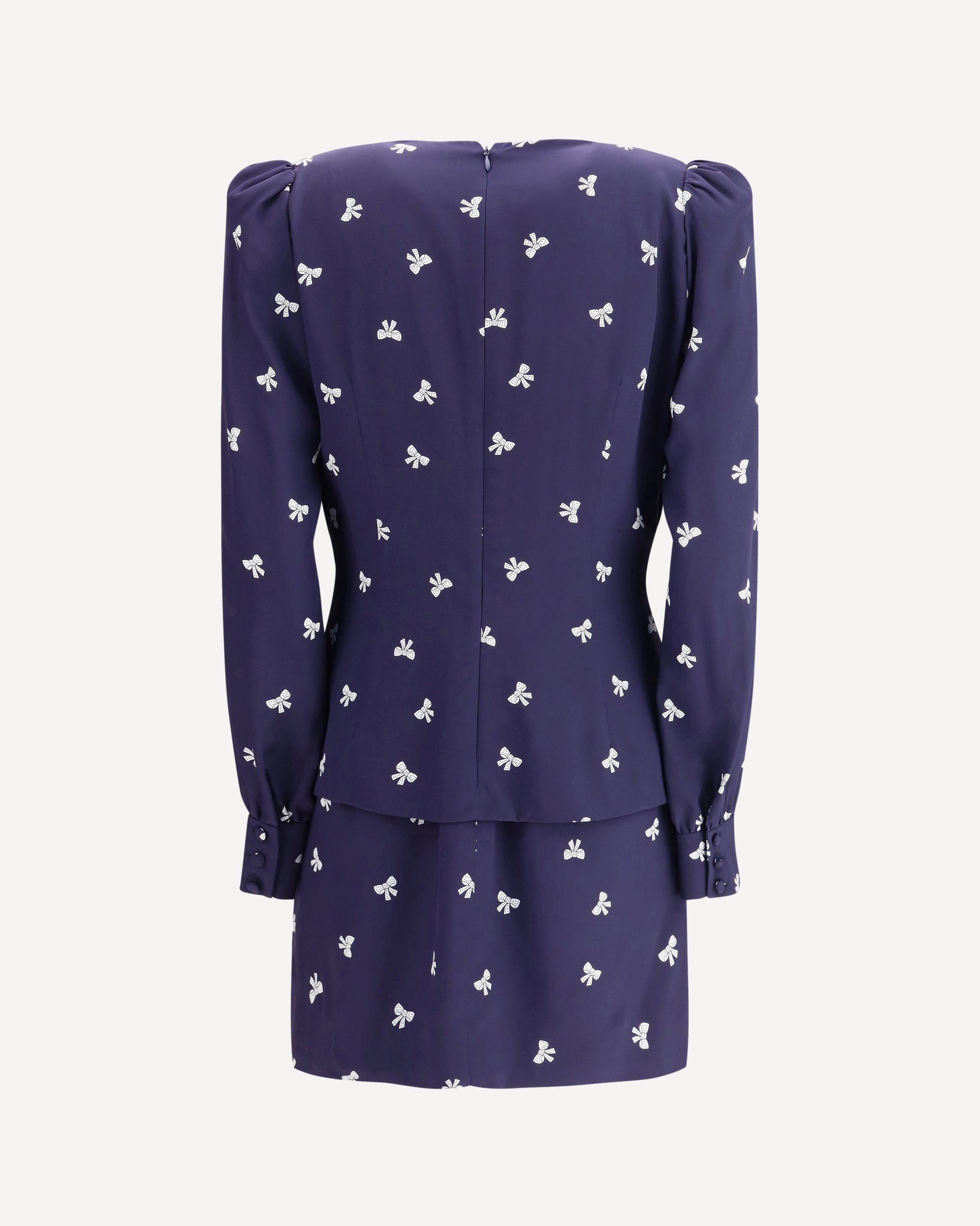 The Bow Patterned Short Dress by Alessandra Rich combines a playful design with refined details. Made with an all-over print of bows, it features a wide front neckline and padded shoulders that elegantly define the silhouette. Two jeweled buttons embellish the front, while the back zipper closure ensures a perfect fit. A feminine and contemporary piece, perfect for a sophisticated and characterful look.
