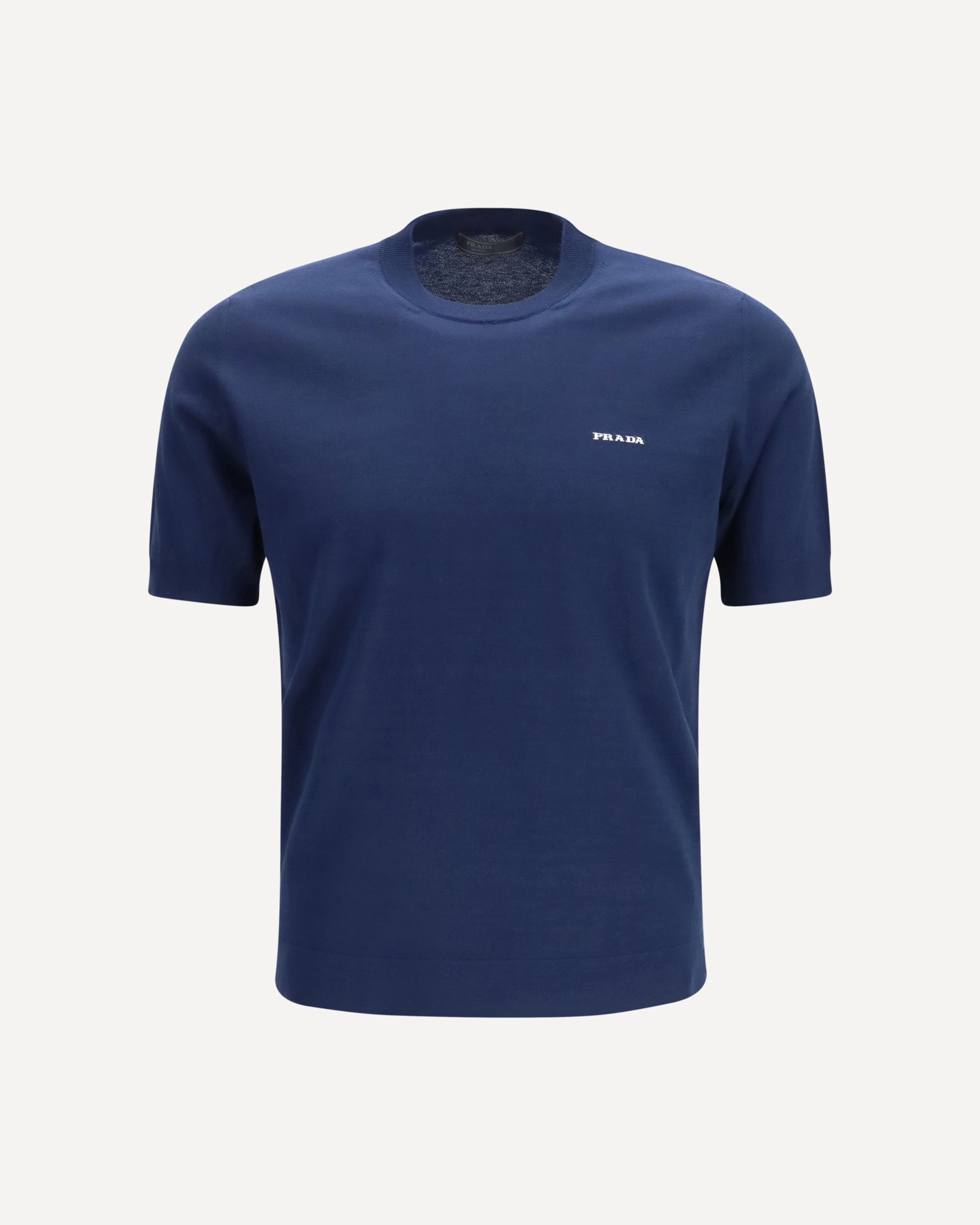 The C-Neck Knit in cotton with short sleeves and front left logo by Prada embodies essential and sophisticated style. Crafted from soft cotton, it features a classic crew neckline and clean silhouette, enhanced by the Prada logo on the left chest as a subtle signature detail. This piece blends minimalism with distinctive identity in a refined contemporary design.