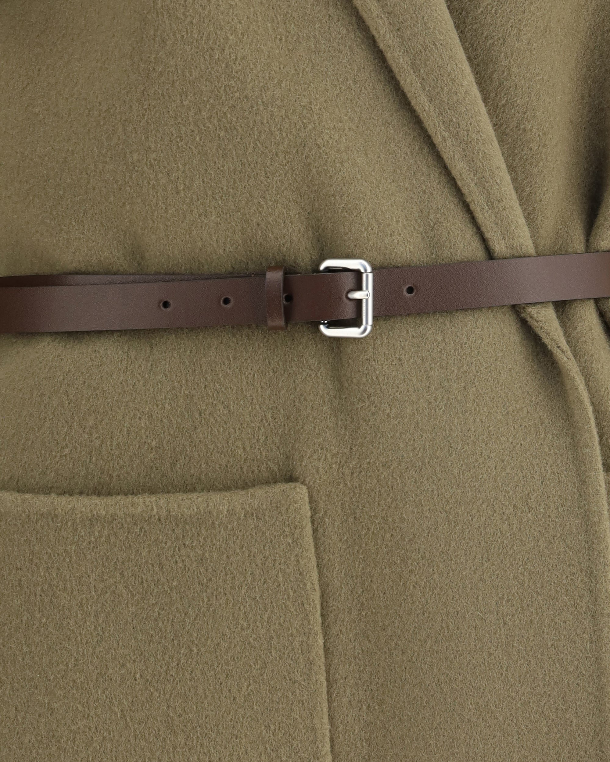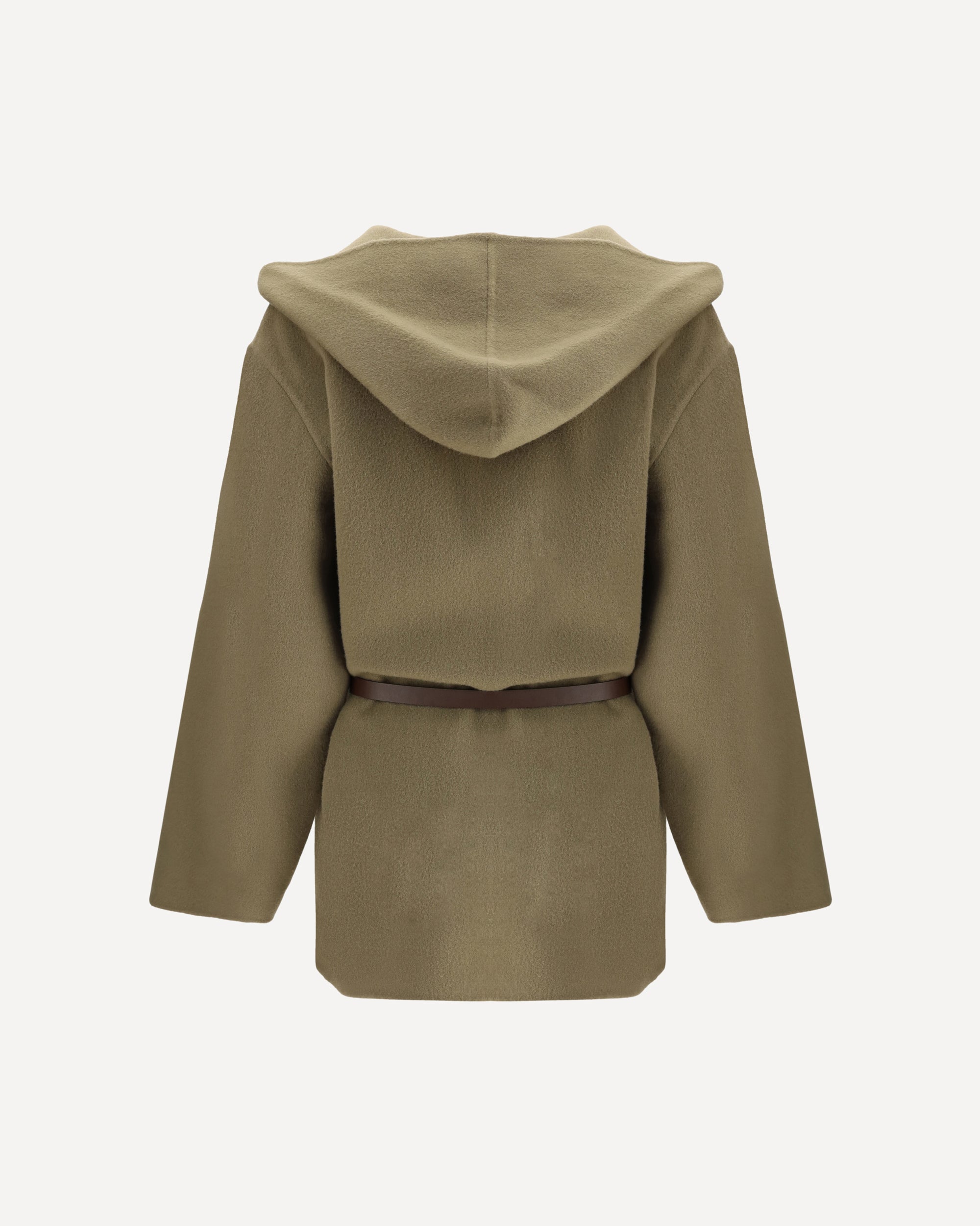Jacob Cohën's Double wool cloth caban Jacket is an elegant, wrap-around piece made of fine cream-colored brushed wool. Featuring a hooded design with a belted waist, it has a double-knit fabrication that enhances its quality craftsmanship. Patch pockets complete the look with a functional and refined touch.