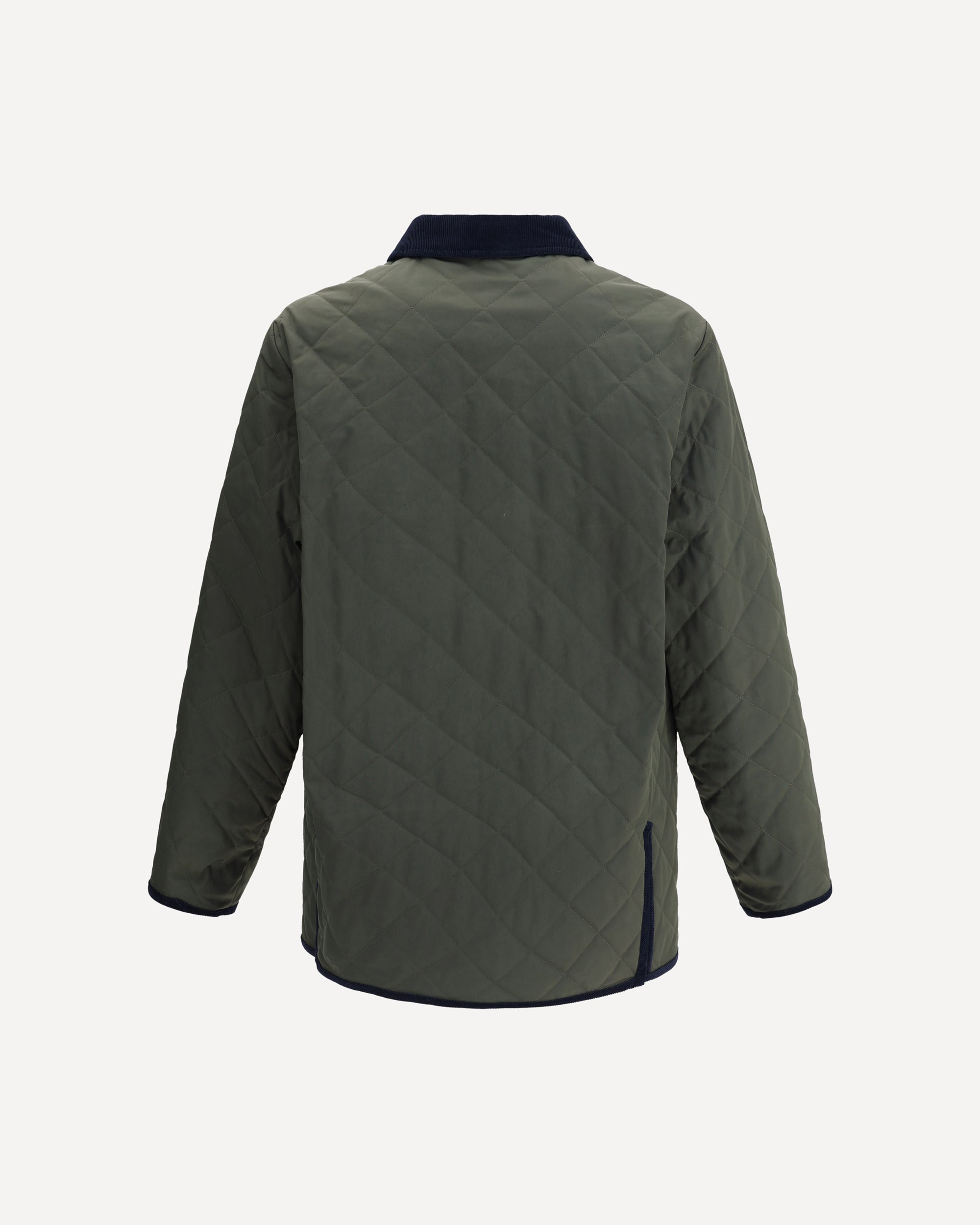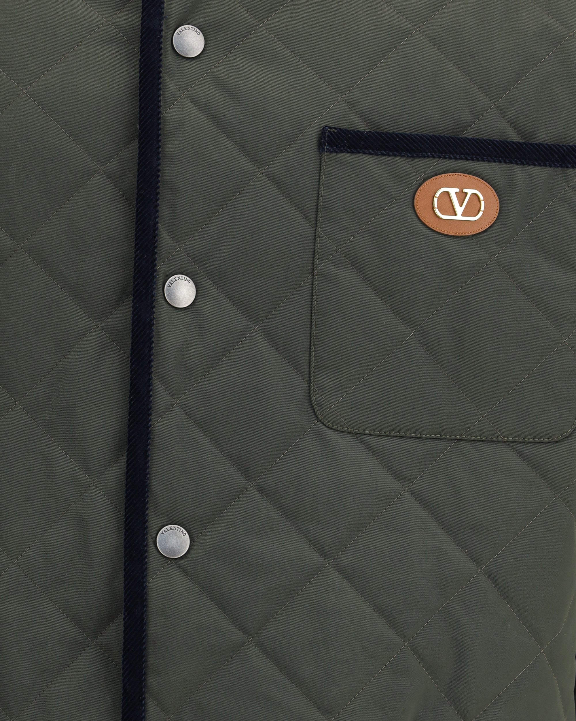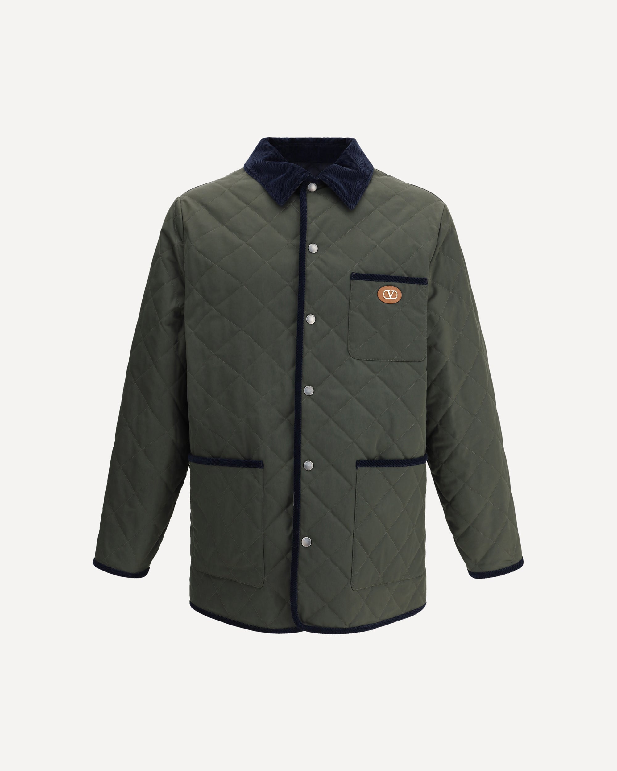 Valentino's logo quilted Jacket combines functionality and style in a refined silhouette. Lined and lightly padded, it is enhanced by an appliquéd VLogo patch on the chest pocket, left side worn. The velvet collar and trim add a touch of textural elegance, while the three front patch pockets complete the design with practicality and character.