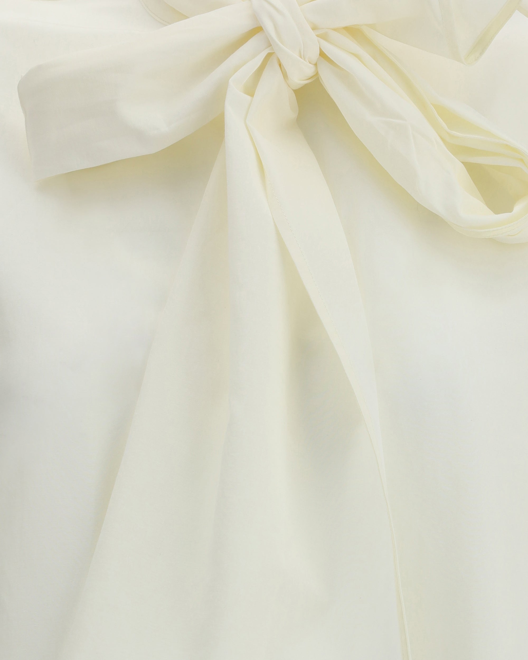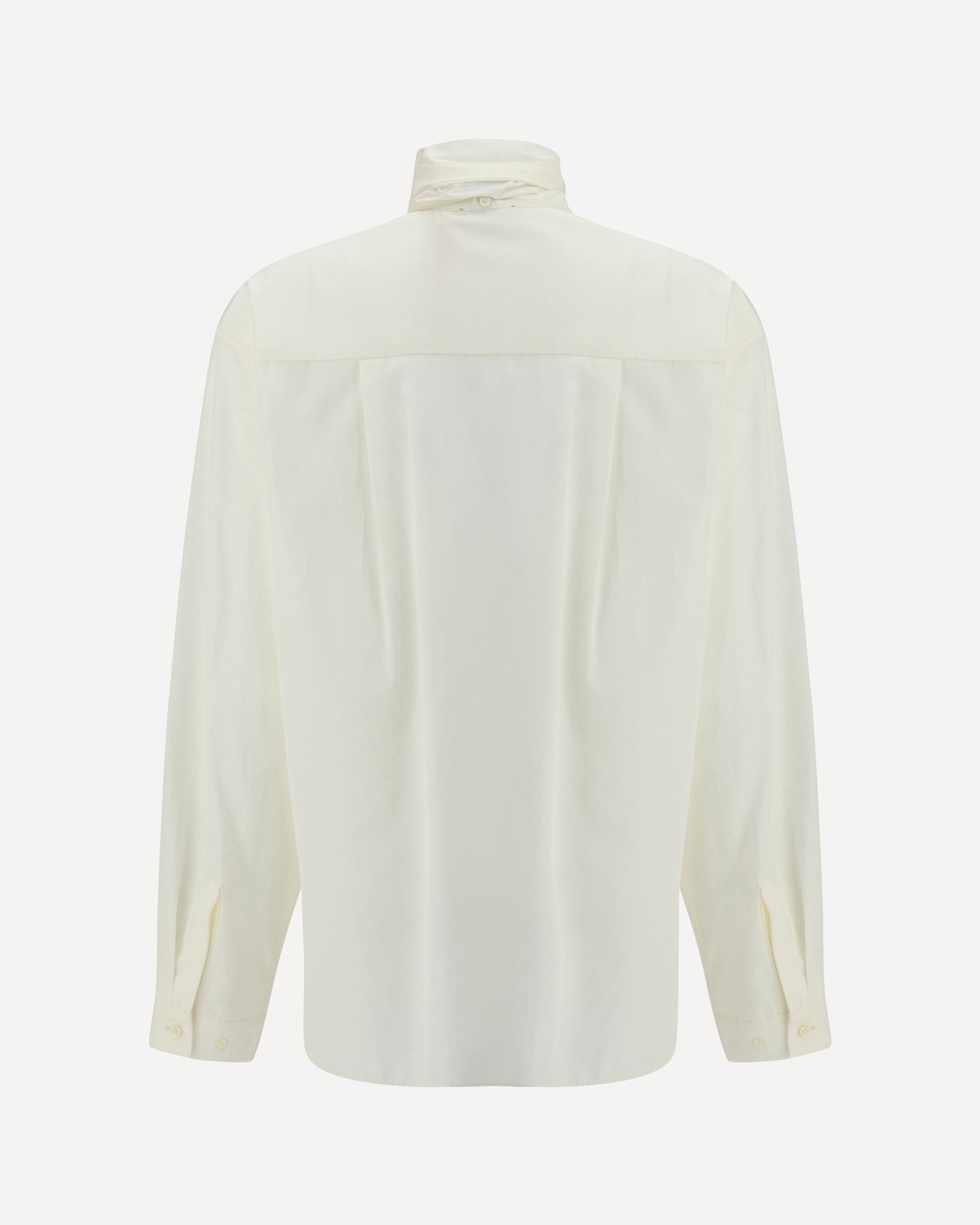 The Taffeta Shirt with removable bow by Forte Forte embodies light, versatile femininity through its generous volumes, designed to evoke an over-shirt styling. The keyhole neckline with button is enhanced by a tie detail, to be knotted for a playful and adjustable touch. The subtly lustrous fabric finish meets the asymmetric hem, conceived to be worn untucked, striking a balance between elegance and ease.