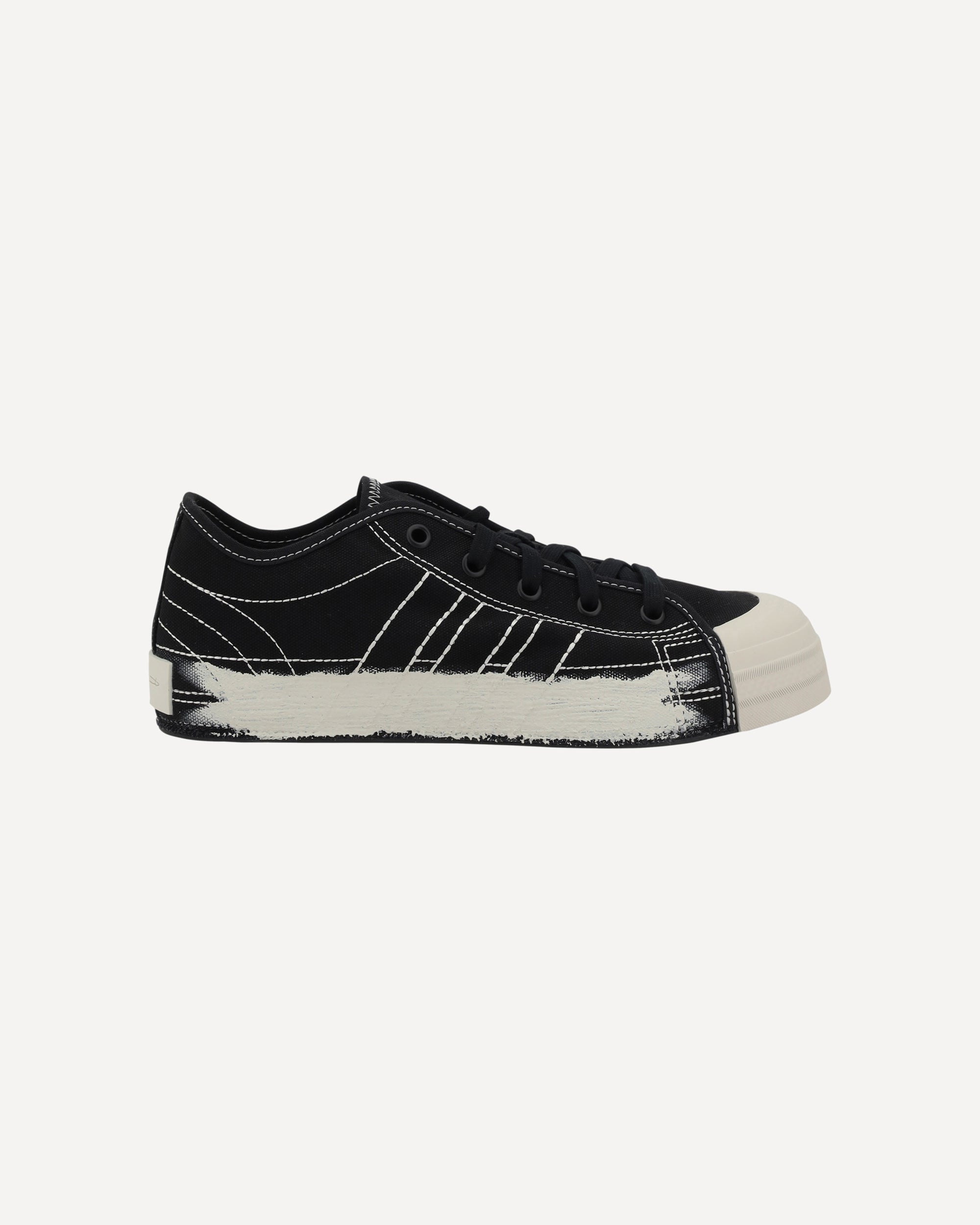 The Y-3 Canvas Sneakers feature a reinforced round toe for durability and comfort. The lace-up front closure allows for an adjustable fit, while the iconic slanted stripes on the side panels add a distinctive and sporty touch. The branded insole provides a quality detail, while the flat rubber sole ensures stability and comfort during use. A versatile model that combines modern design and functionality.