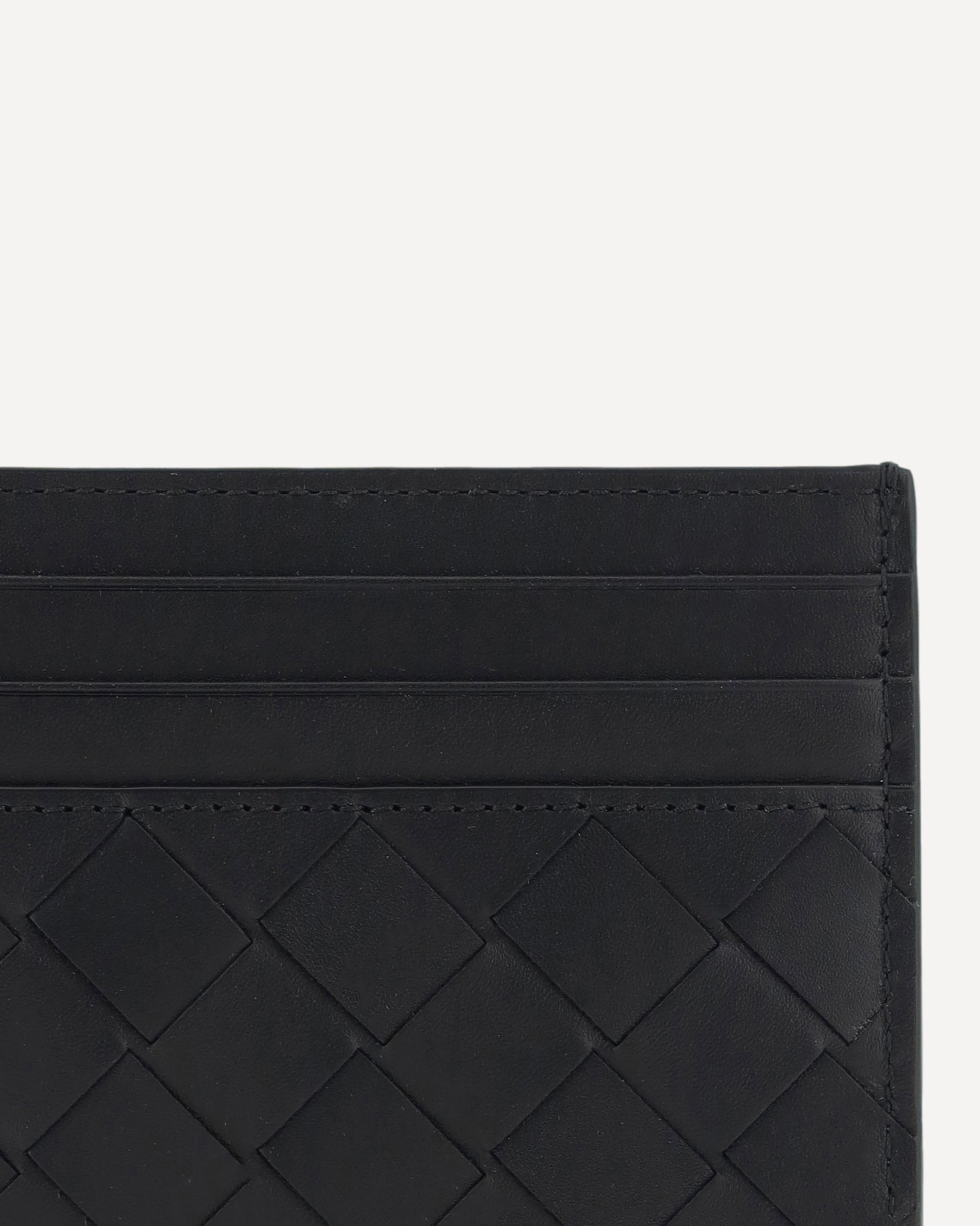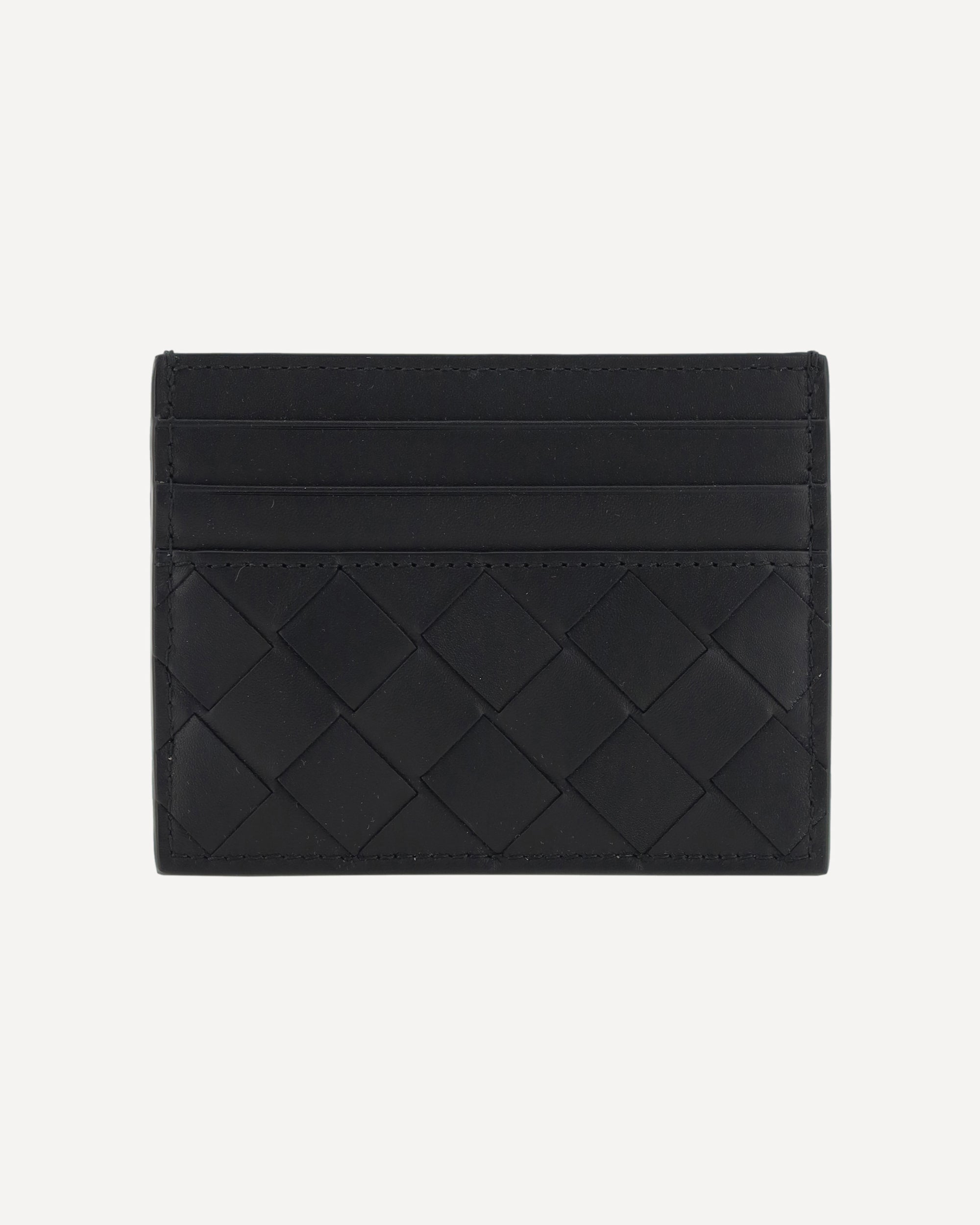 Bottega Veneta's leather Card Holder is a compact and refined accessory embellished with the iconic all-over woven pattern that recalls the brand's craftsmanship. Featuring card slots on the front and back, it offers functionality in an essential format. The front features the brand's monogram printed in contrast, a distinctive detail that completes the design with a recognizable touch.