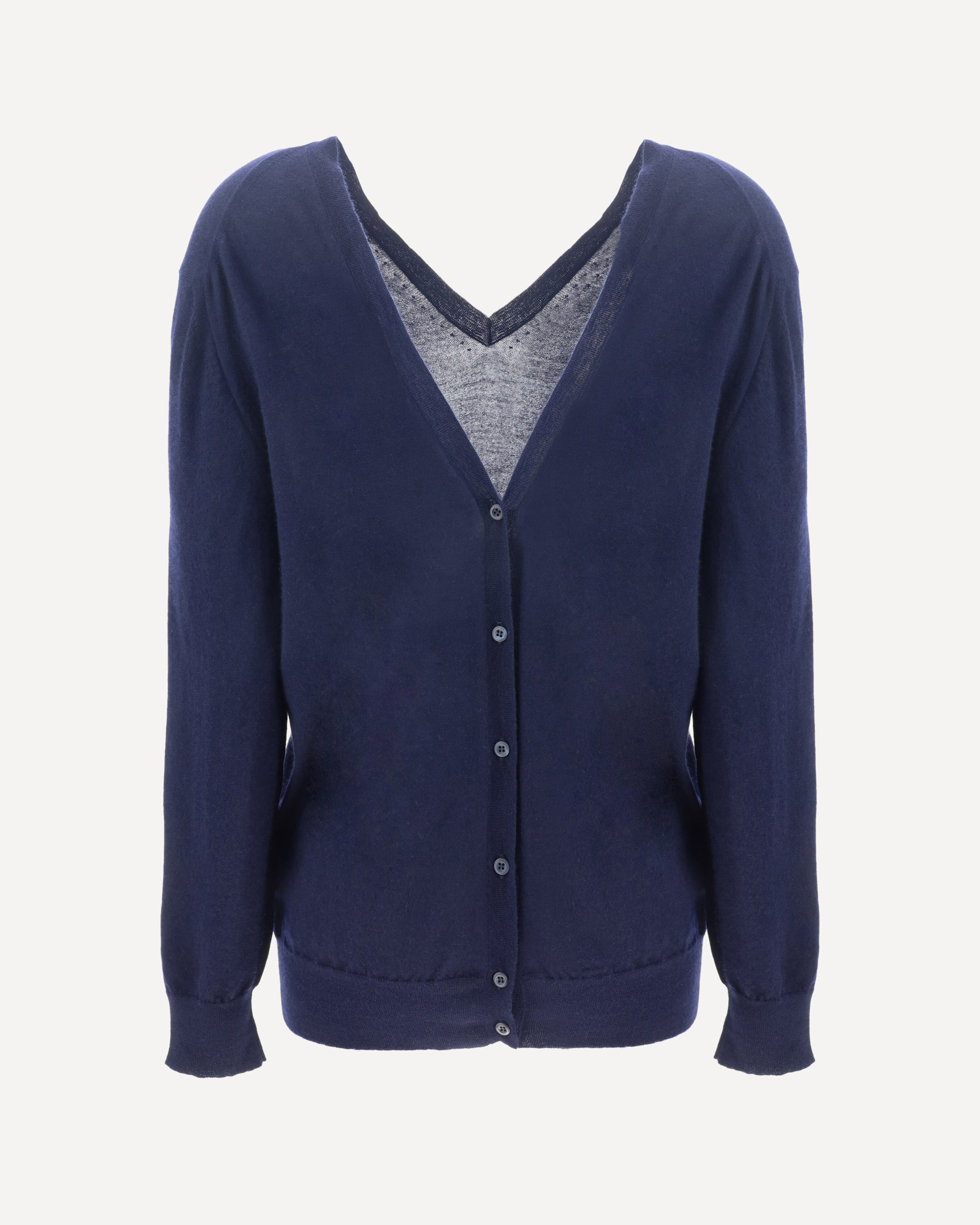 Cashmere Cardigan by Prada, featuring front button closure, ribbed cuffs, V-neck with ribbed trim on front and back, ribbed hem, monochrome pattern, regular fit.