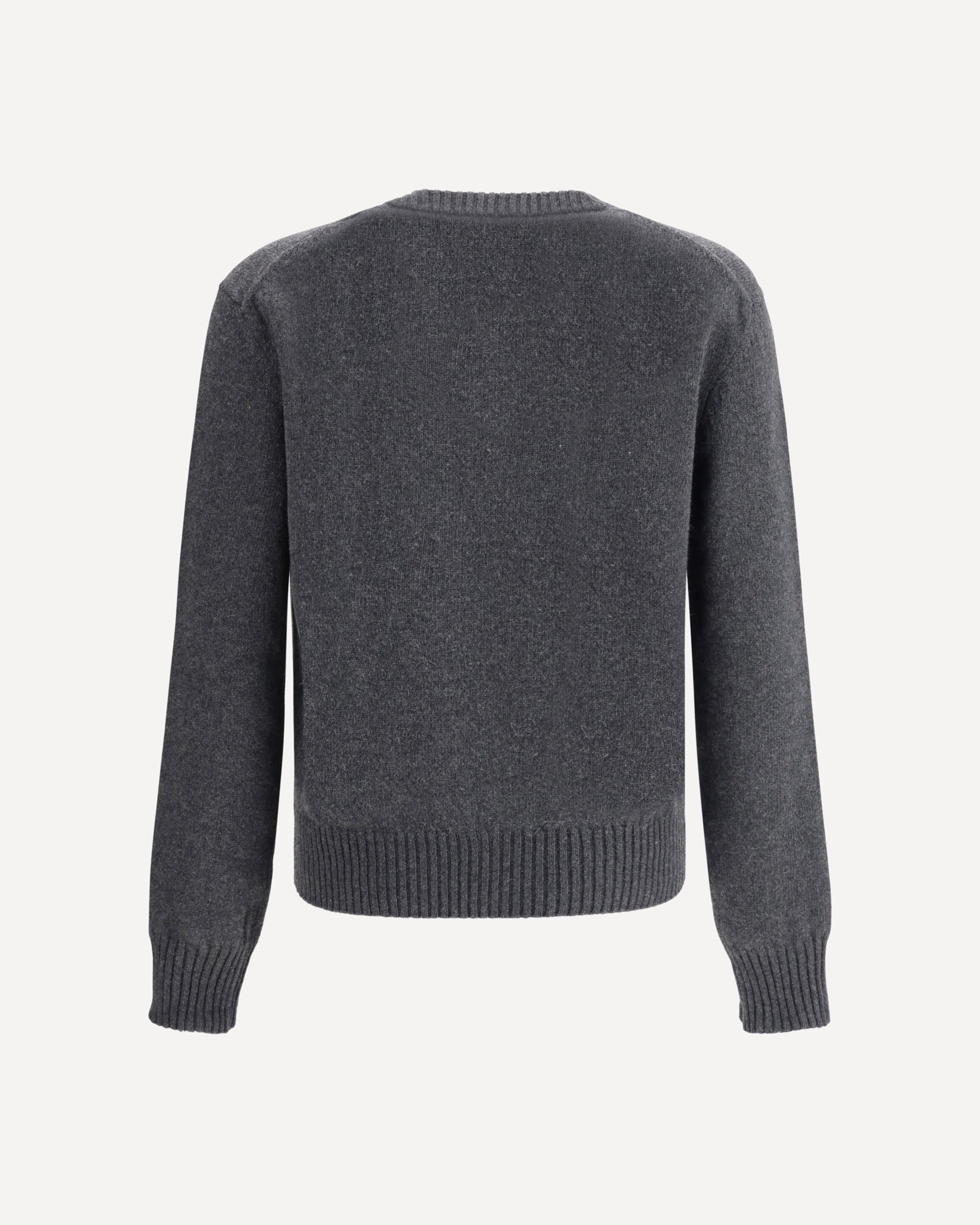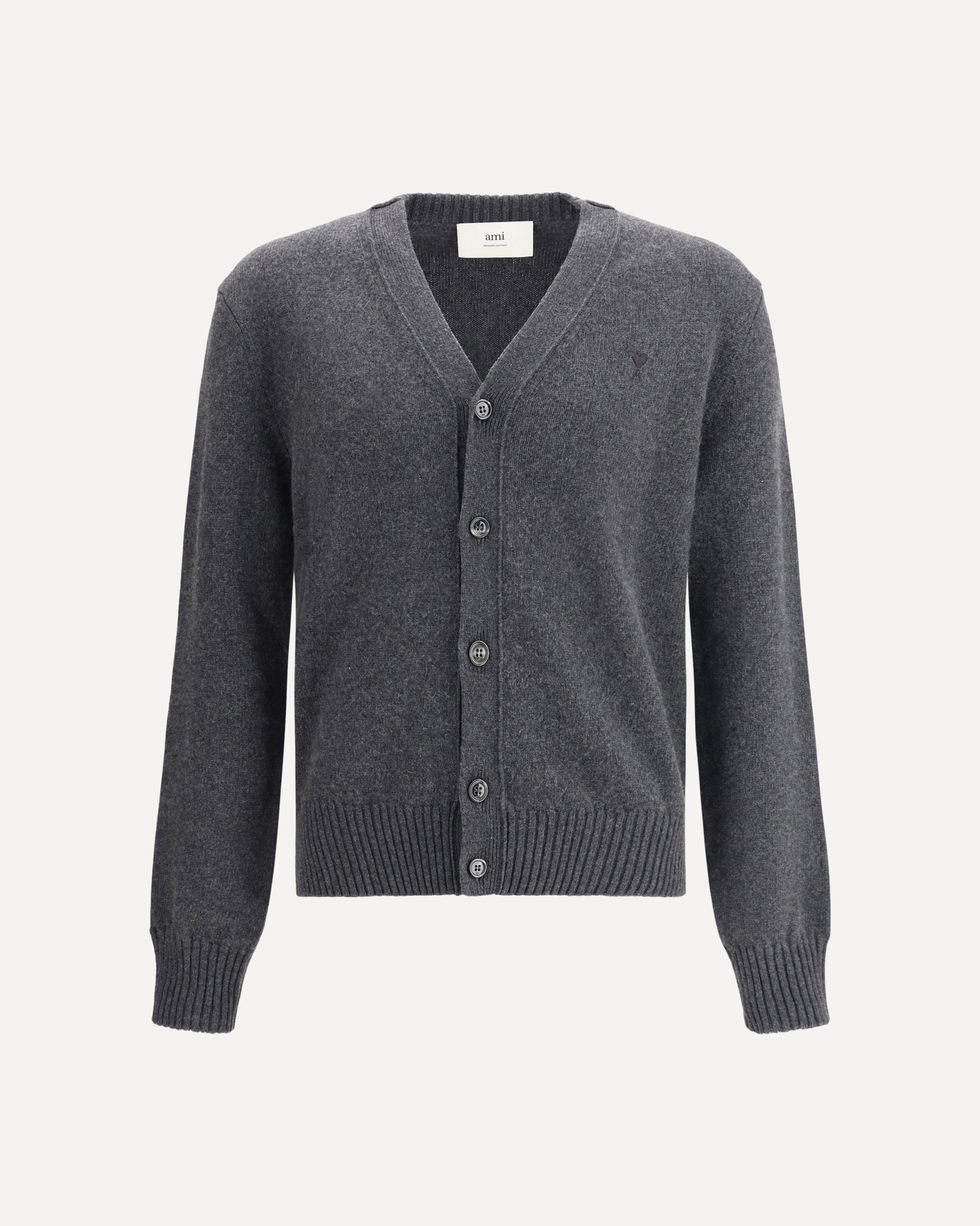 The Ami De Coeur Cardigan by Ami Paris is a garment with a simple and refined design. Featuring a front button closure, it has ribbed cuffs and hem that define its structure. The distinctive touch is the embroidered Ami De Coeur logo on the front, the brand's iconic signature.