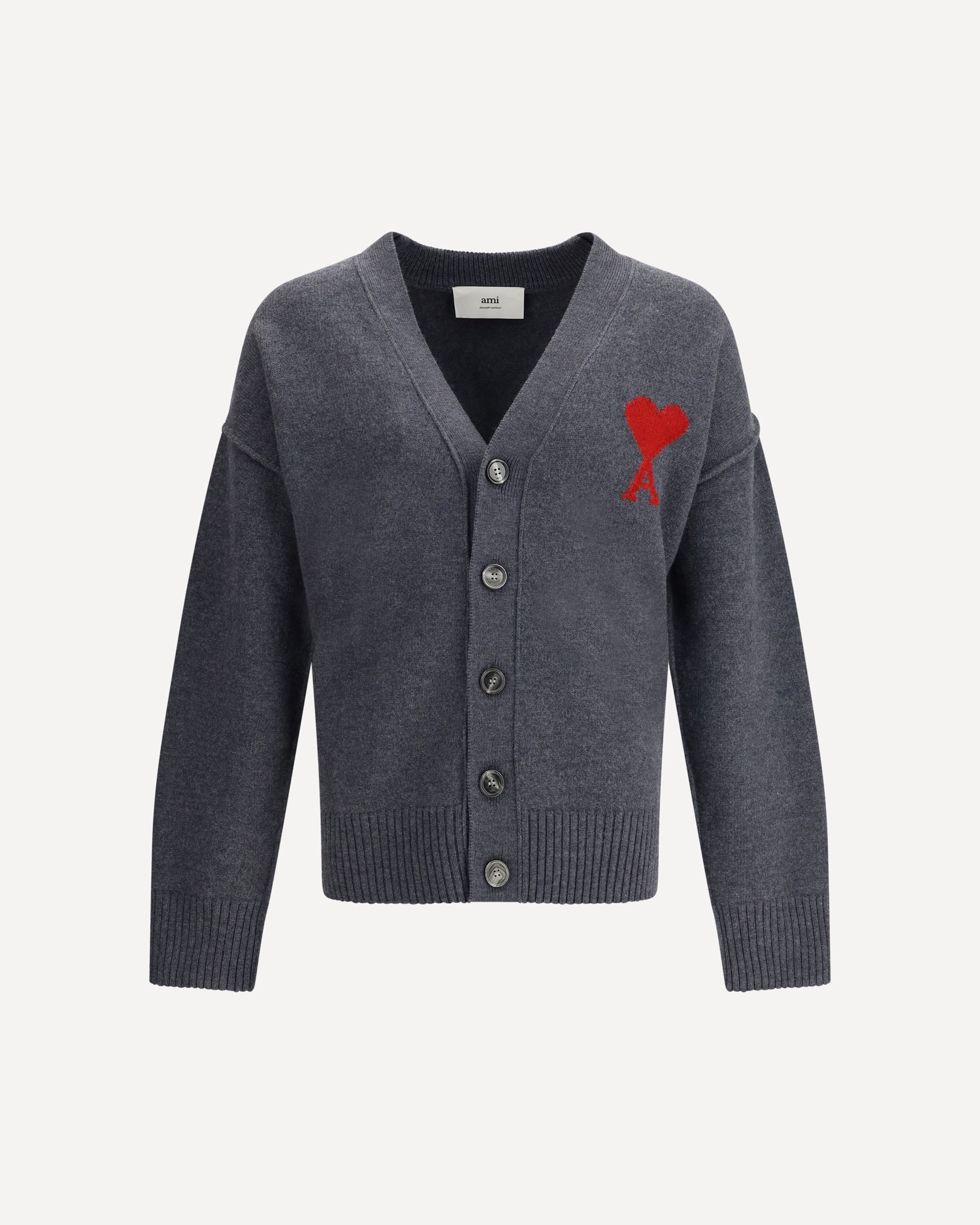 The Ami De Coeur Cardigan by Ami Paris combines comfort with a distinctive identity. It features a front button closure, ribbed hem and cuffs, and a jacquard logo on the front for an iconic and recognizable touch. A modern essential.