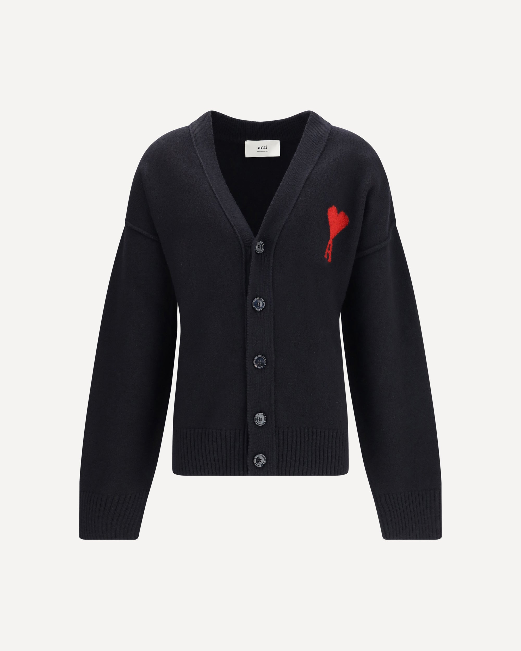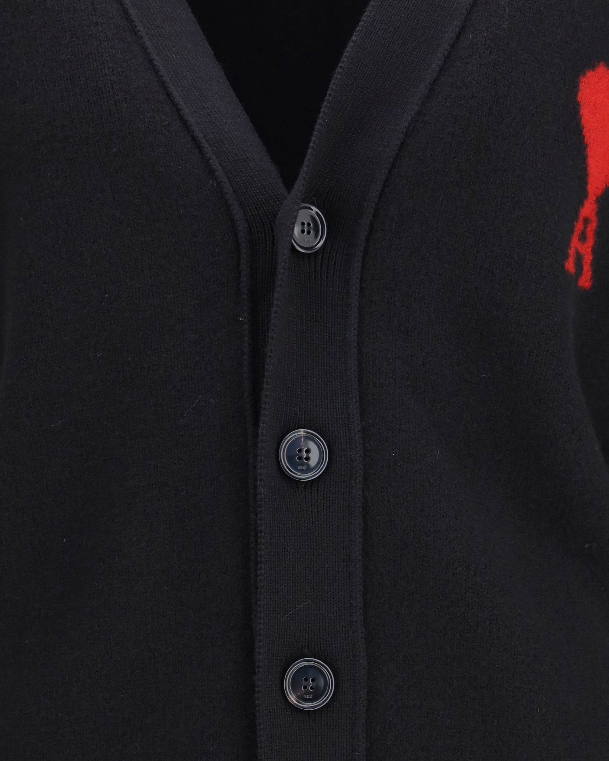 The Ami De Coeur Cardigan by Ami Paris combines comfort with a distinctive identity. It features a front button closure, ribbed hem and cuffs, and a jacquard logo on the front for an iconic and recognizable touch. A modern essential.