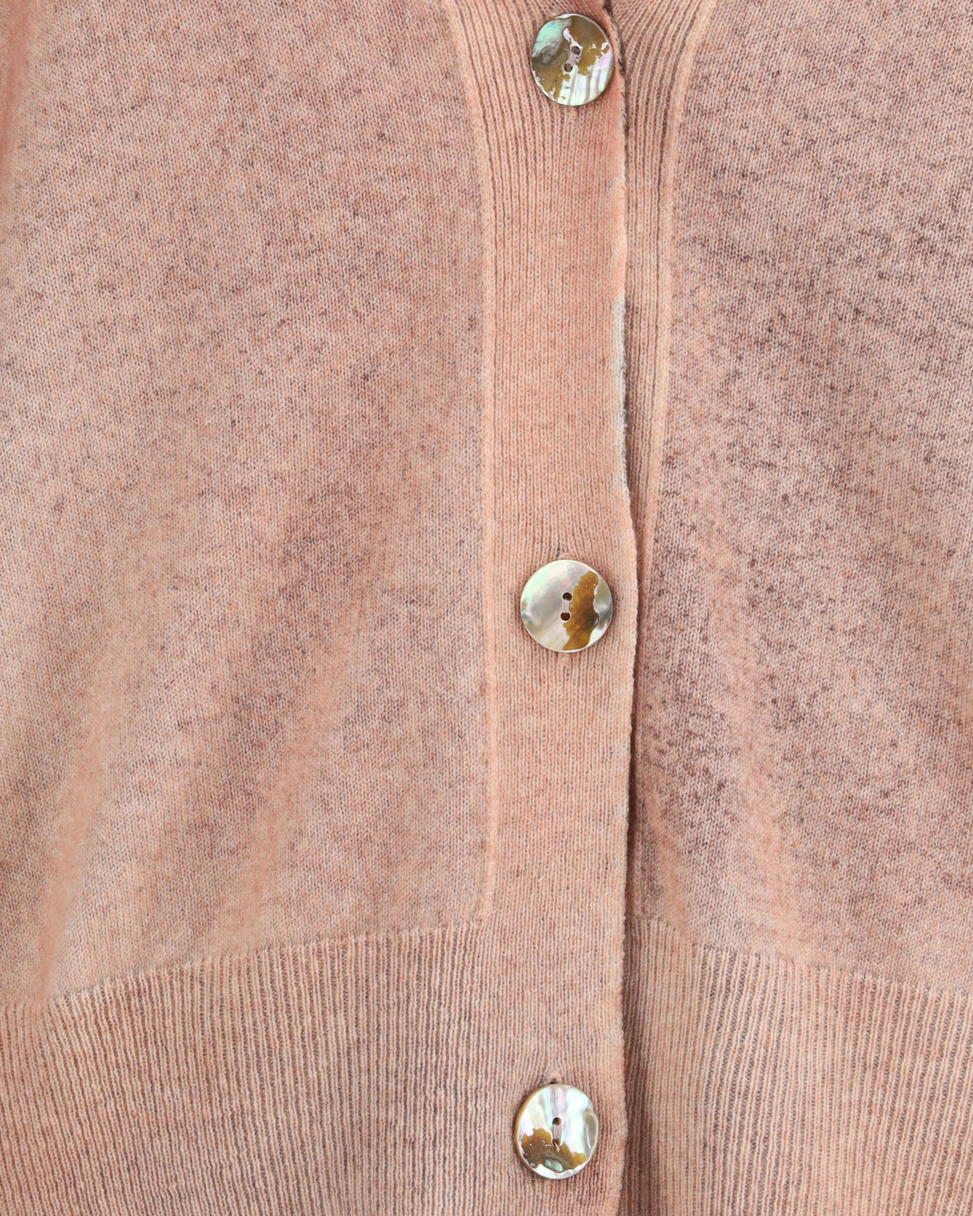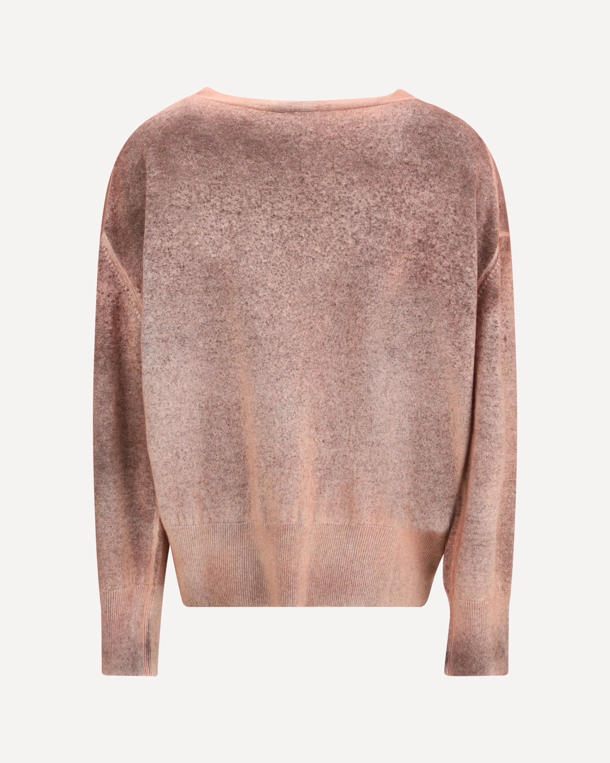 The Cardigan with a button closure with long sleeves by verybusy features a refined gradient effect that fades smoothly from deeper tones at the top to lighter hues toward the bottom. Finished with ribbed hem and cuffs, it offers a comfortable fit and a modern touch, with the color transition adding depth and character to the piece.