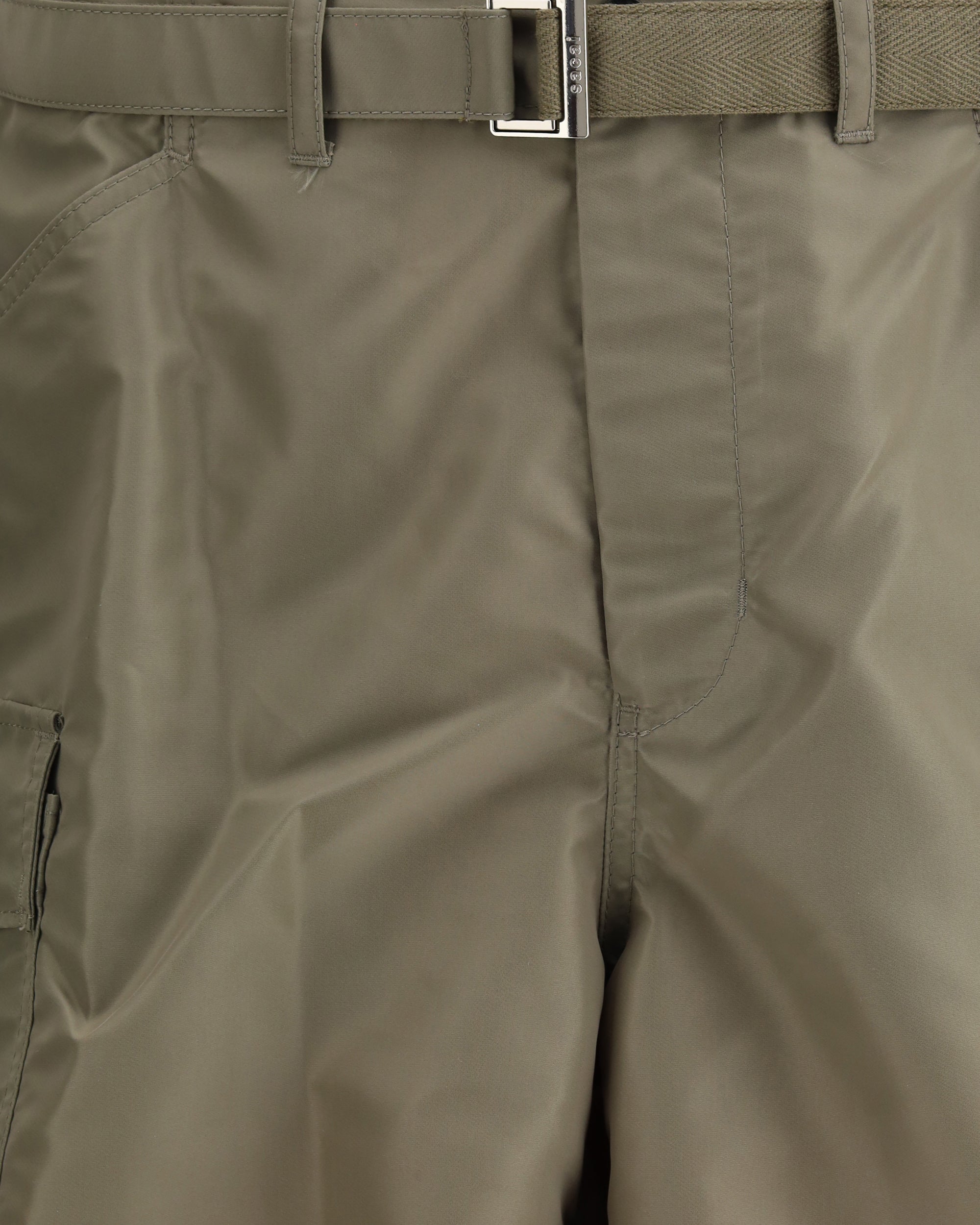 The Sacai Shorts are a versatile and practical piece, featuring a functional design. They have two side welt pockets and two welt pockets with flaps on the back panel, adding a touch of style and utility. The cargo pockets on the side panels provide extra space, while the belt loops and the adjustable, removable matching belt allow for a customizable fit. The front closure is equipped with a button and zipper for added convenience. A blend of comfort and functionality with a modern, urban look.