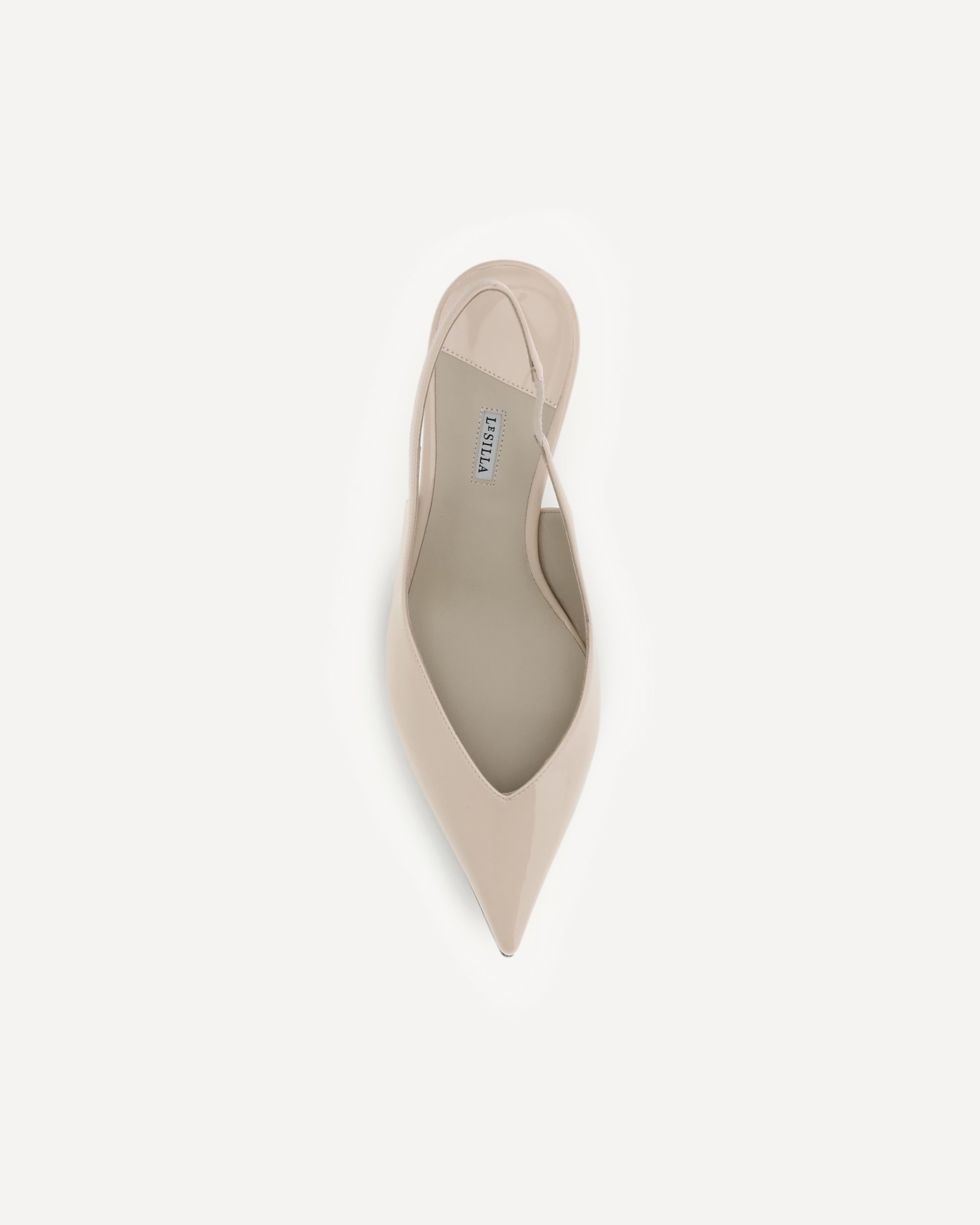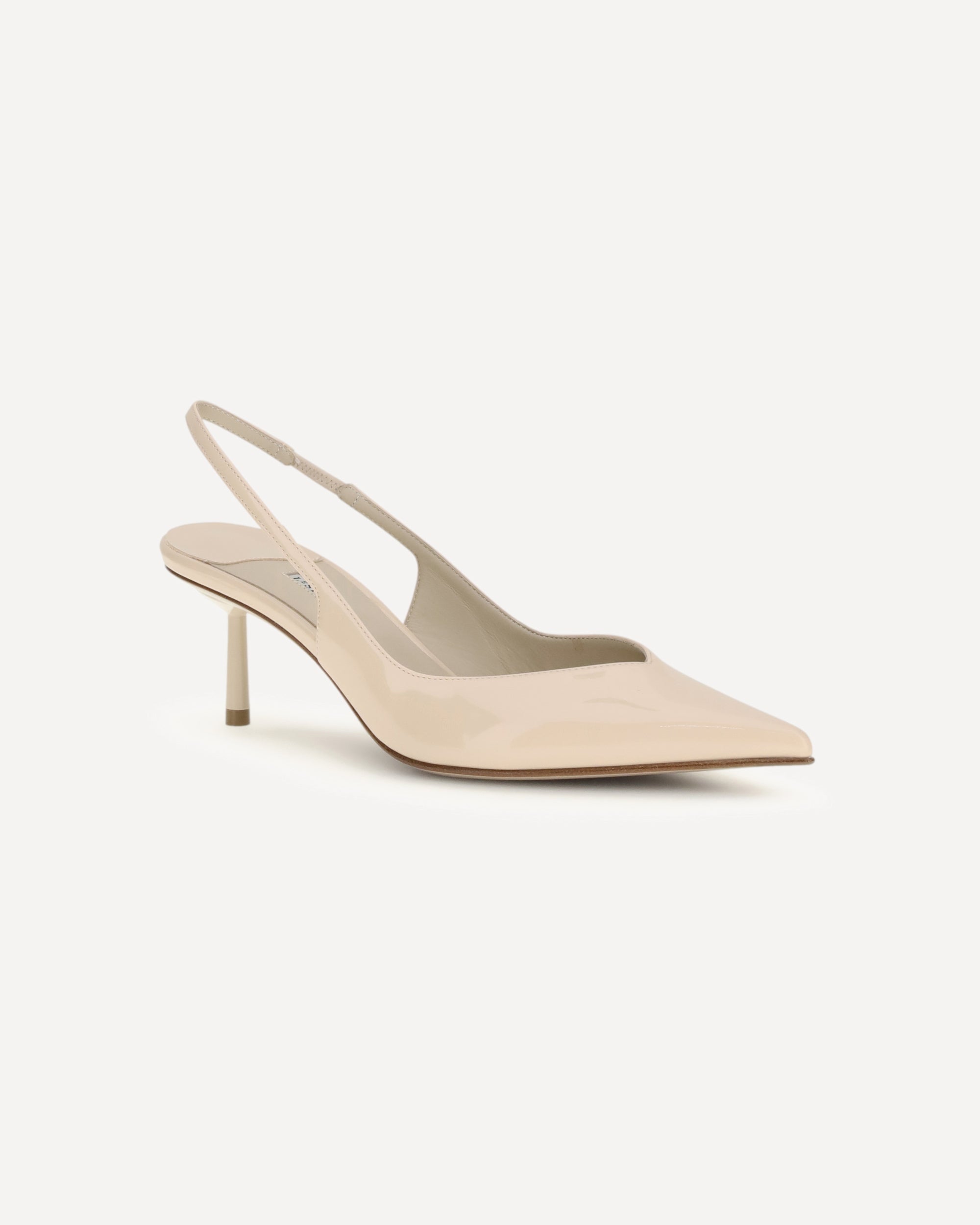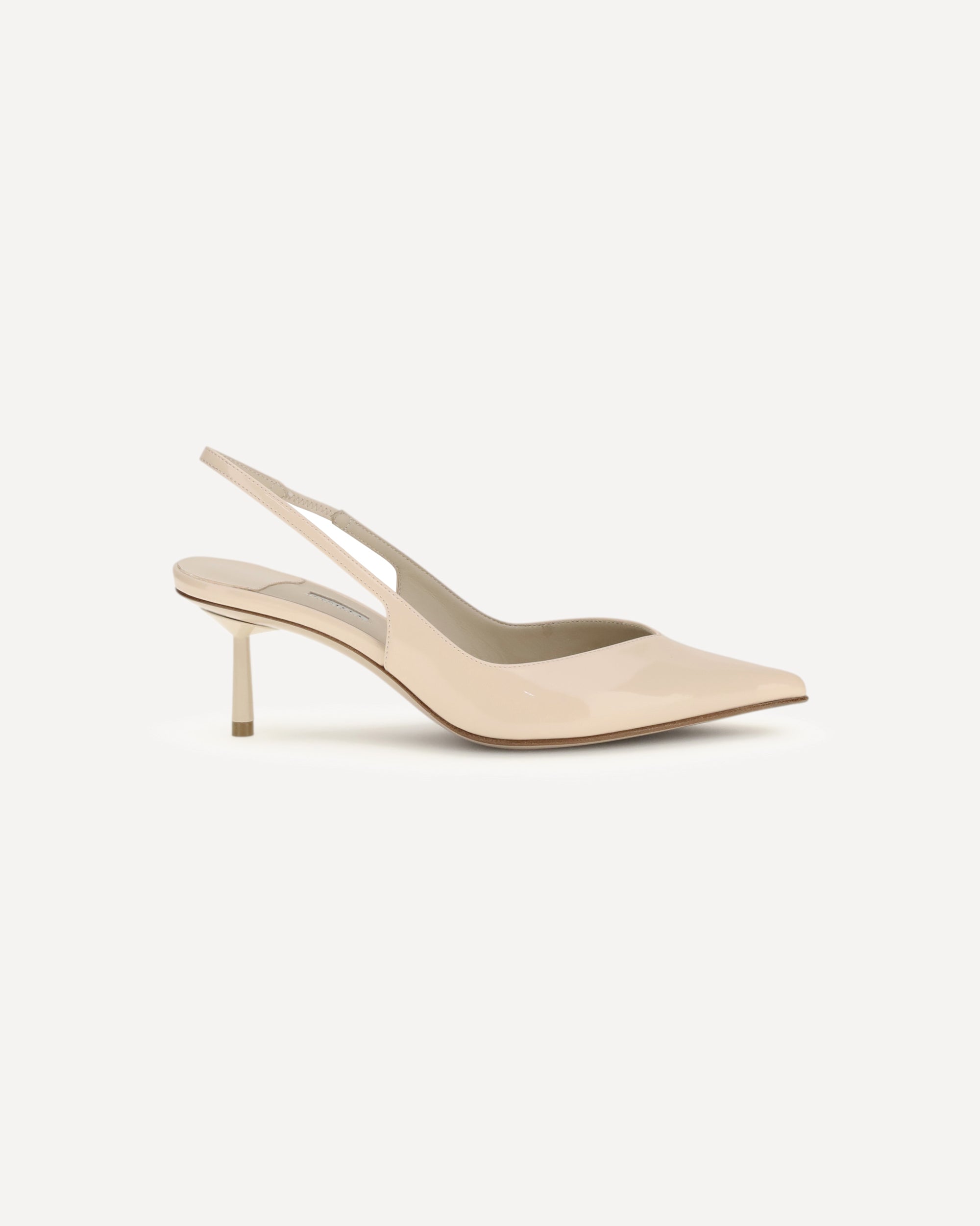 The Vivienne Pumps by le Silla reinterpret elegance with a refined slingback model in glossy, sophisticated patent leather. The almond toe gives balance to the silhouette, while the kitten heel ensures comfort without sacrificing style. An essential and feminine design, perfect for refined and timeless looks.