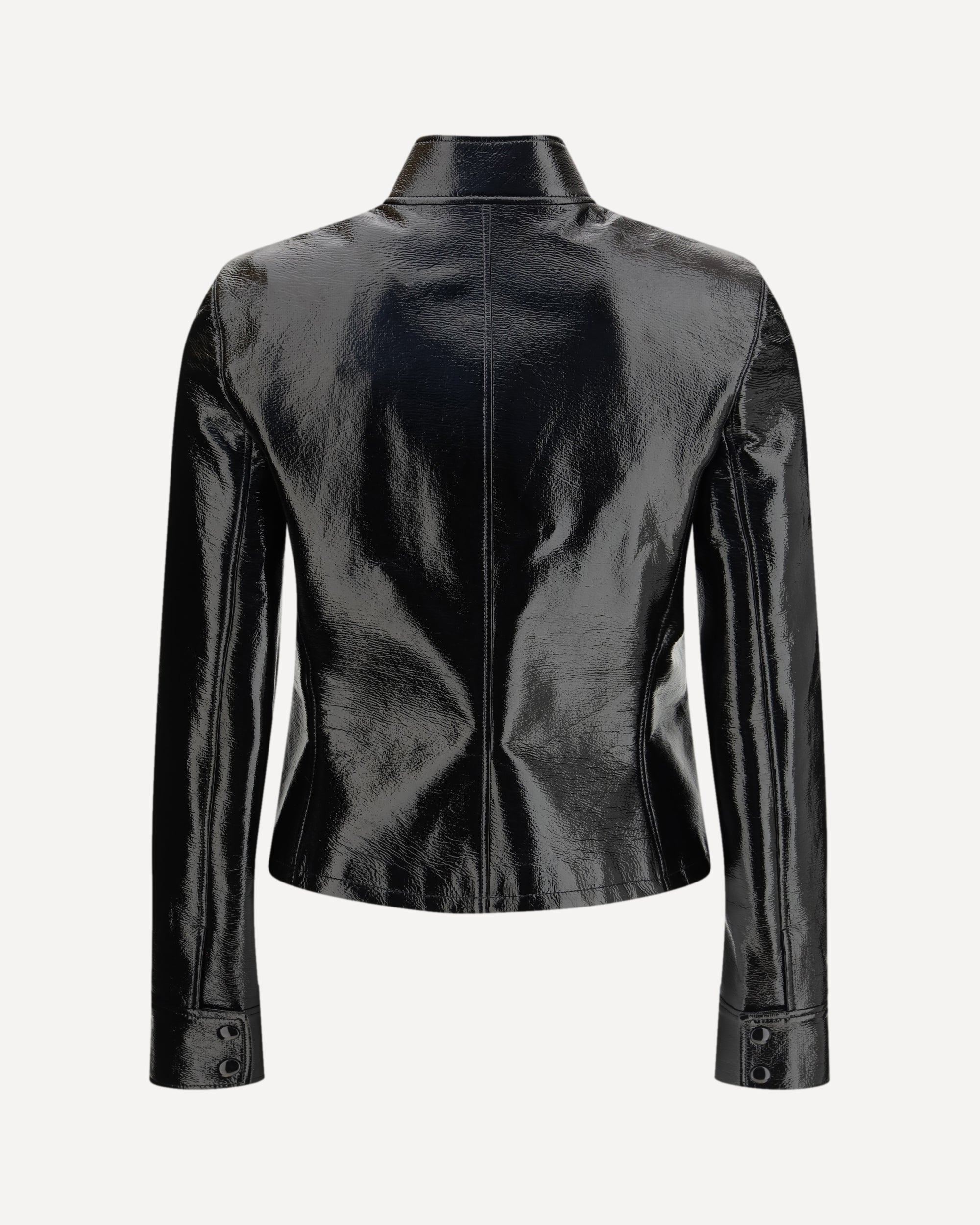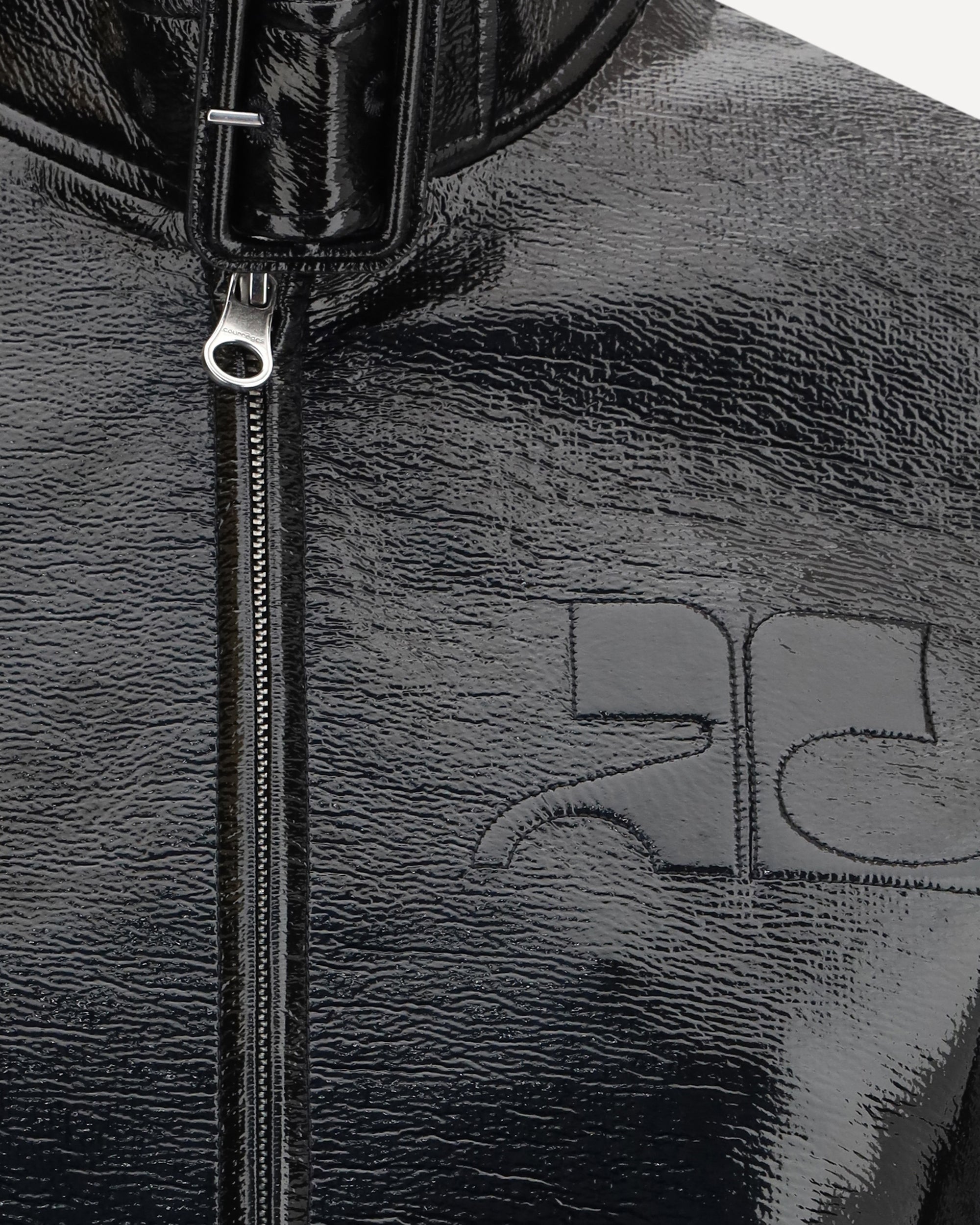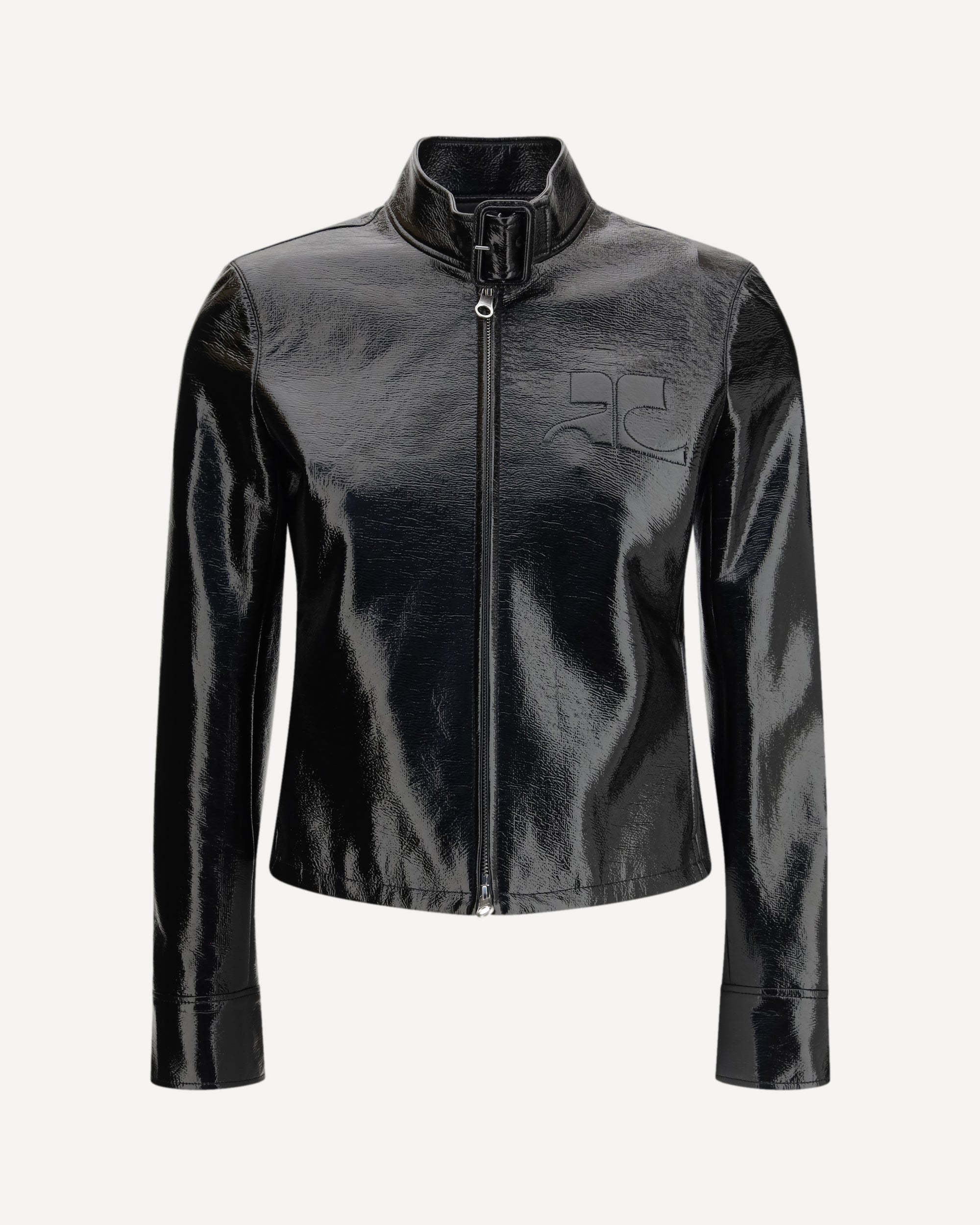The City vinyl Jacket by Courrèges is an urban, contemporary vinyl jacket distinguished by its sleek, glossy finish. It features the signature AC shadow logo on the chest and an adjustable buckle at the collar for a functional, modern touch. An iconic piece that captures the brand’s avant-garde aesthetic.