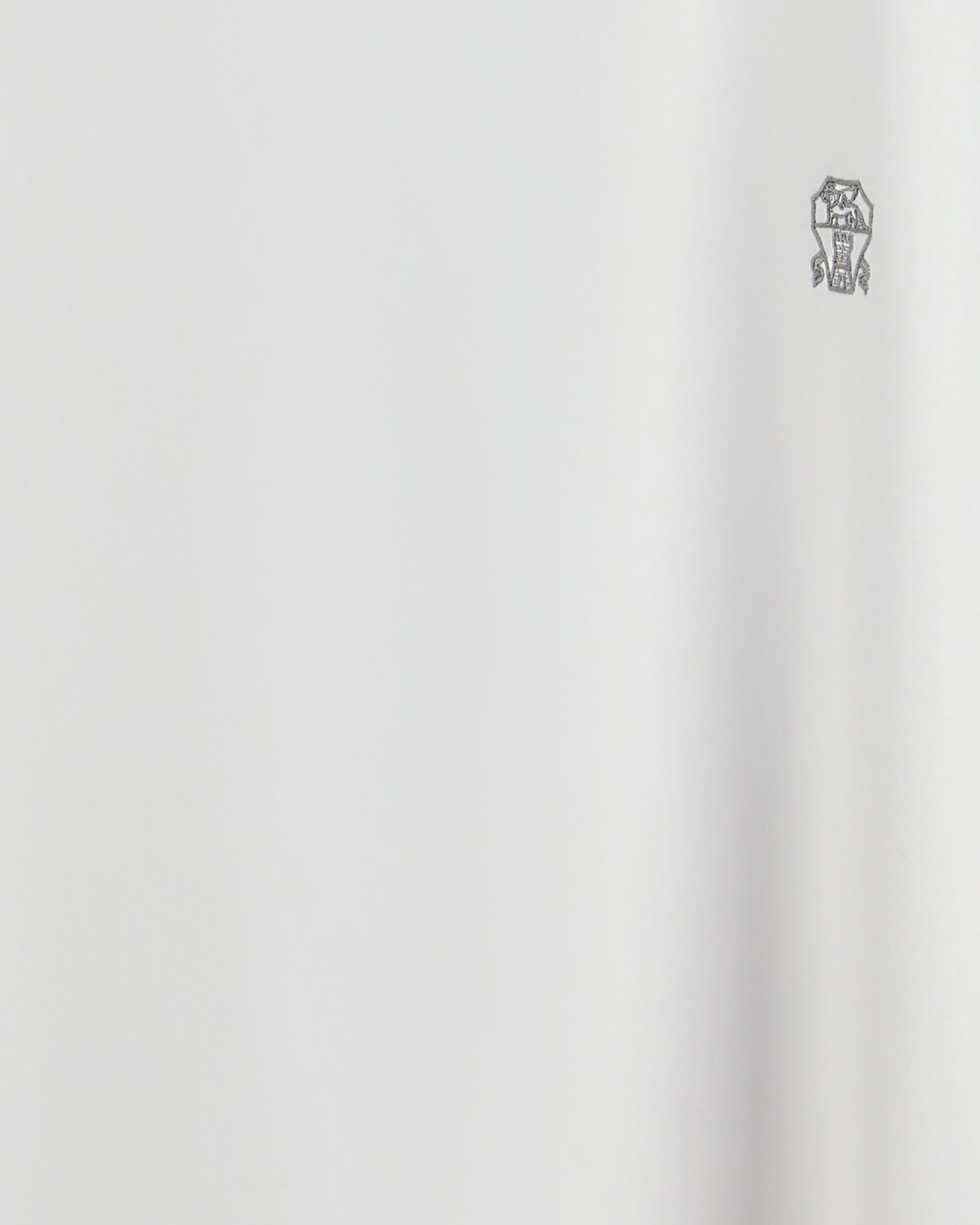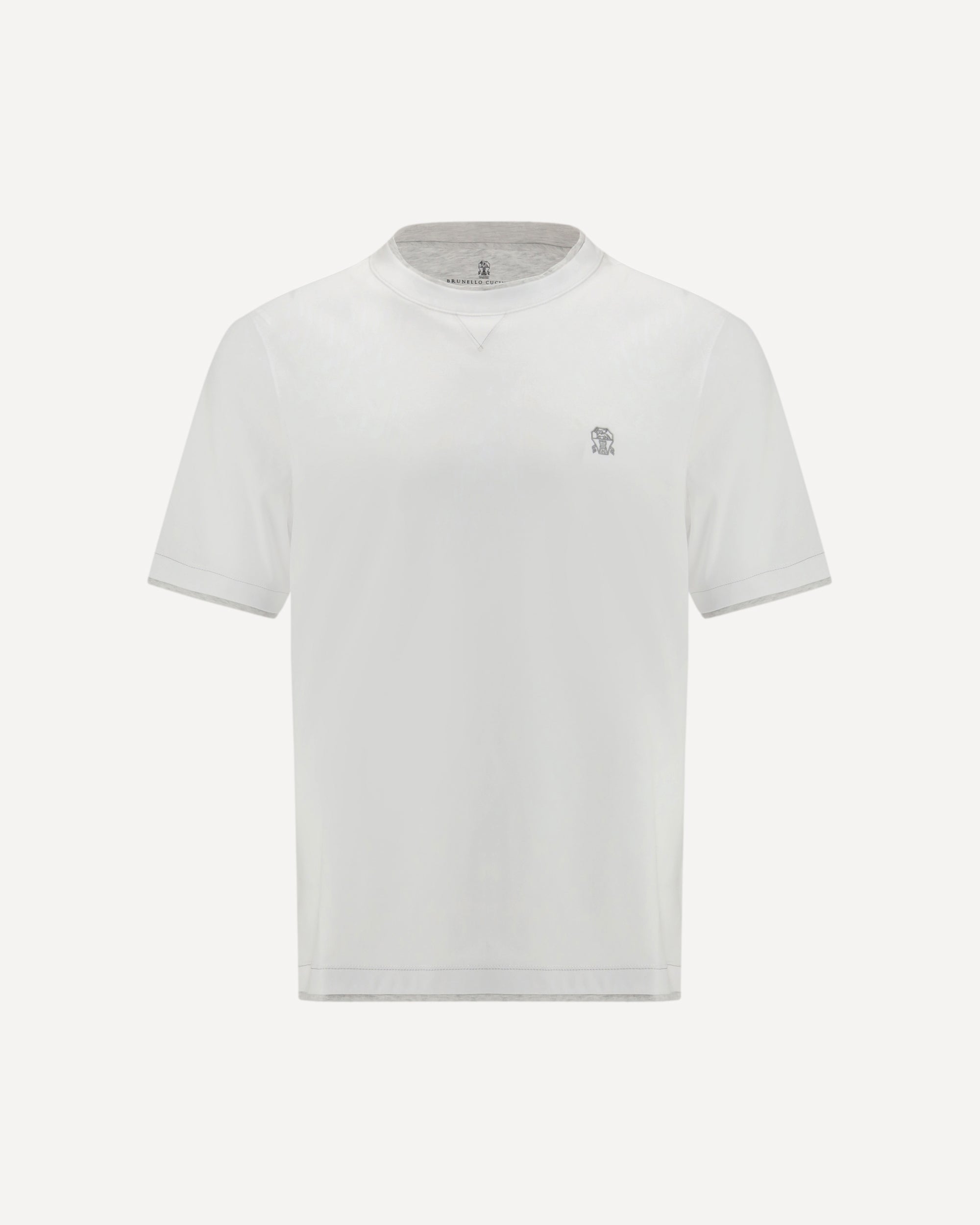 The T-shirt in cotton with a logo by Brunello Cucinelli embraces refined simplicity through a clean and carefully crafted construction, highlighted by a ribbed round neck that adds balance to the silhouette. The iconic embroidered logo on the front offers a distinctive detail that enriches the monochrome surface with subtle sophistication. The regular fit shapes a natural and harmonious outline, reflecting the understated and curated style typical of Brunello Cucinelli. The T-shirt becomes an everyday piece of elegant simplicity, combining comfort, quality and identity.