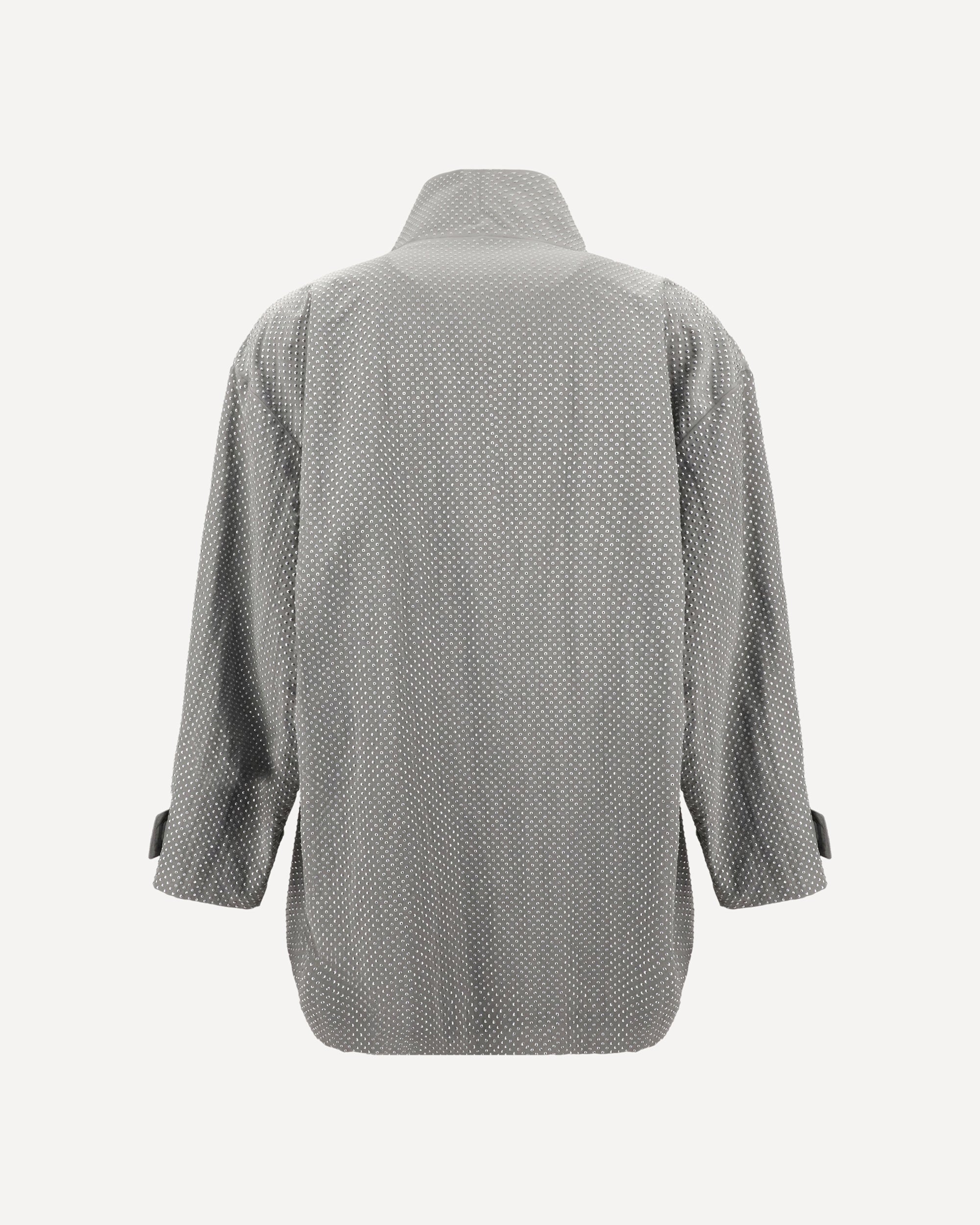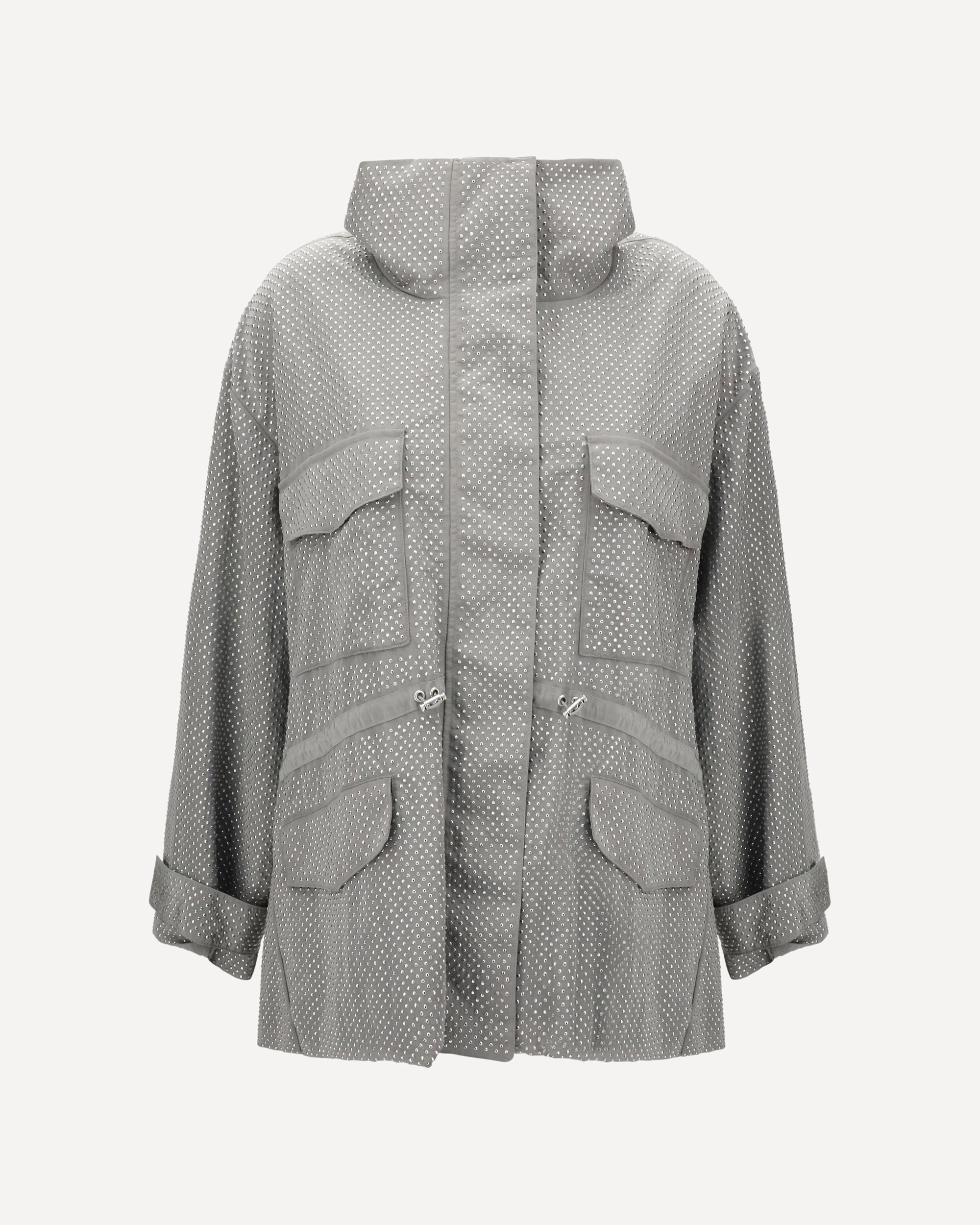 Pinko's Fisherman parka Jacket is an outerwear that combines functionality and style with a bold twist. Featuring a double-slider front zipper closure and high collar, it has an adjustable drawstring waist that flatters the figure. The four front patch pockets add practicality to the design, while the all-over mirrored rhinestone-studded surface lends light and personality to the garment. A jacket that does not go unnoticed, perfect for those who like to stand out even in outdoor looks.