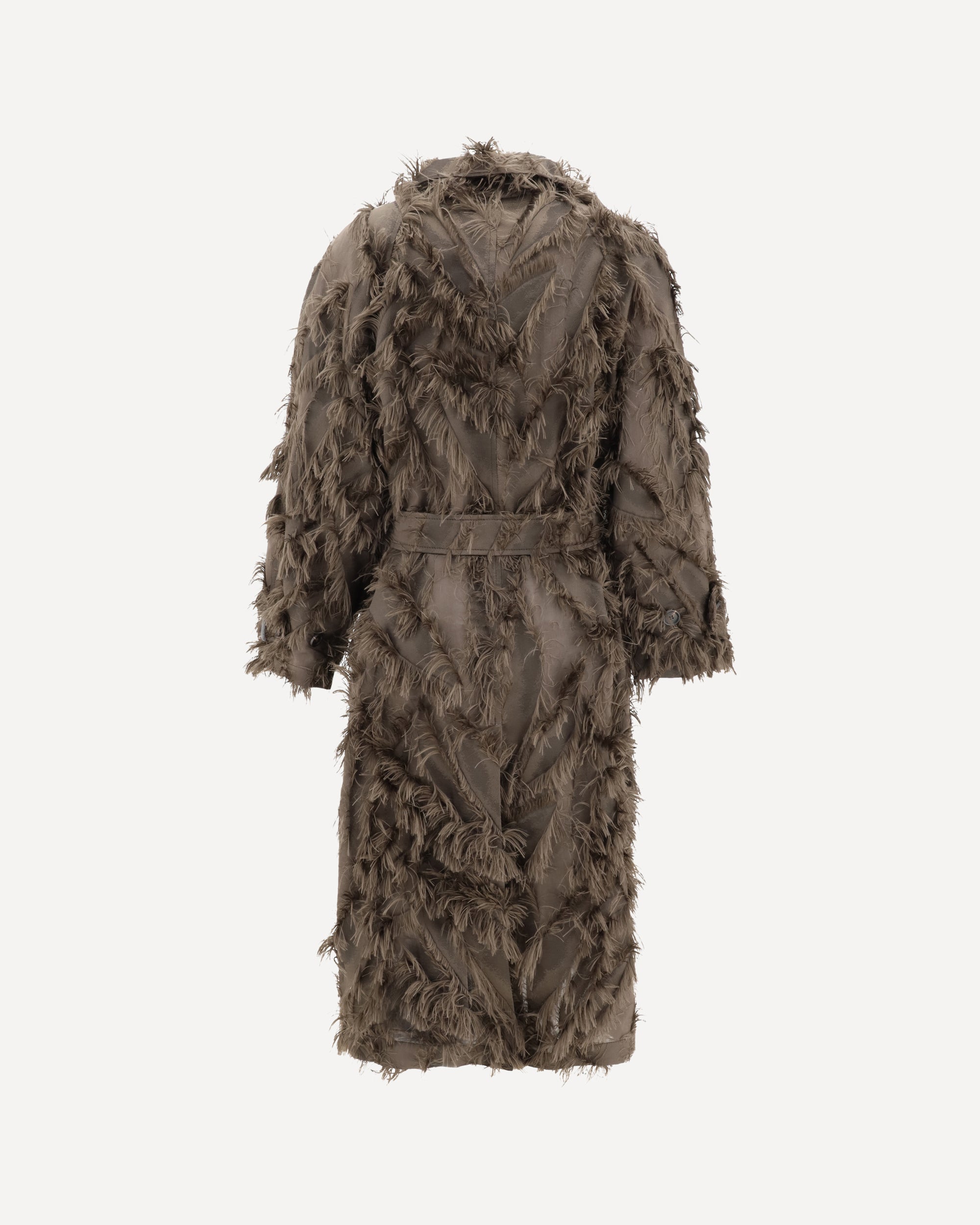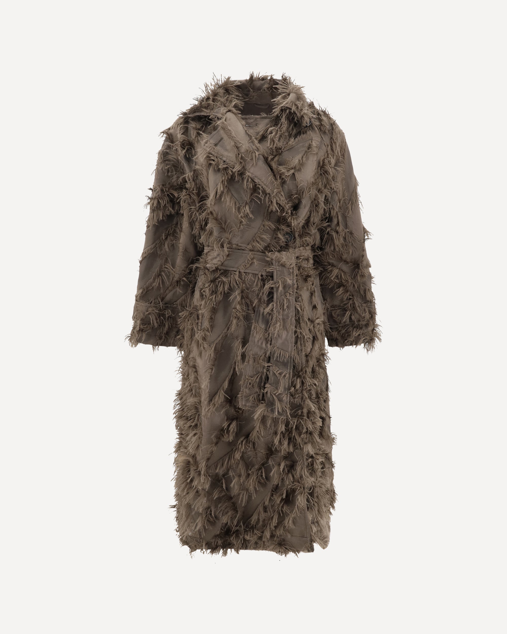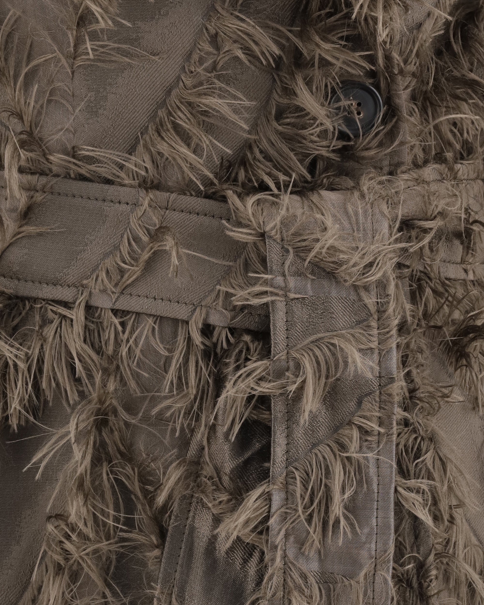 Brunello Cucinelli's coat is an elegant and refined piece, featuring a classic collar that adds a sophisticated touch. The front button closure ensures a secure fit, while the two welt pockets on the front offer functionality and a clean design. The back slit allows more freedom of movement and a dynamic look. Applied synthetic fur details give a luxurious accent while maintaining a sleek, contemporary style at all times.