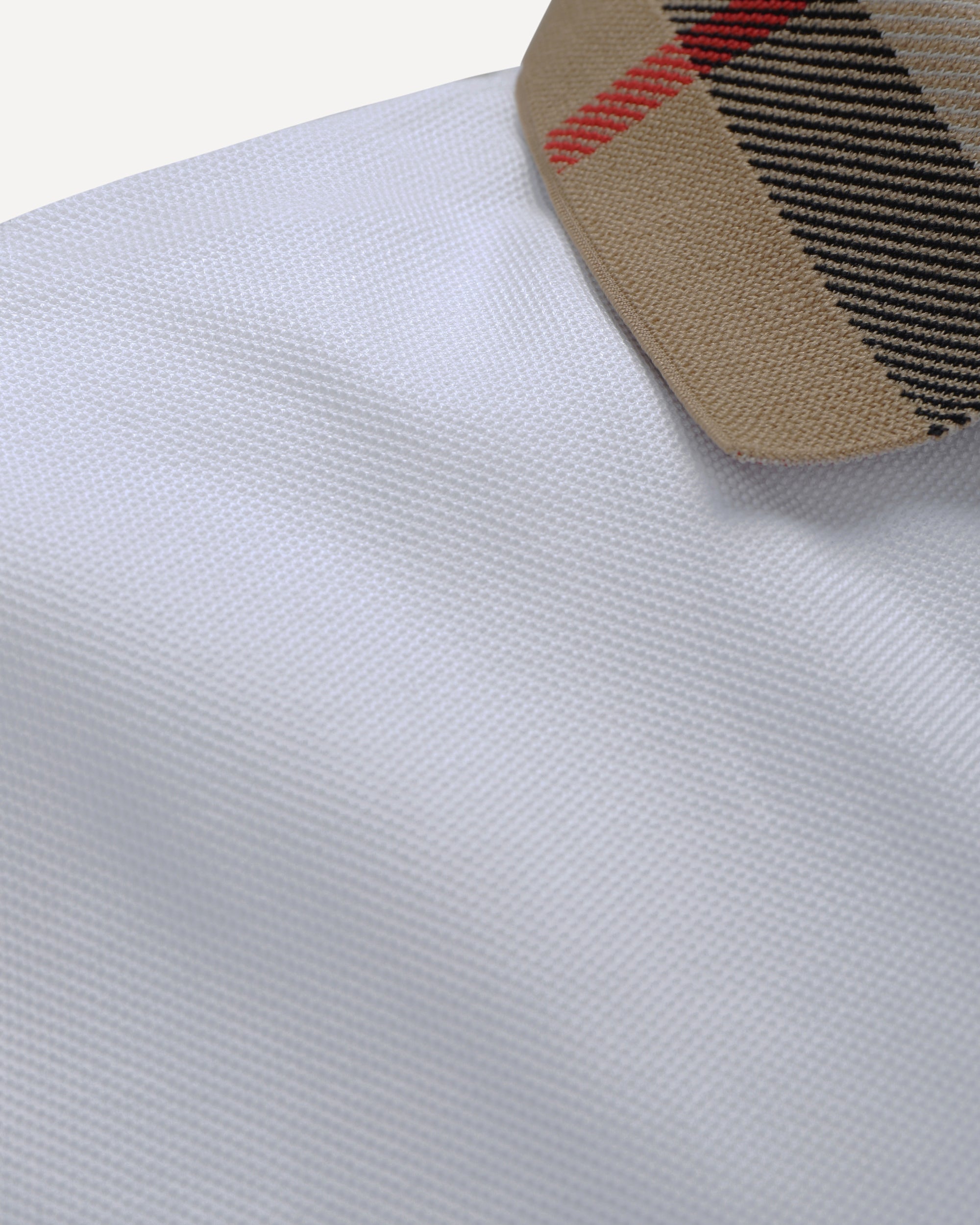 The Cody cotton Polo Shirt by Burberry reinterprets a wardrobe classic with the brand’s signature elegance. The ribbed classic collar is enhanced by the iconic Archive Check pattern, while the tonal front buttons preserve a clean and refined aesthetic. The monochrome design and regular fit make this piece versatile, ideal for both polished casual looks and more refined combinations.
